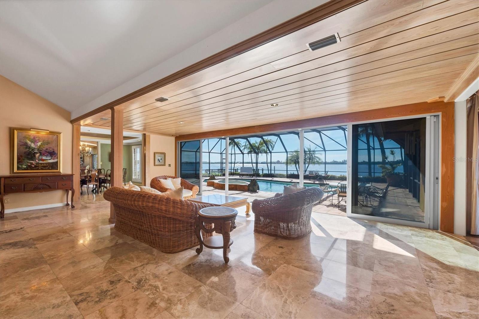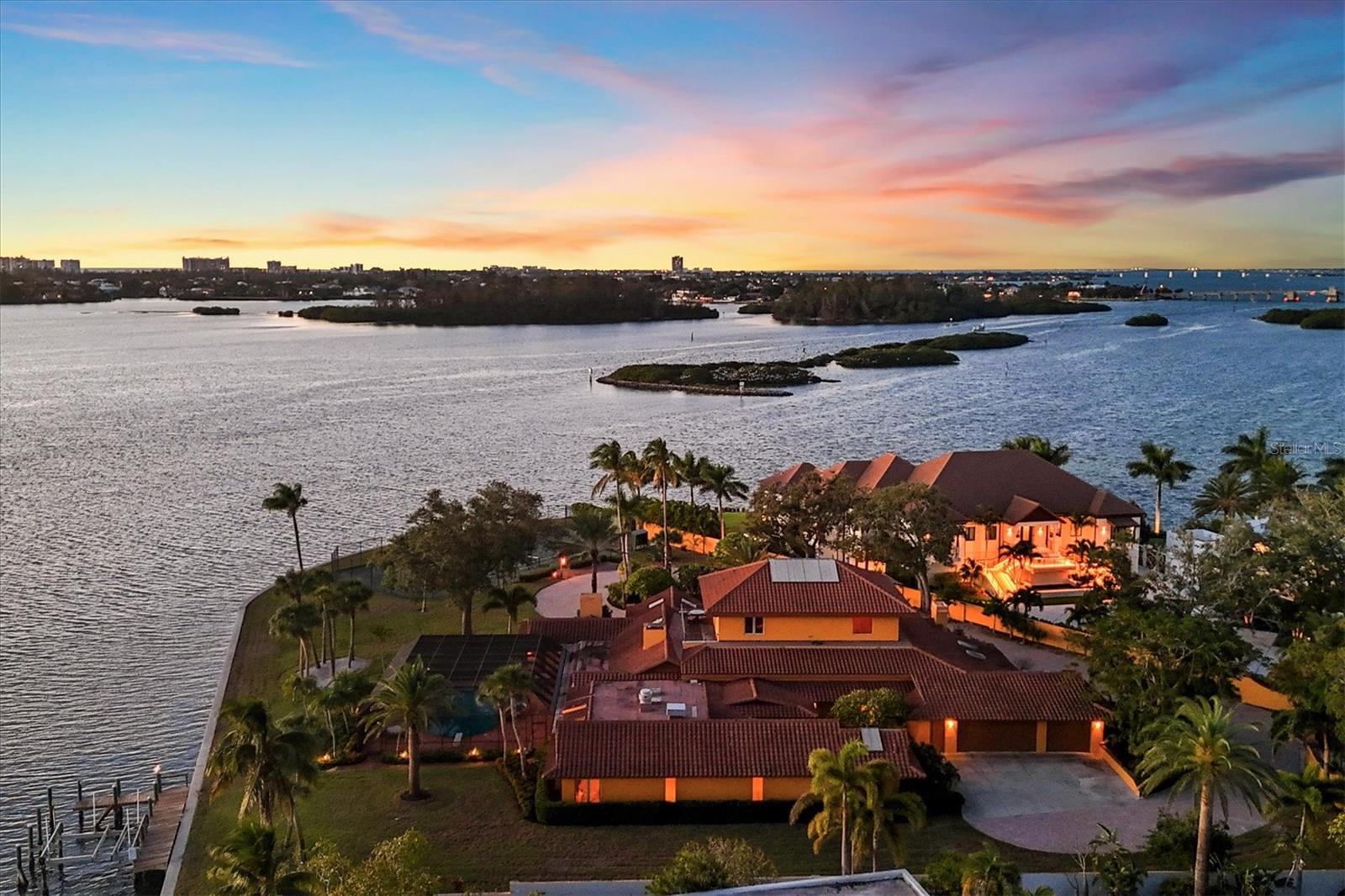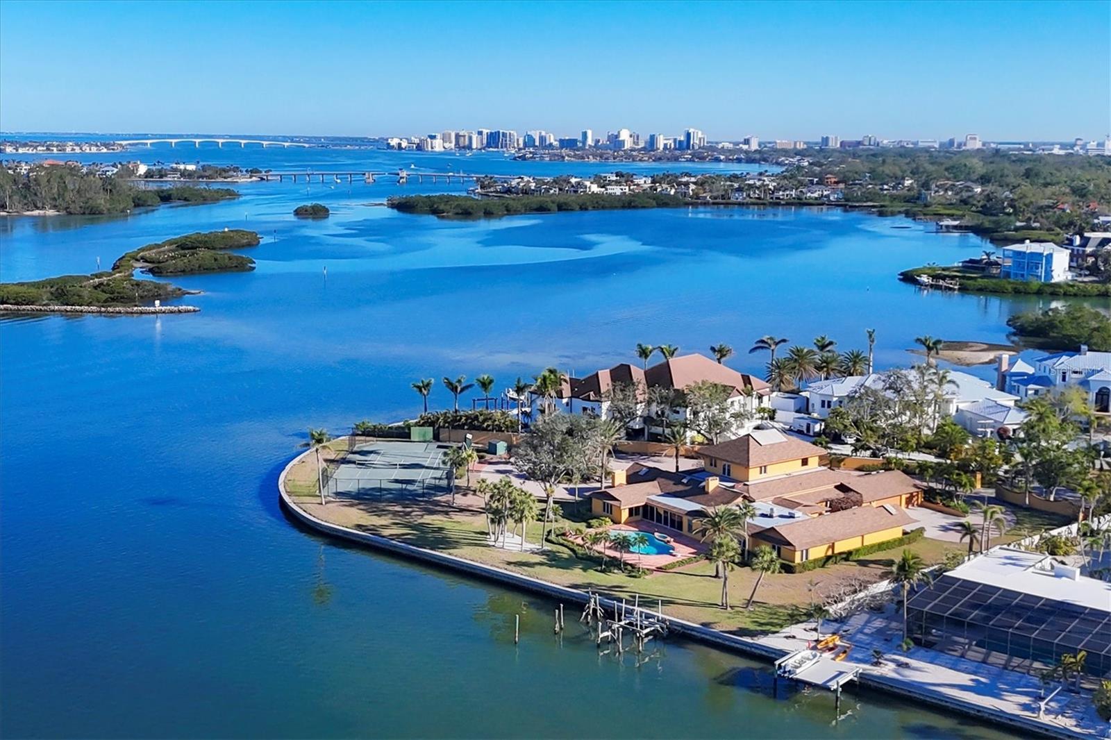 Discover the captivating essence of 1136 N Lake Shore Drive in Oyster Bay Estates—a coveted 1.41-acre sanctuary along the pristine waters of Sarasota Bay. This exceptional property is the essence of waterfront living with over 430 feet on the bay creating unparalleled water and sunset views and offering easy access to both the Intracoastal Waterway and the Gulf of Mexico. A setting that beckons for boundless discovery whether it is watching the dolphins play, enjoying a tennis match, relaxing by the pool, reading a book in one of many distinct spaces or watching the ever-changing variety of sunsets. This distinguished estate spans six bedrooms, six bathrooms, two half baths and an expansive 10,226 total square feet, almost all of which is on one level. Roof was replaced in 2024. Perfect for those who relish hosting large gatherings, the home has an amazing commercial-grade kitchen equipped with professional appliances. A grand gallery room, adorned with soaring ceilings, a loft with wet bar, and a captivating fountain, sets the stage for unforgettable events. The spacious primary suite has water views through the enormous banks of windows, a massive closet with custom organization, and a spa-like bathroom with a lavish tub, shower, vanity, and a serene massage and sauna room. Designed for comfort, this residence features five spacious guest bedrooms, each complemented by generous closets and en-suite bathrooms. The estate is enriched with amenities—a 3-car garage, a tennis court, permitted dock replacement, a spacious fitness room, a billiard room, a private well-appointed office, and ample storage space—enhancing its allure and functionality. All this in an amazing location near The Field Club, Siesta Key, Southside Village, Sarasota Memorial Hospital and Downtown Sarasota. Alternatively, this property extends a rare opportunity as a prime lot, offering an ideal canvas to craft your Sarasota waterfront dream home. Harness the essence of one of the area's most coveted locations and one of the most exceptional waterfront home sites in all of Sarasota. It may be possible to divide the lot into two buildable lots if the existing home is removed.