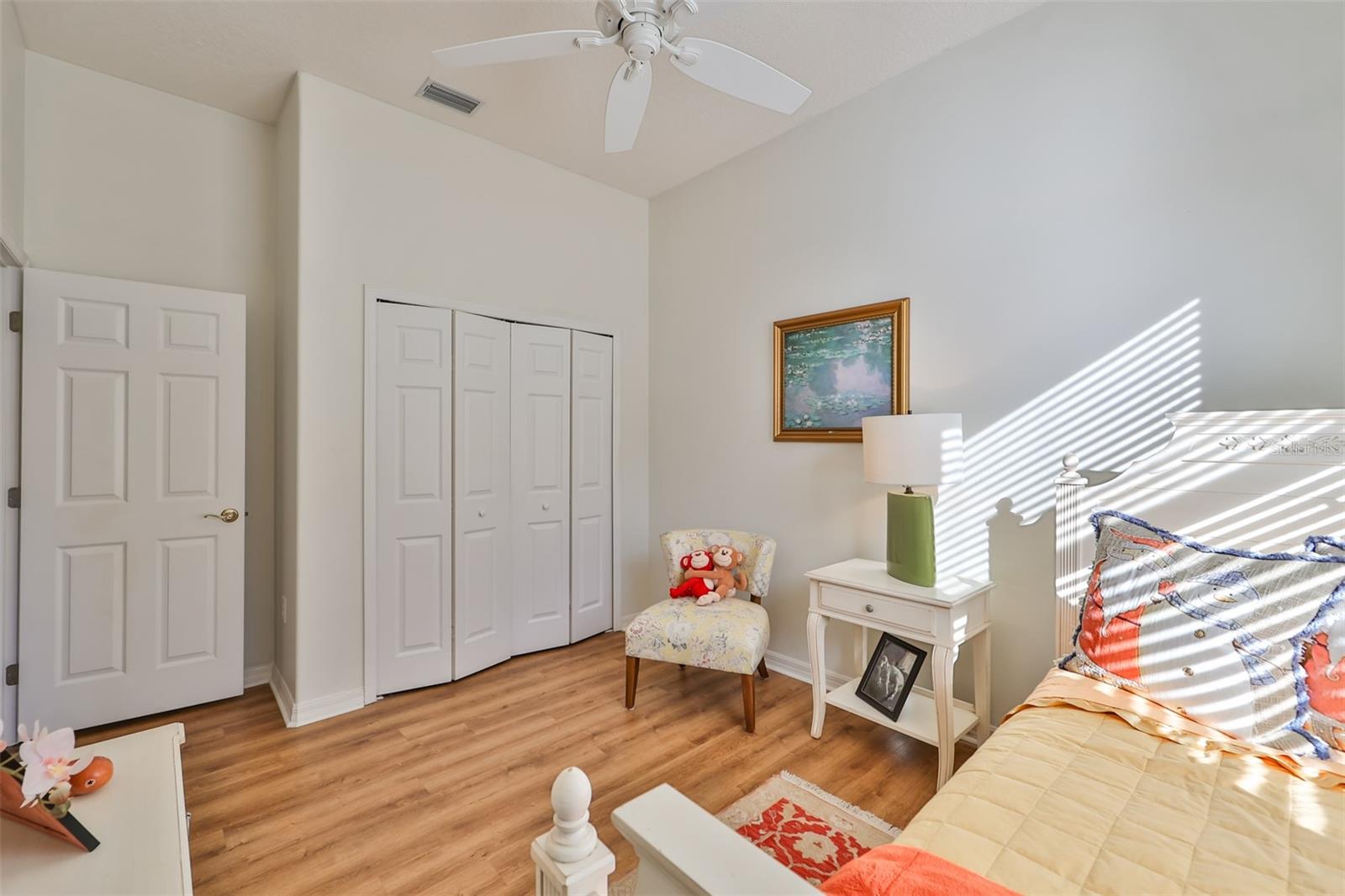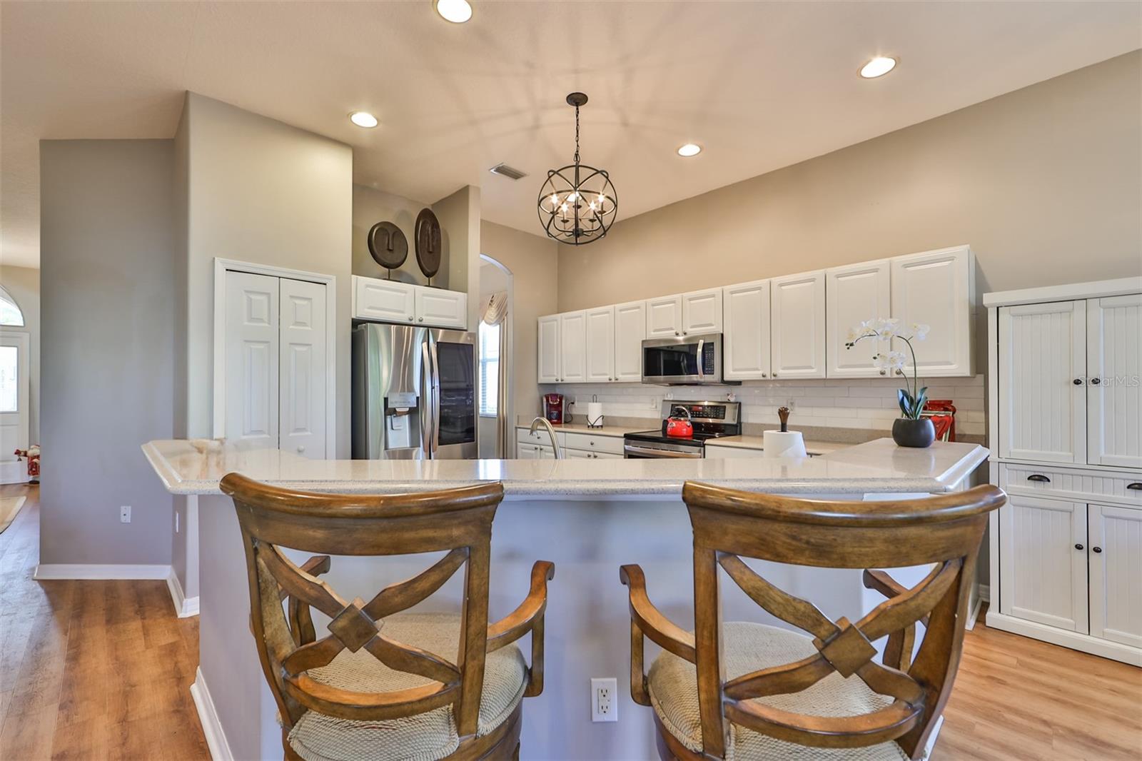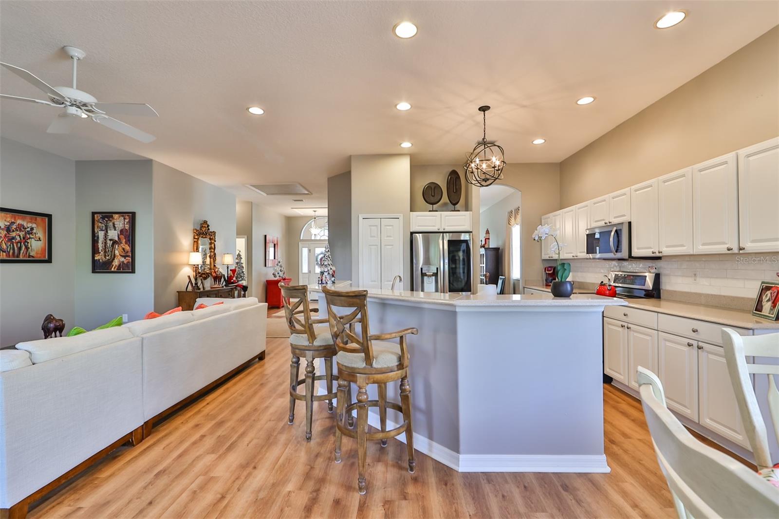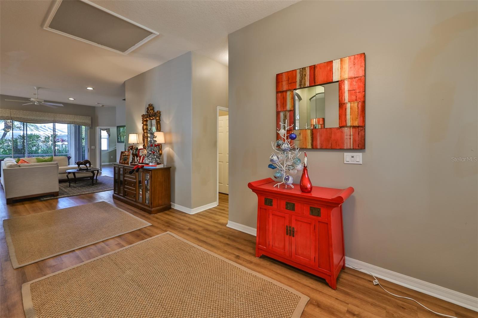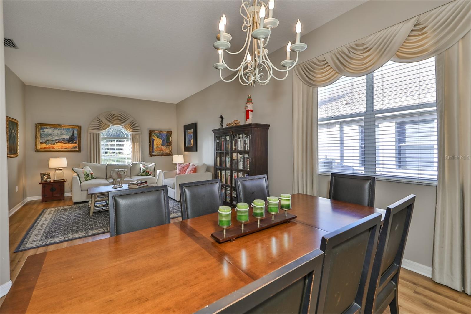 Welcome to your piece of paradise! Nestled in the serene Chaparral neighborhood of Mote Ranch, this executive-style home embodies the quintessential Florida lifestyle. Conveniently situated, it offers easy access to premium shopping and delectable restaurants in Sarasota and Manatee County and is just minutes away from some of Florida's most pristine beaches. As you approach the front walkway, lush tropical landscaping beckons you toward the entrance. Open the door and be prepared to be awestruck. Premier vinyl flooring seamlessly guides you through the home, accentuating the high ceilings and the spacious open floor plan. The extra-large foyer boasts a unique cove area that captures attention from the moment you step inside. To the left, a generously sized open-concept living and dining room awaits, creating the perfect setting for entertaining guests. To the right, a hallway leads to a full bathroom, flanked by two spacious bedrooms adorned with ceiling fans and ample closets. Continuing forward from the foyer, the expansive family room and kitchen seamlessly blend, featuring a dinette area overlooking the large, screened lanai. The kitchen, a culinary haven, boasts a pantry, a two-tiered island bar with cabinets, and a cozy seating area. A three-section sliding glass door in the living room opens to the lanai, surrounded by lush landscaping by nature preserves, providing a private and tranquil oasis. Adjacent to the living room lies the Owner’s suite. Step inside to discover a room adorned with a tray ceiling, creating a light and airy ambiance. The ensuite bathroom indulges with dual sink vanities, separated by makeup vanities, a spacious garden tub, a tiled walk-in shower, and a private toilet area. This bedroom further spoils with a spacious walk-in closet and a sliding glass door leading to the lanai, offering breathtaking views of your personal tropical retreat. Start your mornings with the picturesque sight of your lush surroundings or venture to the community amenity center. Take a refreshing dip in the heated pool, explore the community’s private launch area for kayaking or paddleboarding, or simply unwind and cast a line from the dock for a leisurely fishing experience. This property seamlessly combines luxury living with the allure of natural beauty, making it an unparalleled haven for those seeking the best of both worlds. Don't miss the opportunity to make this exquisite home your own!