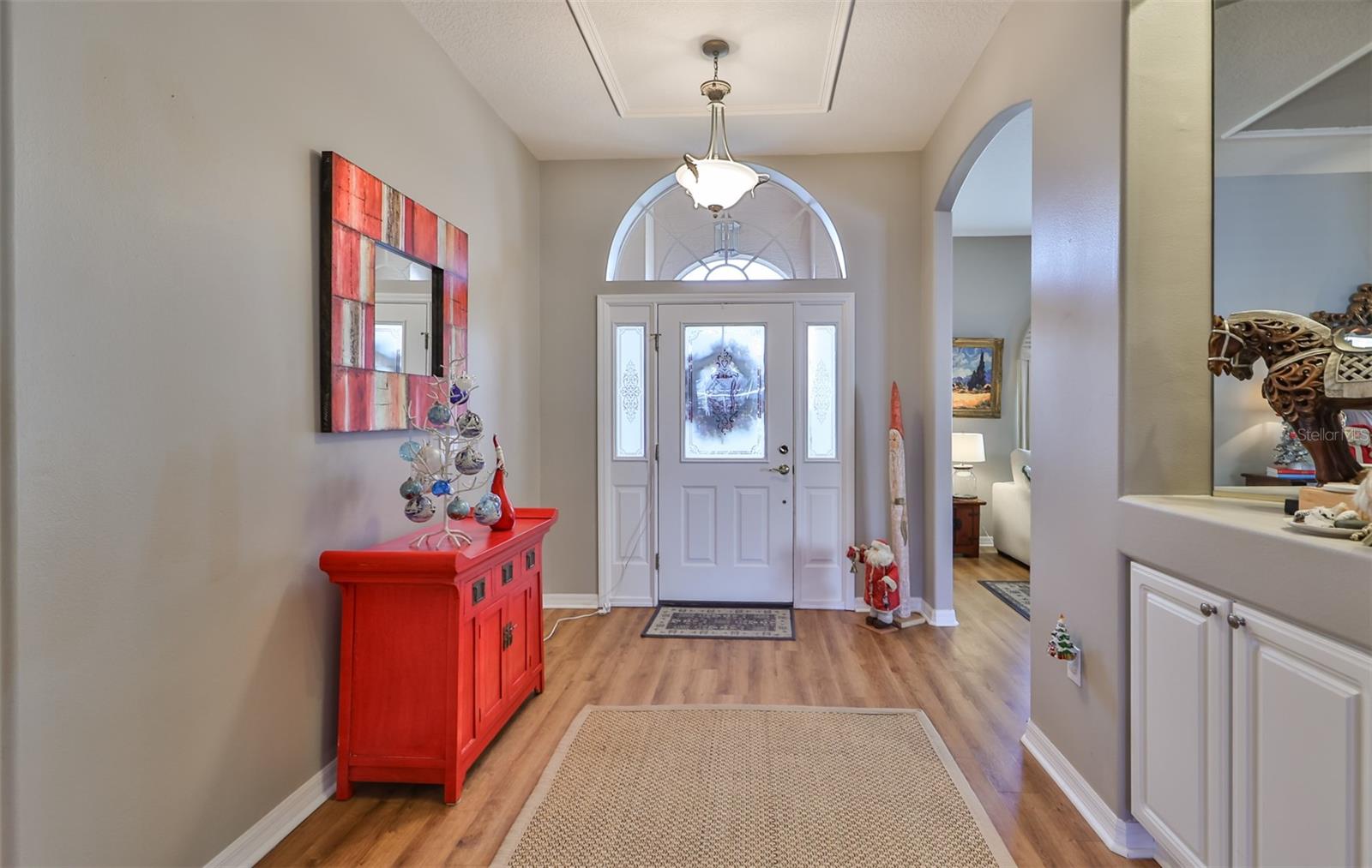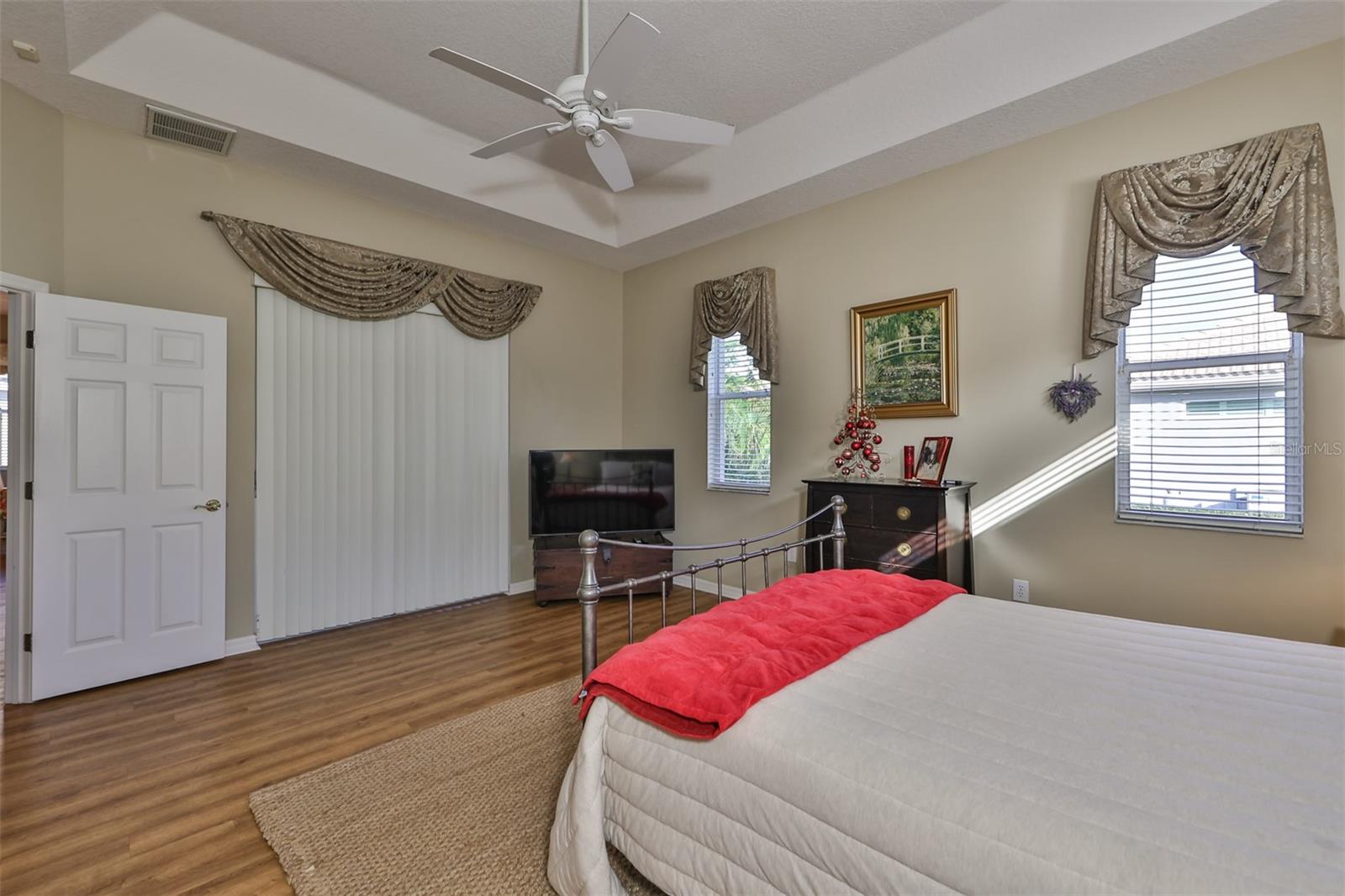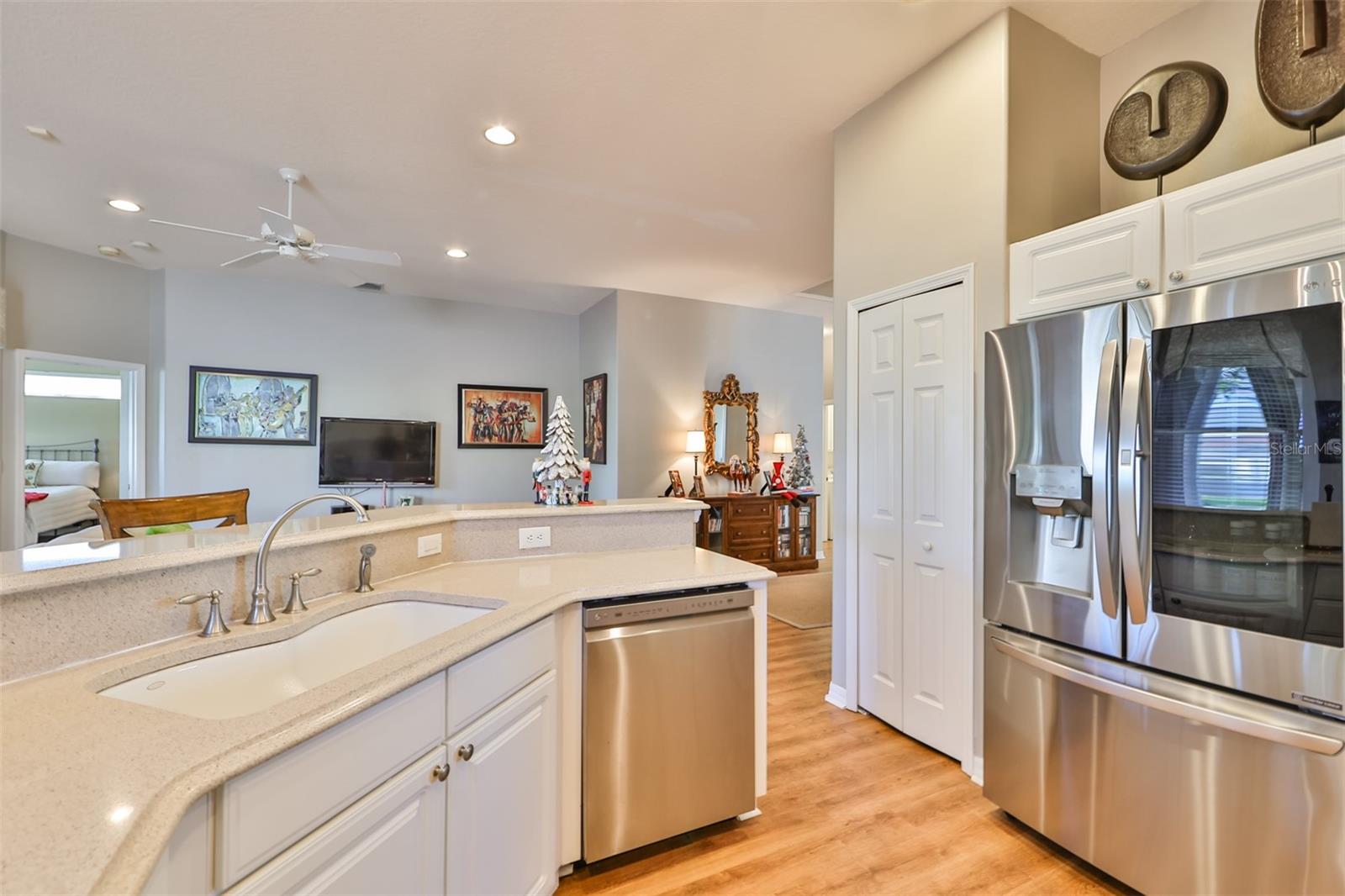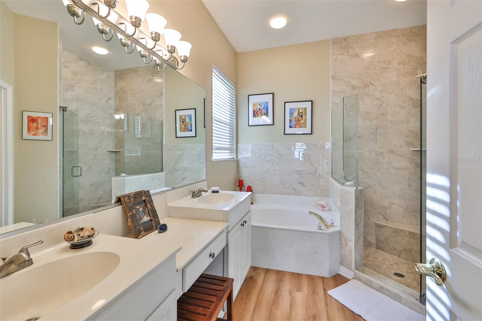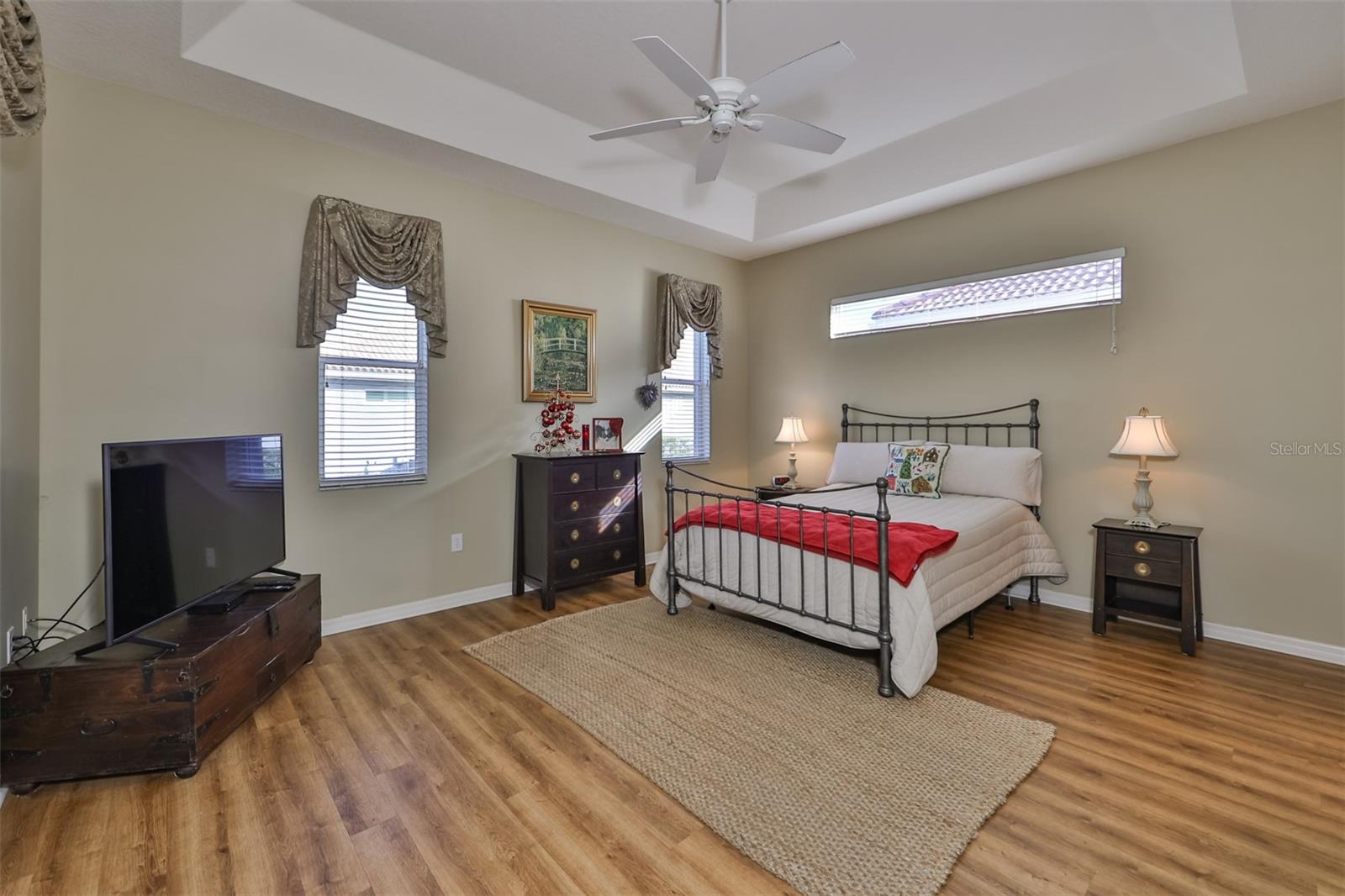 Welcome to your piece of paradise! Nestled in the serene Chaparral neighborhood of Mote Ranch, this executive-style home embodies the quintessential Florida lifestyle. Conveniently situated, it offers easy access to premium shopping and delectable restaurants in Sarasota and Manatee County and is just minutes away from some of Florida's most pristine beaches. As you approach the front walkway, lush tropical landscaping beckons you toward the entrance. Open the door and be prepared to be awestruck. Premier vinyl flooring seamlessly guides you through the home, accentuating the high ceilings and the spacious open floor plan. The extra-large foyer boasts a unique cove area that captures attention from the moment you step inside. To the left, a generously sized open-concept living and dining room awaits, creating the perfect setting for entertaining guests. To the right, a hallway leads to a full bathroom, flanked by two spacious bedrooms adorned with ceiling fans and ample closets. Continuing forward from the foyer, the expansive family room and kitchen seamlessly blend, featuring a dinette area overlooking the large, screened lanai. The kitchen, a culinary haven, boasts a pantry, a two-tiered island bar with cabinets, and a cozy seating area. A three-section sliding glass door in the living room opens to the lanai, surrounded by lush landscaping by nature preserves, providing a private and tranquil oasis. Adjacent to the living room lies the Owner’s suite. Step inside to discover a room adorned with a tray ceiling, creating a light and airy ambiance. The ensuite bathroom indulges with dual sink vanities, separated by makeup vanities, a spacious garden tub, a tiled walk-in shower, and a private toilet area. This bedroom further spoils with a spacious walk-in closet and a sliding glass door leading to the lanai, offering breathtaking views of your personal tropical retreat. Start your mornings with the picturesque sight of your lush surroundings or venture to the community amenity center. Take a refreshing dip in the heated pool, explore the community’s private launch area for kayaking or paddleboarding, or simply unwind and cast a line from the dock for a leisurely fishing experience. This property seamlessly combines luxury living with the allure of natural beauty, making it an unparalleled haven for those seeking the best of both worlds. Don't miss the opportunity to make this exquisite home your own!