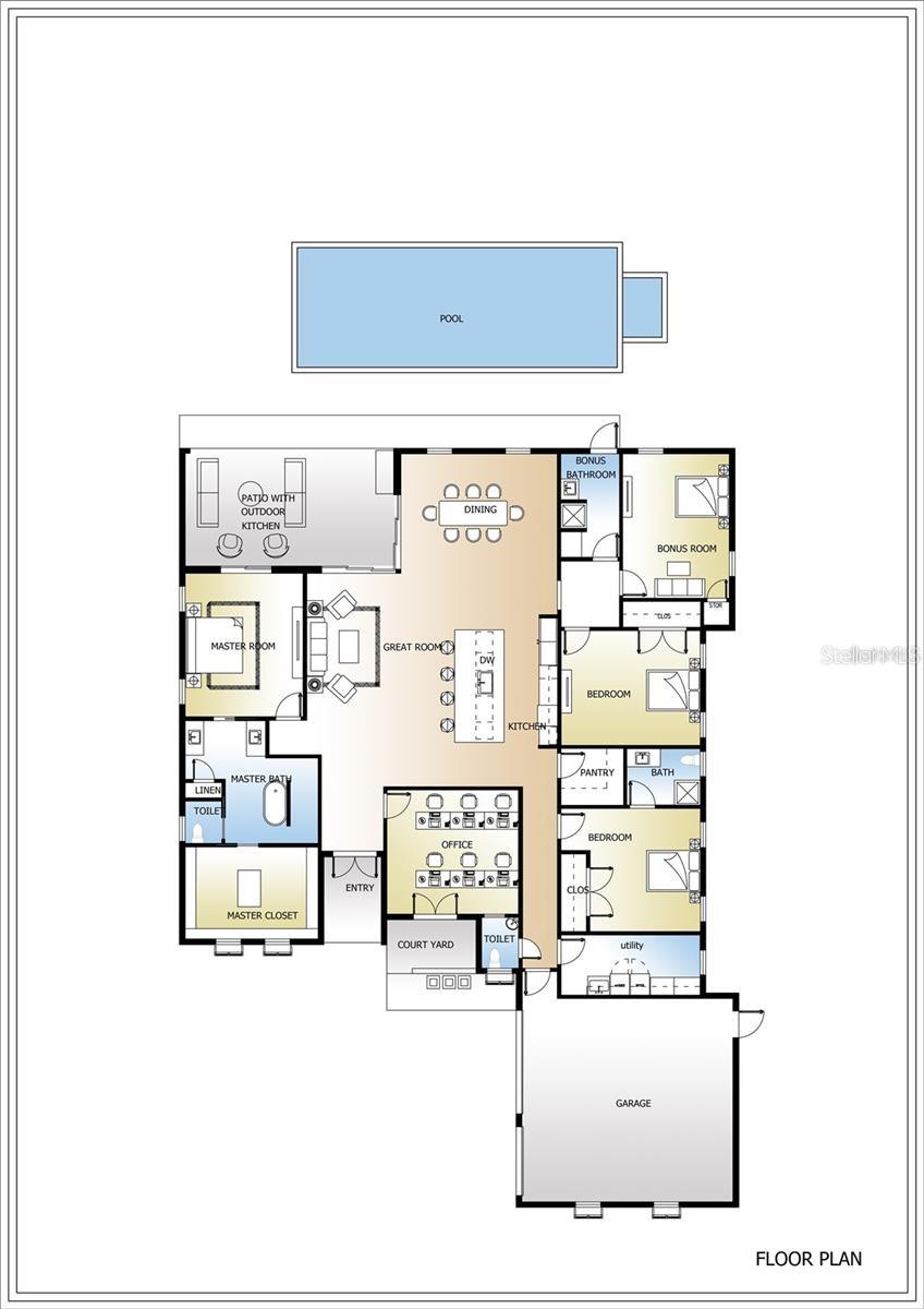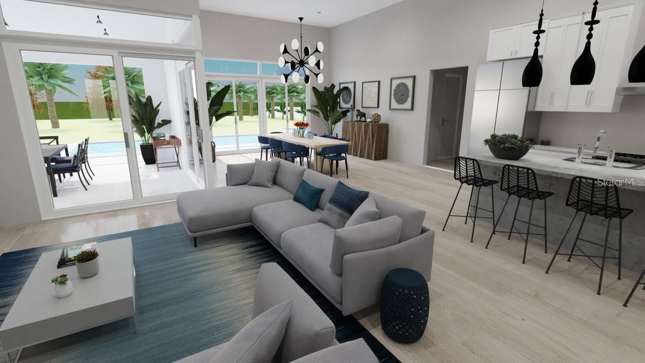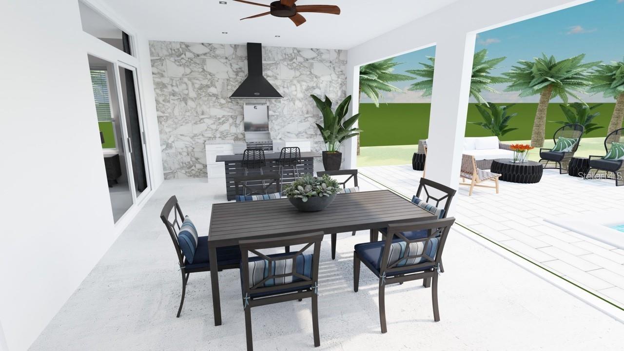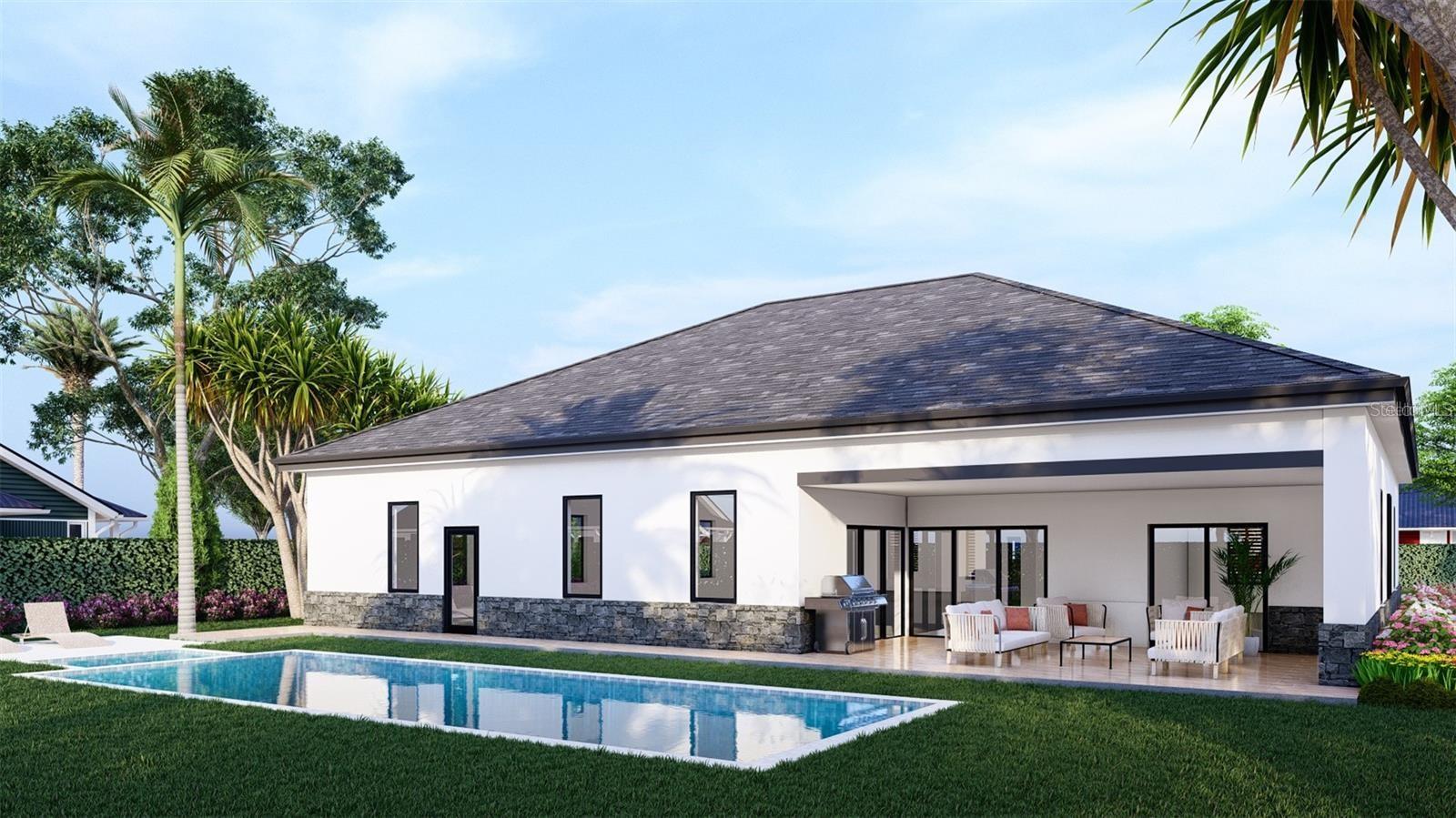 One or more photo(s) has been virtually staged. Under Construction. Beautiful West Indies Coastal Contemporary home with globally inspired design by award-winning Valencia Builders Group. The “Bahama Hampton” is a 3,020 square foot, 3-bedroom, 3-full bath, 1-half bath, 3-car garage home on almost a half-acre lot with office, den/4th bedroom, and inviting pool/spa/outdoor kitchen on a quiet side street within walking distance of the coveted Riverview Highschool. The new home was designed with a focus on outdoor living, with corner pocketing sliding doors, a massive pool & spa, full outdoor kitchen, covered seating areas, and an immense paver-tile pool deck for entertaining family and friends. The oversized paver driveway, side entry garage, decorative courtyard wall, Bahama shutters, and lush tropical landscape drip curb appeal along the quiet tree-lined neighborhood street. Inside the impressive front entry, you’ll be immediately struck by soaring ceilings, large open spaces, luxurious finishes & features, a modern yet comfortable feel, and picturesque views of the pool beyond. The gourmet kitchen features a huge center island, white custom wood cabinetry w/soft close drawers, luxurious quartz countertops, stainless steel appliances, and a 6-burner natural gas range. The kitchen opens into the large family room, ideal for engaging with family and friends, with a coffered/beamed treatment on the 14’ ceilings. A den/office at the rear of the home is a great flex space, which could be used as a 4th bedroom if needed. With a single-floor split-bedroom plan, the primary suite offers total seclusion and includes a monstrous walk-in closet and glamorous en suite bath with dual vanity, huge walk-in shower, and separate tub. Access the powder room through a hidden door, a conversation piece to your impressed guests. Wood floors throughout soften the modern design, with tile in the baths, and carpet under your feet in the bedrooms, all replaceable at this point in construction. Impact-rated hurricane windows and doors. Options for wine walls, dry/wet bars, built-in features, and even a pet-washing station in the oversized laundry room. The list price includes almost all the bells and whistles but schedule a meeting now to finalize your choices. Photos are artist renderings and may include furnishings and features not included. Lot 6 "The Grenada" also available for $1.795M