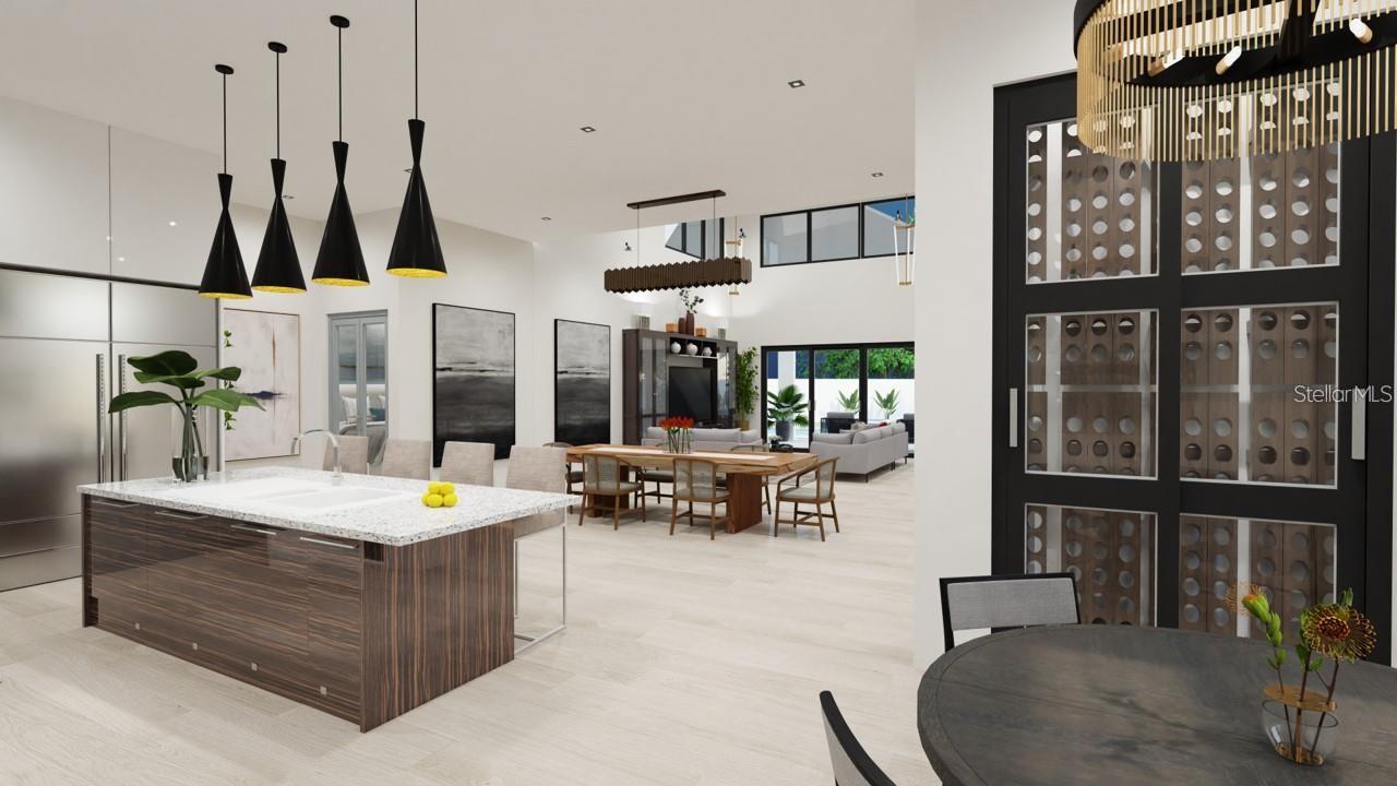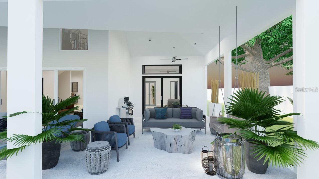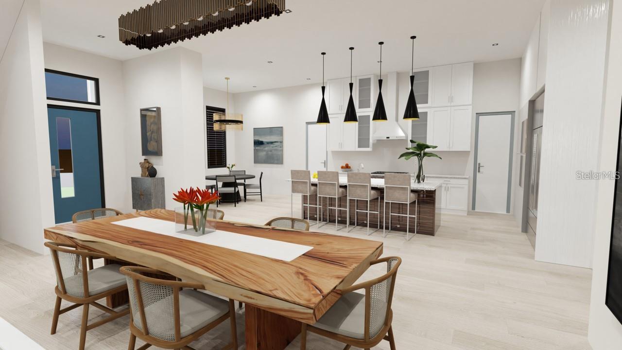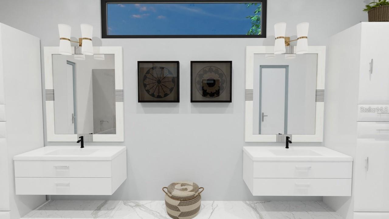 One or more photo(s) has been virtually staged. Under Construction. Beautiful Urban Contemporary home with globally inspired design by award-winning Valencia Builders Group. The “Brooklyn” is a 3,167 square foot, 3-bedroom, 4-full bath, 2-car garage home on a cul-de-sac with office/den/4th bedroom and inviting pool/spa/outdoor kitchen on a quiet side street within walking distance of downtown Sarasota. The new home was designed with a focus on the grand indoor living area, with dramatic 20 ft ceilings and an oversized kitchen, dining, and great room combination - perfect for entertaining family and friends. An oversized driveway leads a spectacular entranceway, with contemporary yet soft finishes including woodwork and stacked stone. Once inside you’ll be immediately struck by soaring ceilings, large open spaces, luxurious finishes & features, a modern yet comfortable feel, and picturesque views of the pool and large yard beyond. The gourmet kitchen features a huge center island, white custom wood cabinetry w/soft close drawers, luxurious quartz countertops, stainless steel appliances, and a 6-burner natural gas range. The kitchen opens into the large great room, ideal for engaging with family and friends, with a coffered/beamed treatment on the ceilings. A den/office space at the front of the home add a flexible space for kids, working from home, or overflow 4th bedroom with closet and nearby full bath if needed. The primary suite is on the main floor and offers total seclusion, including a huge walk-in closet and glamorous en suite bath with dual vanity, huge walk-in shower, and separate tub. Two additional en suite bedrooms upstairs, with an open to below loft that carries light through and gives the homes a stately appeal. The designer’s favorite area is the upstairs outside balcony, an outside retreat providing a “terrace in the trees” sanctuary for your guests. Wood floors throughout soften the modern design, with tile in the baths, and carpet under your feet in the bedrooms, all replaceable at this point in construction. Impact-rated hurricane windows and doors. Options for wine walls, dry/wet bars, and built-in features. The list price includes almost all the bells and whistles but schedule a meeting now to finalize your choices. Photos are artist renderings and may include furnishings and features not included.