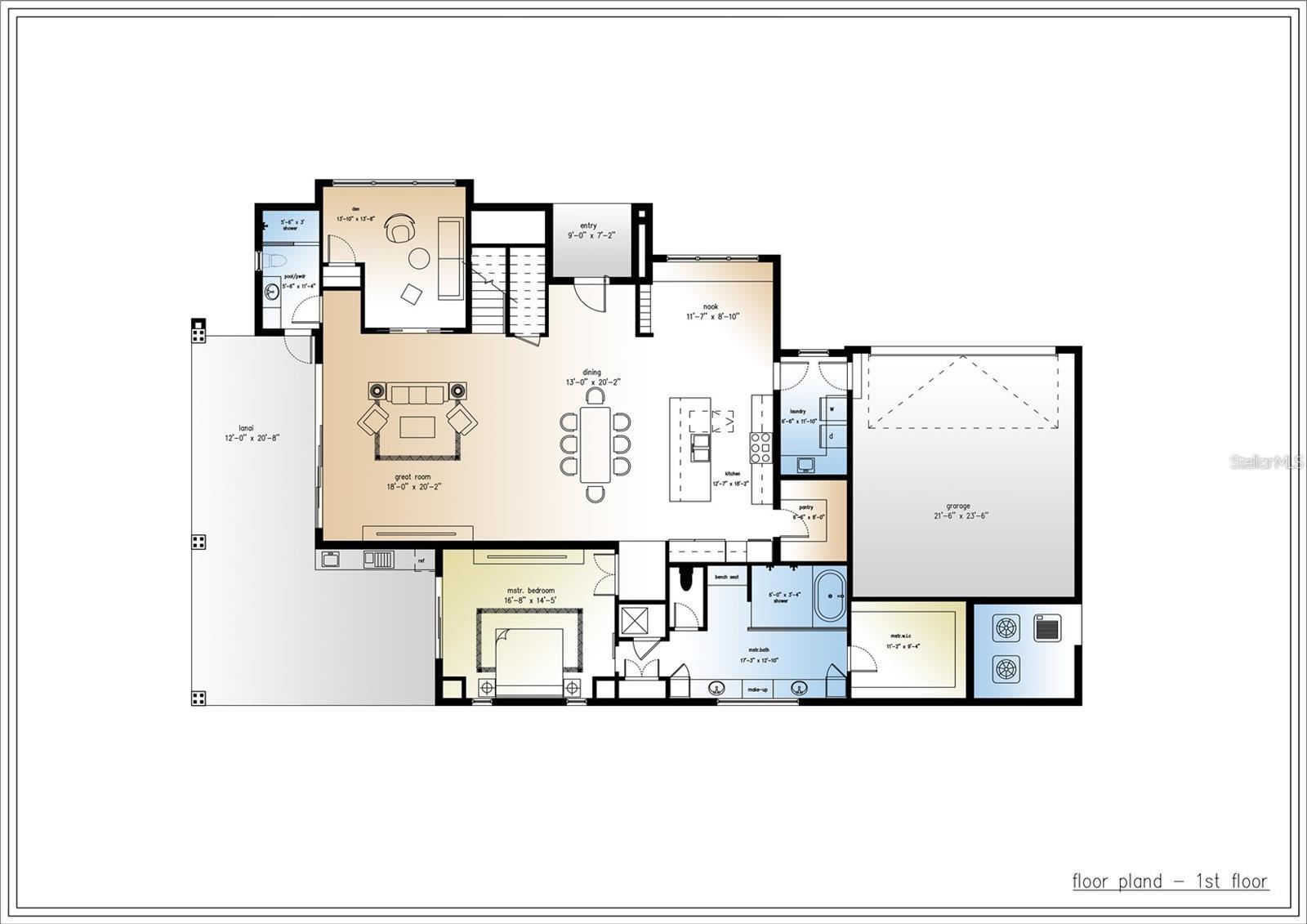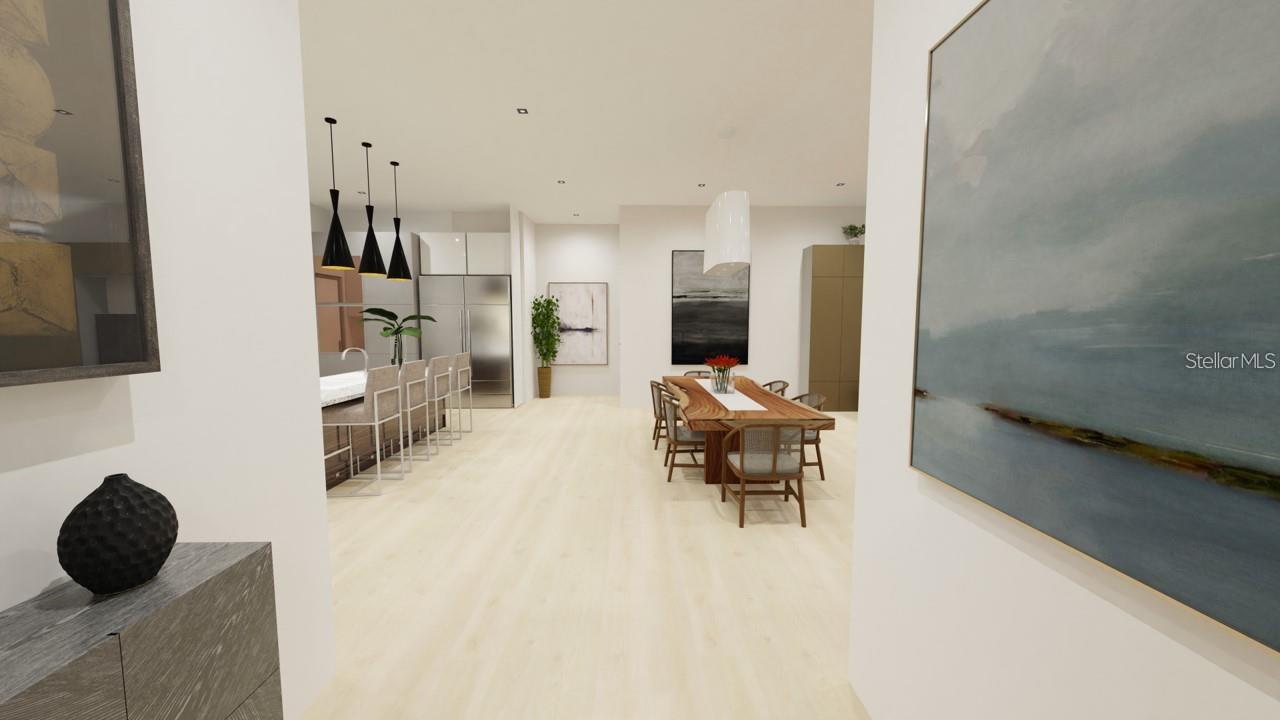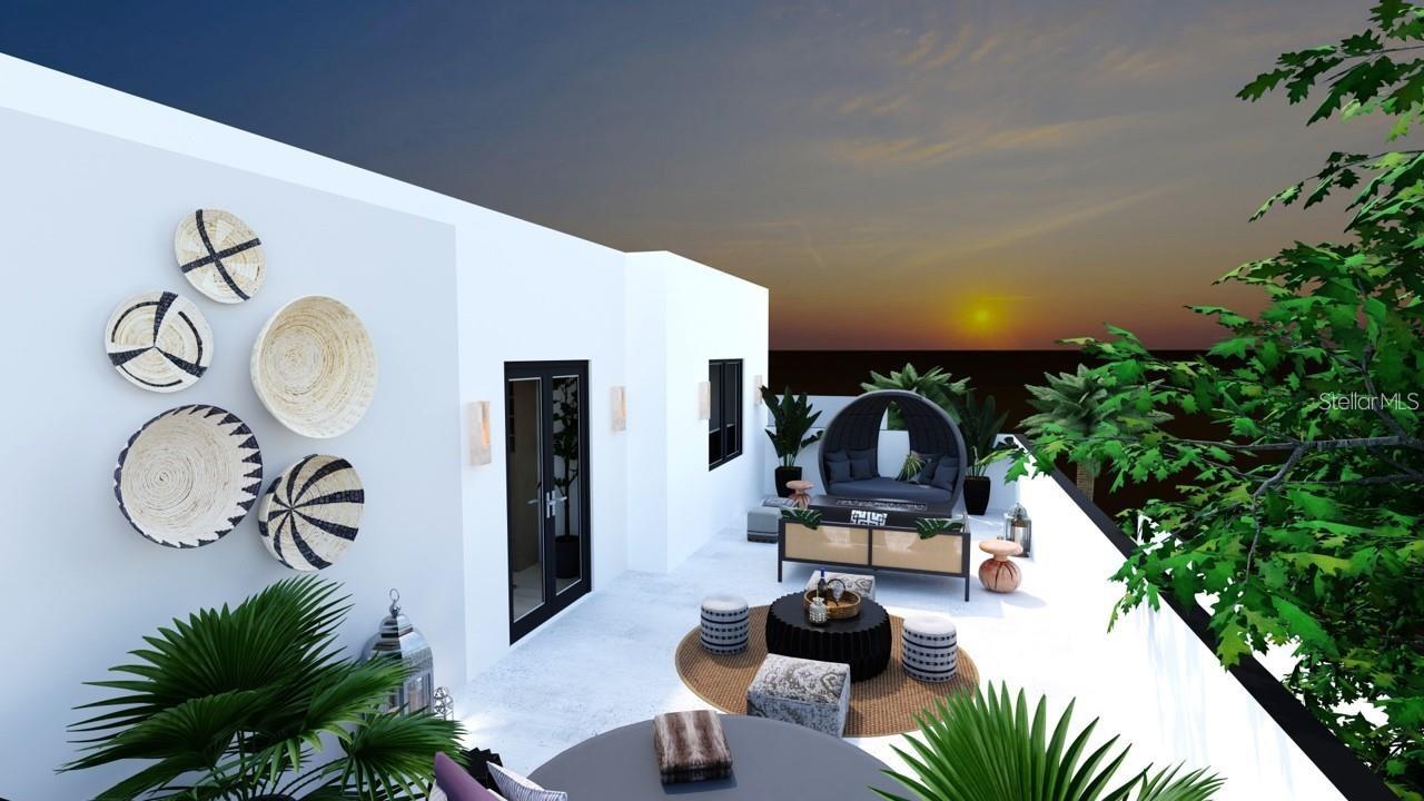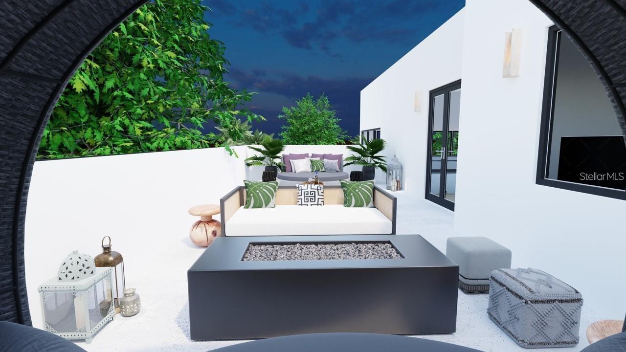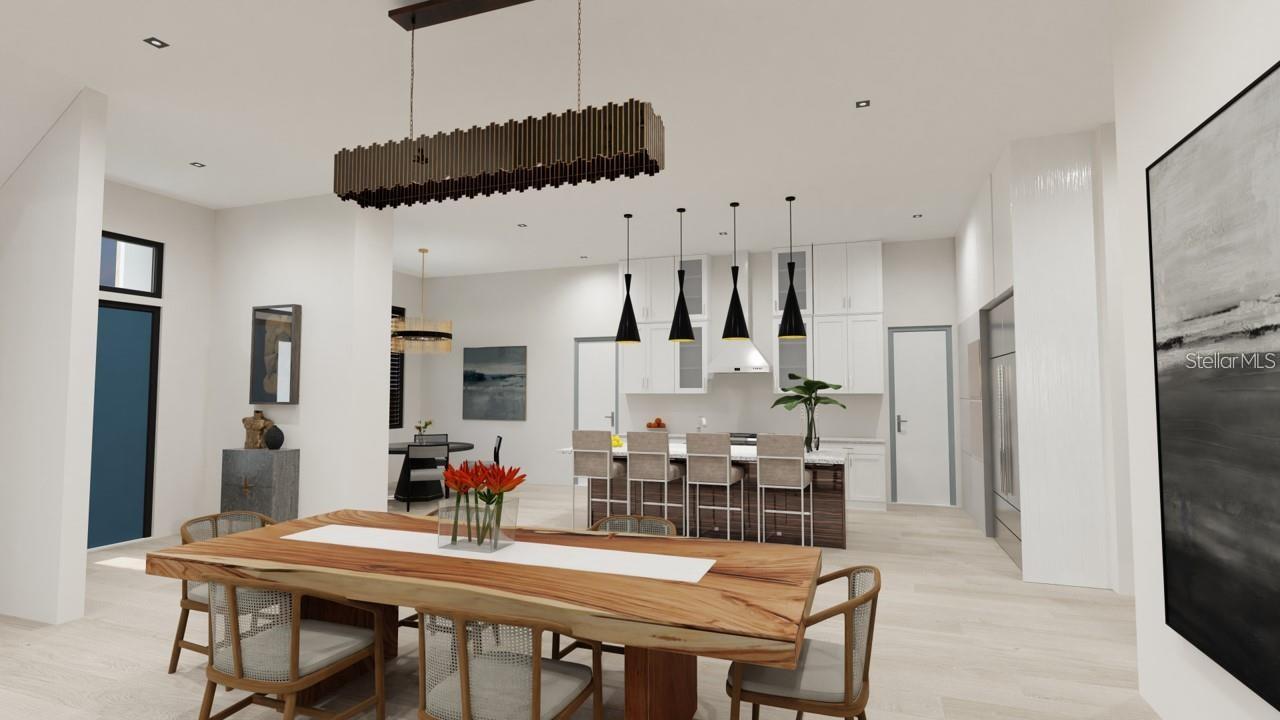 One or more photo(s) has been virtually staged. Under Construction. Beautiful Urban Contemporary home with globally inspired design by award-winning Valencia Builders Group. The “Brooklyn” is a 3,167 square foot, 3-bedroom, 4-full bath, 2-car garage home on a cul-de-sac with office/den/4th bedroom and inviting pool/spa/outdoor kitchen on a quiet side street within walking distance of downtown Sarasota. The new home was designed with a focus on the grand indoor living area, with dramatic 20 ft ceilings and an oversized kitchen, dining, and great room combination - perfect for entertaining family and friends. An oversized driveway leads a spectacular entranceway, with contemporary yet soft finishes including woodwork and stacked stone. Once inside you’ll be immediately struck by soaring ceilings, large open spaces, luxurious finishes & features, a modern yet comfortable feel, and picturesque views of the pool and large yard beyond. The gourmet kitchen features a huge center island, white custom wood cabinetry w/soft close drawers, luxurious quartz countertops, stainless steel appliances, and a 6-burner natural gas range. The kitchen opens into the large great room, ideal for engaging with family and friends, with a coffered/beamed treatment on the ceilings. A den/office space at the front of the home add a flexible space for kids, working from home, or overflow 4th bedroom with closet and nearby full bath if needed. The primary suite is on the main floor and offers total seclusion, including a huge walk-in closet and glamorous en suite bath with dual vanity, huge walk-in shower, and separate tub. Two additional en suite bedrooms upstairs, with an open to below loft that carries light through and gives the homes a stately appeal. The designer’s favorite area is the upstairs outside balcony, an outside retreat providing a “terrace in the trees” sanctuary for your guests. Wood floors throughout soften the modern design, with tile in the baths, and carpet under your feet in the bedrooms, all replaceable at this point in construction. Impact-rated hurricane windows and doors. Options for wine walls, dry/wet bars, and built-in features. The list price includes almost all the bells and whistles but schedule a meeting now to finalize your choices. Photos are artist renderings and may include furnishings and features not included.