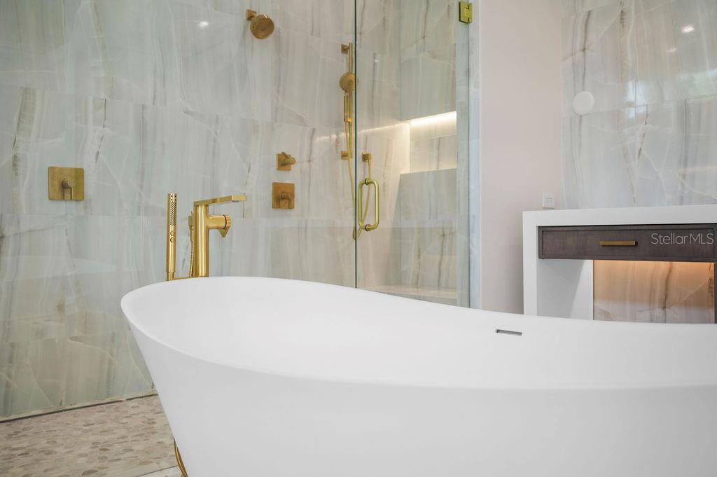 One or more photo(s) has been virtually staged. 3621 San Remo is complete and ready for occupancy, come and experience the epitome of luxury! Minutes from Siesta Key and Miles from Ordinary! Nestled on a quiet cul-de-sac west of Orange Avenue, this Florida Coastal masterpiece by Seaward Homes offers over 5300 sq. ft. of prime waterfront living. With a bayou stretching almost 400 feet wide, enjoy direct access to the breathtaking Sarasota Bay and BIG WATER VIEWS that define coastal elegance. Designed with meticulous attention to detail, the home features an expansive, light-filled open floor plan. It includes five spacious bedrooms, each with its own walk-in closet, five full baths, and two half baths. Two oversized lanais and a four-car garage ensure seamless indoor-outdoor living, while a third-level rooftop terrace provides panoramic views of Sarasota Bay. Quality and craftsmanship are paramount in this Seaward Curated Collection home. Constructed with concrete block on both the first and second floors, ensures superior structural integrity. Inside, locally crafted custom solid wood cabinets and high end finishes complement the kitchen’s luxurious Quartzite surfaces, including a custom island, backsplash, and an additional scullery. The professional-grade Thermador™ appliance package features a 30" refrigerator, 24" freezer columns, an induction cooktop, double ovens, and two Cove™ dishwashers—perfect for culinary enthusiasts. Every detail has been carefully considered, from solid brass Kohler™ plumbing fixtures and one-piece comfort height toilets to flooring that include large format designer porcelain tile or European white oak hardwood. The interior trim package includes eight-foot solid doors, oversized baseboards and casings, coffered ceilings, and substantial crown molding, with ceiling heights reaching up to 12 feet in select areas. Additional highlights include a state-of-the-art electrical and lighting control system, a high-efficiency multi-zone Trane™ air conditioning system, hurricane impact-rated insulated glass, and 10-foot sliding impact glass doors throughout. The architectural elegance of the home is further enhanced by a standing-seam metal roof, combining style and durability. Outdoors, the expansive 45-foot wide lanai, complete with an outdoor kitchen and gas grill by Coyote™, is perfect for entertaining, while the 40-foot inground, edgeless heated salt water pool and spa, designed by Borden Landscape Architects, offers a private retreat. The exterior is complemented by a semi-circular driveway with concrete shell pavers and an irrigation well. Located at San Remo Terrace, this luxurious "West of Trail" property is just minutes from Siesta Key Beach, Morton’s Market in Southside Village, Downtown Sarasota, and Sarasota Memorial Hospital, making it the ideal home for those seeking the ultimate Florida lifestyle.
