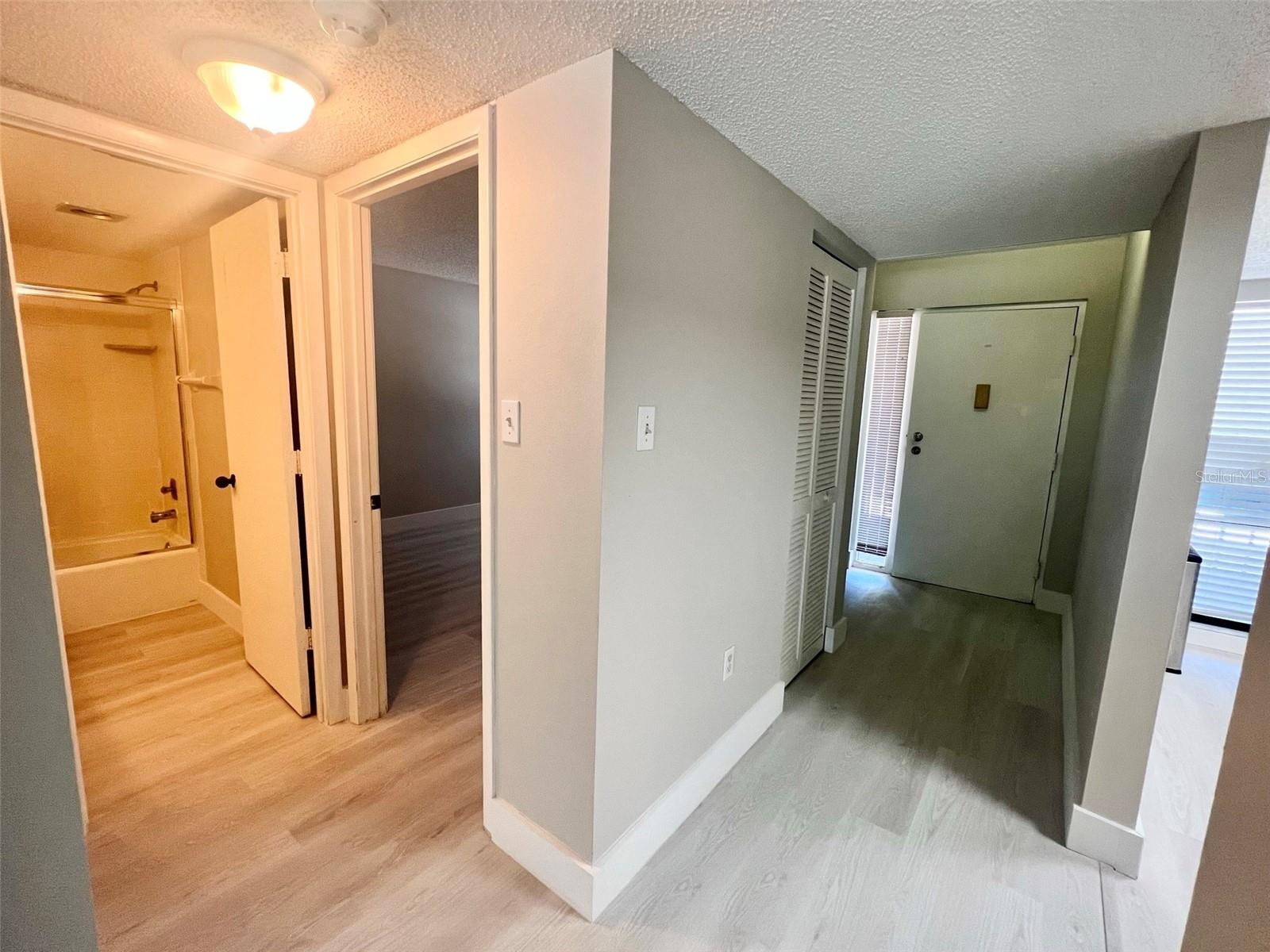 Paradise found! Take up residence at this unique enclave of highly desirable condominium homes located near the heart of Sarasota's Gulf Gate area! Only a short distance to everything Sarasota has to offer, including: Selby Gardens, Historic Burns Court, St Armands Circle, golf courses and the white sandy beaches of the Gulf of Mexico with its barrier Key Islands! This spectacular updated 2 bedroom/2 bath open floor plan boasts wall to wall new wood laminate vinyl plank floors, new paint, updated kitchen with new tray ceiling/lighting, inside laundry room/walk-in closet, and is complete with a full set of appliances: oven/range, hood, dishwasher, refrigerator, countertop microwave, washer, dryer and much more! Elements of casual luxury everywhere you turn! Light, bright and airy...a personal luxury retreat from the mundane worries of the world! Convenient to a huge array of Sarasota shopping centers, cafes, galleries, boutiques, restaurants, theater, clubs... all accented by the sun, beaches and the proximity of the sparkling blue waters of Sarasota's Bay! This 2nd floor unit offers a split bedroom plan with a large master bedroom/bath suite to the rear with sliding glass doors opening up to a screened lanai balcony and a breathtaking view overlooking the pool/gazebo area, a guest bedroom and separate bath to the front of the unit, built-in and walk-in closets, galley kitchen with newer appliances and convenient breakfast bar leading to the dining area and large open living room. Sliding glass doors invite you out of the living room to an amazing screened lanai balcony with ceiling fan and gorgeous tropical views overlooking the pool and gazebo area! New wood laminate vinyl plank floors throughout the unit's living area! Occupy as-is...move right in...or utilize as luxury rental investment income property - your choice! The Crossings amenities include: a beautifully maintained heated pool, clubhouse, gazebo, covered carport and guest parking, and much more! Buy this one quickly before it disappears!