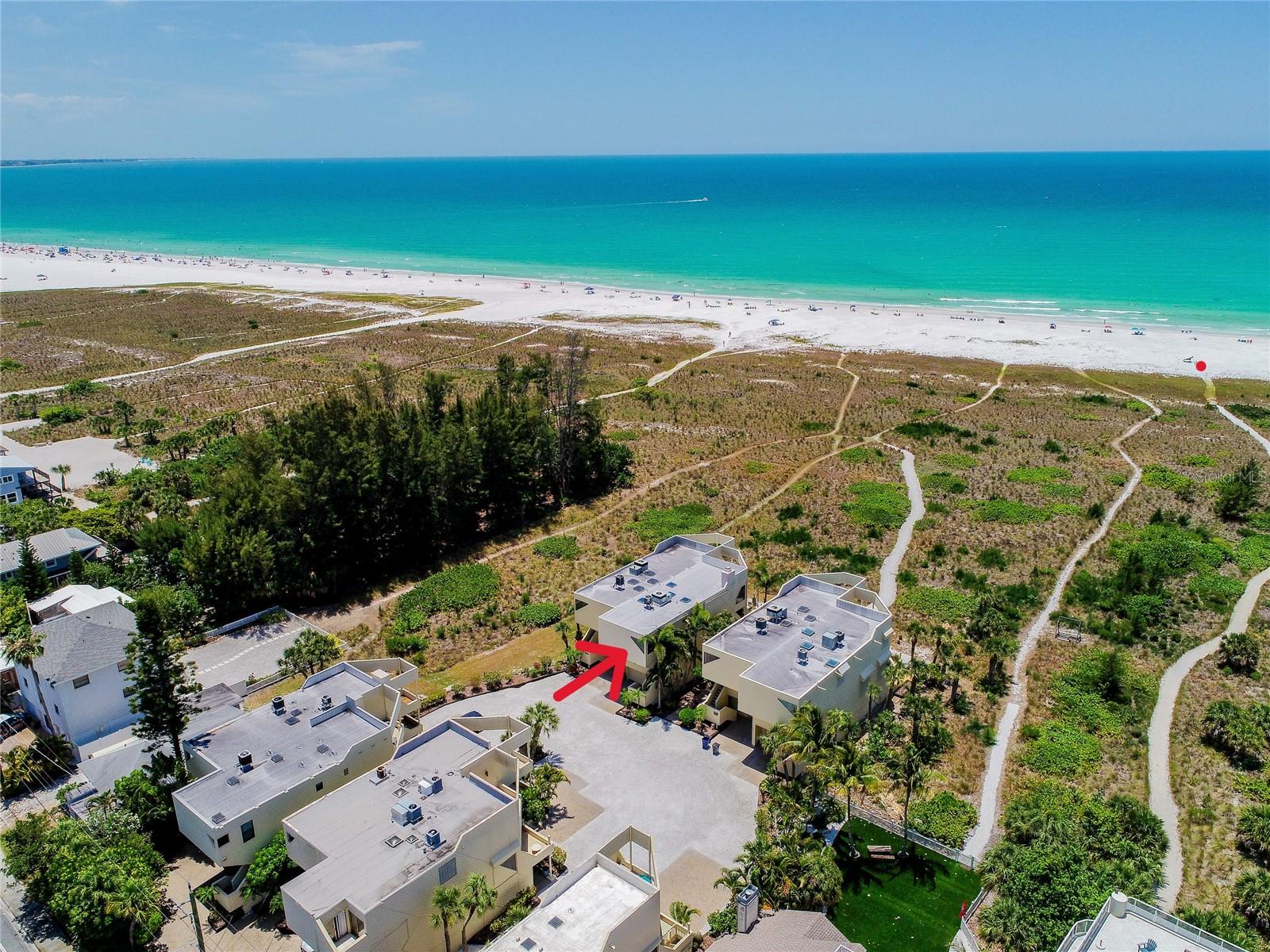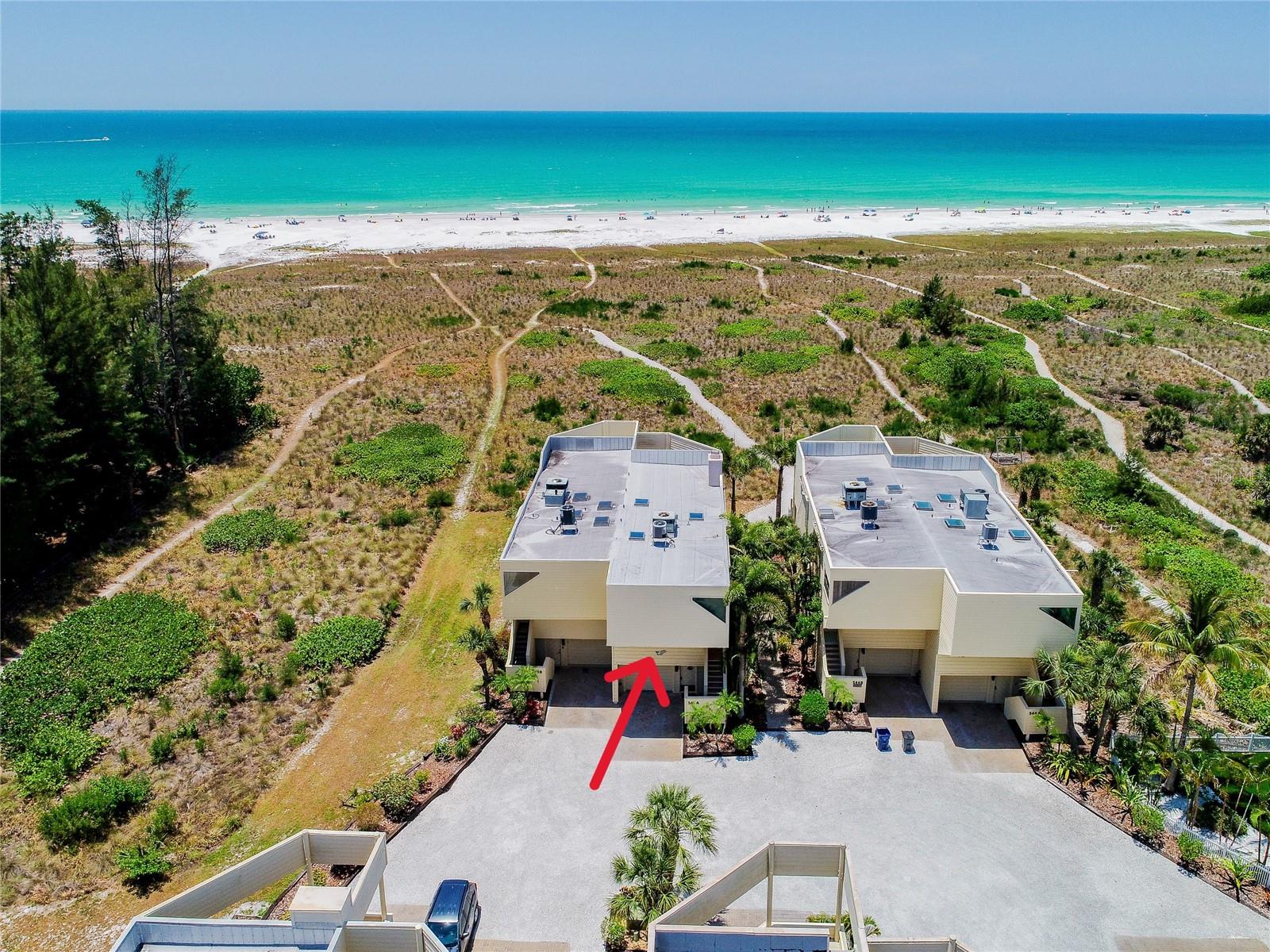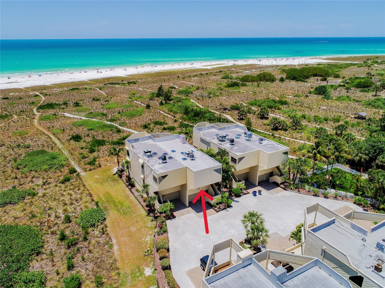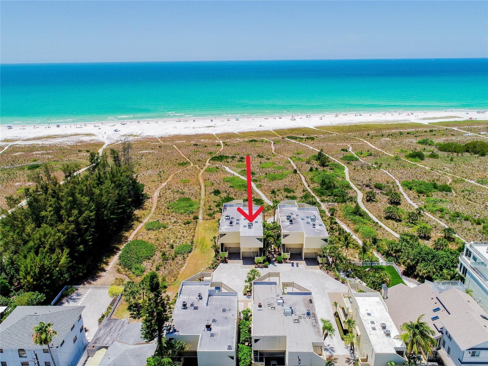Dream Location! Stunning unobstructed views of the Gulf of Mexico and Siesta Beach from all three floors! Soak up the beach vibe all day long till amazing sunsets from this rarely available, end-unit 3 stories townhouse condominium. Only 9 units in this exclusive community of Tiffany Sands, ideally located on Siesta Beach and so close to Siesta Village that you won’t need a car. This 3-level townhome feels like a single-family home, offering 1 car garage, 2 balconies (third and second floor) and one porch on the ground floor. The main level features an island kitchen open to the airy dining and living room and half bath. Upstairs, the large Gulf-front master bedroom suite offers gorgeous Gulf and beach views, a private balcony and a fabulous ensuite master bath featuring a soaking tub, shower, bidet and double vanity. Guest bedroom, guest bath and washer and dryer closet are located on the same floor. The guest bedroom is divided into 2, creating 2 separate bedrooms (17x7 and 17x12), each with its own closet and entry door. The first floor legally, non-conforming bedroom (not furnished as a bedroom now) offers sliders to a porch with outdoor kitchen and full bathroom. 2-zone HVAC units, low-maintenance Hardie board siding. List of updates includes hurricane proof windows and sliders in 2016, reconstructed 3rd floor balcony with new main beam in 2017, double coat roof and skylights in 2017, main A/C in 2017, new outside staircase in 2018, Water Heater in 2019, top floor A/C unit in December 2022. Under Termite Warranty and with Hurricane shutters on each floor (third floor shutters are motorized, installed in 2017). Sold Turn-key furnished! Come to enjoy the Island lifestyle!