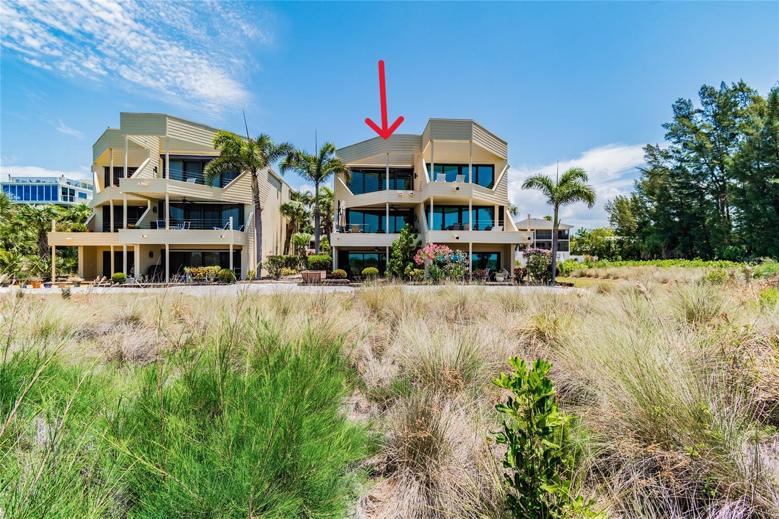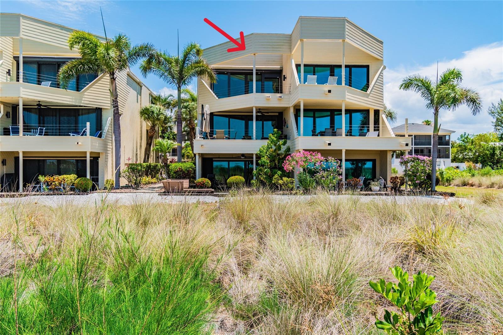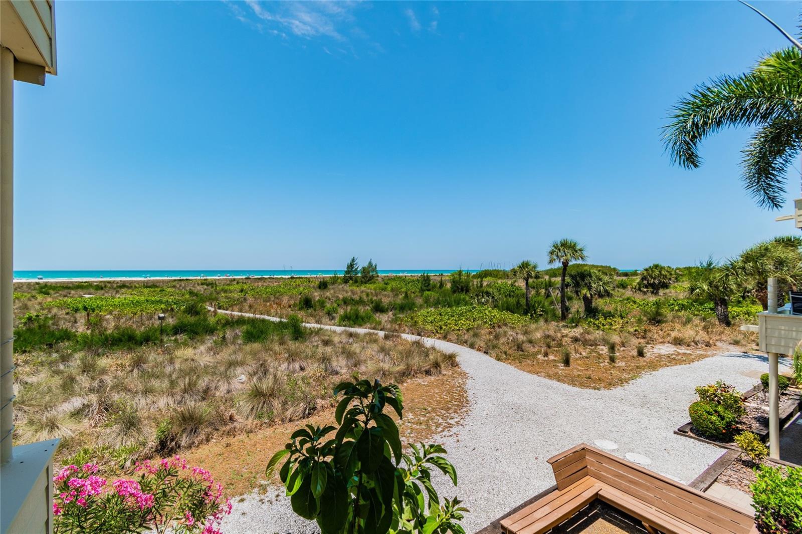Dream Location! Stunning unobstructed views of the Gulf of Mexico and Siesta Beach from all three floors! Soak up the beach vibe all day long till amazing sunsets from this rarely available, end-unit 3 stories townhouse condominium. Only 9 units in this exclusive community of Tiffany Sands, ideally located on Siesta Beach and so close to Siesta Village that you won’t need a car. This 3-level townhome feels like a single-family home, offering 1 car garage, 2 balconies (third and second floor) and one porch on the ground floor. The main level features an island kitchen open to the airy dining and living room and half bath. Upstairs, the large Gulf-front master bedroom suite offers gorgeous Gulf and beach views, a private balcony and a fabulous ensuite master bath featuring a soaking tub, shower, bidet and double vanity. Guest bedroom, guest bath and washer and dryer closet are located on the same floor. The guest bedroom is divided into 2, creating 2 separate bedrooms (17x7 and 17x12), each with its own closet and entry door. The first floor legally, non-conforming bedroom (not furnished as a bedroom now) offers sliders to a porch with outdoor kitchen and full bathroom. 2-zone HVAC units, low-maintenance Hardie board siding. List of updates includes hurricane proof windows and sliders in 2016, reconstructed 3rd floor balcony with new main beam in 2017, double coat roof and skylights in 2017, main A/C in 2017, new outside staircase in 2018, Water Heater in 2019, top floor A/C unit in December 2022. Under Termite Warranty and with Hurricane shutters on each floor (third floor shutters are motorized, installed in 2017). Sold Turn-key furnished! Come to enjoy the Island lifestyle!