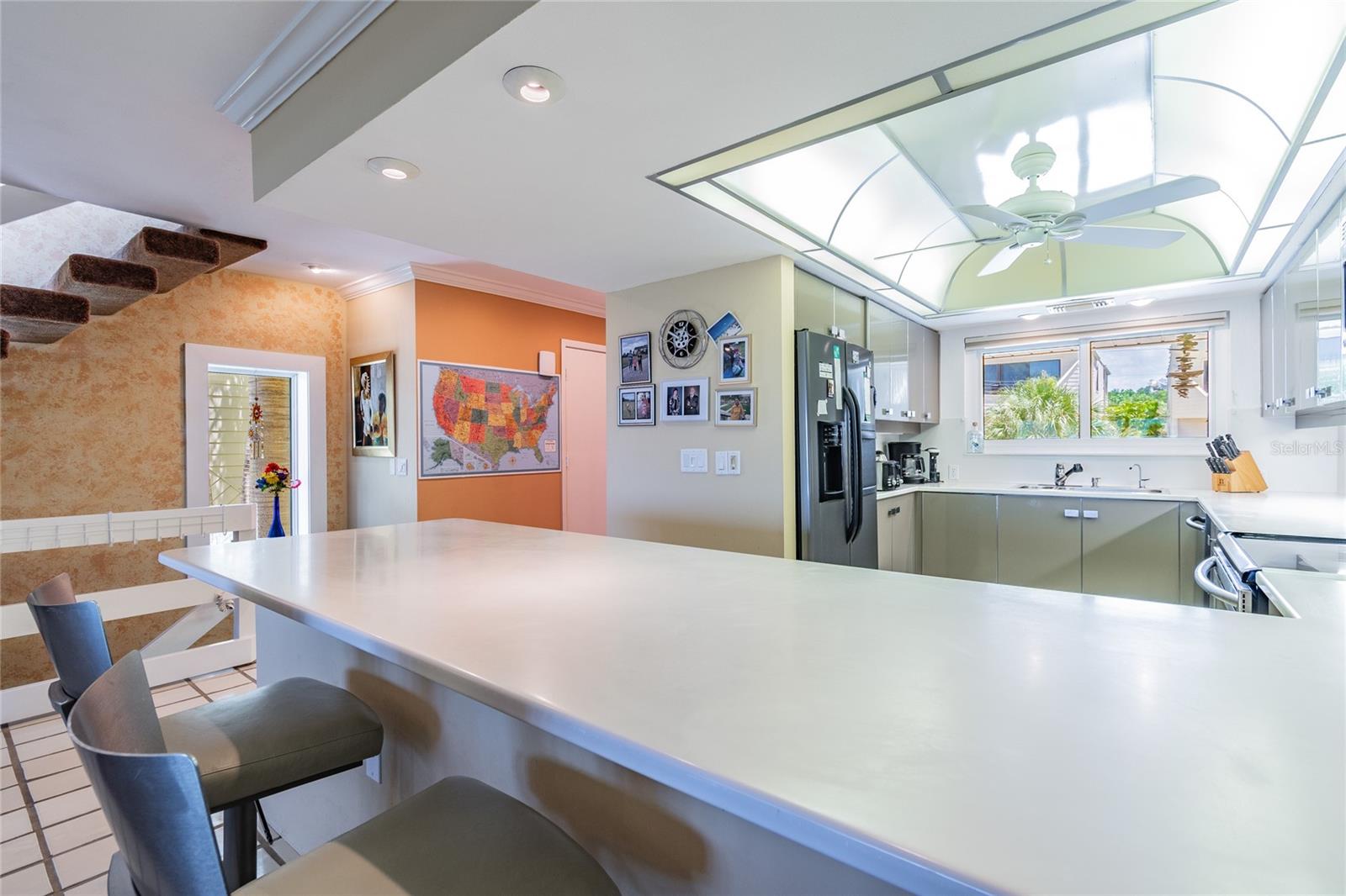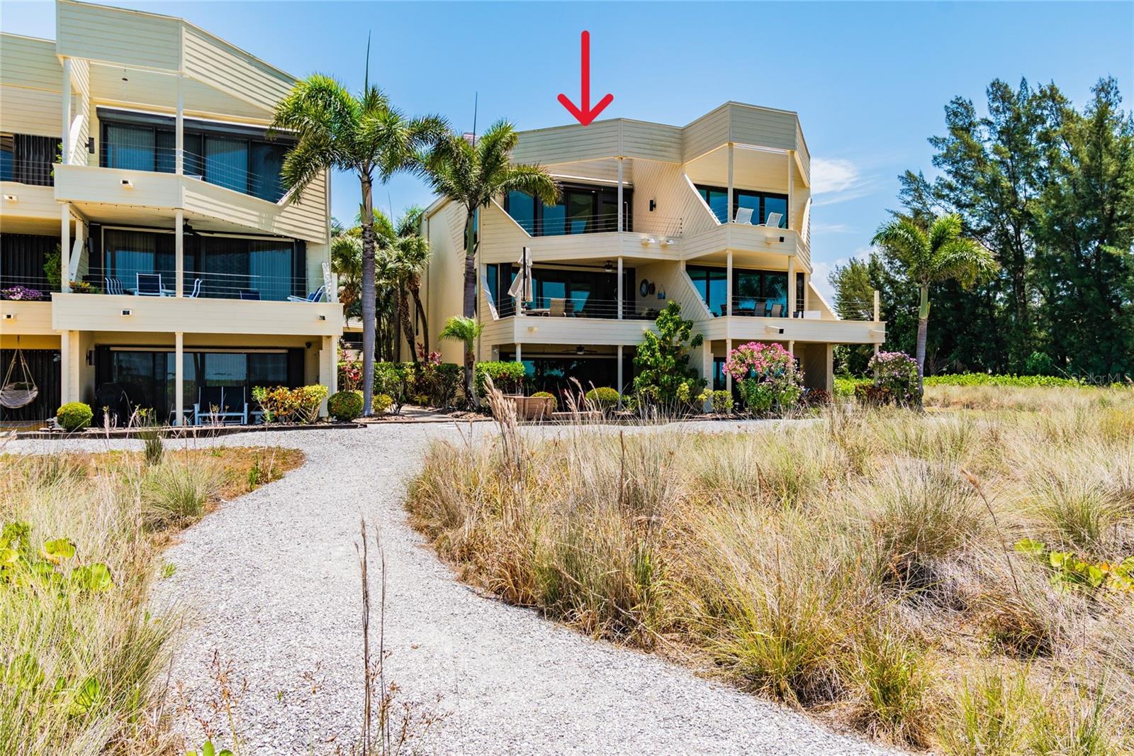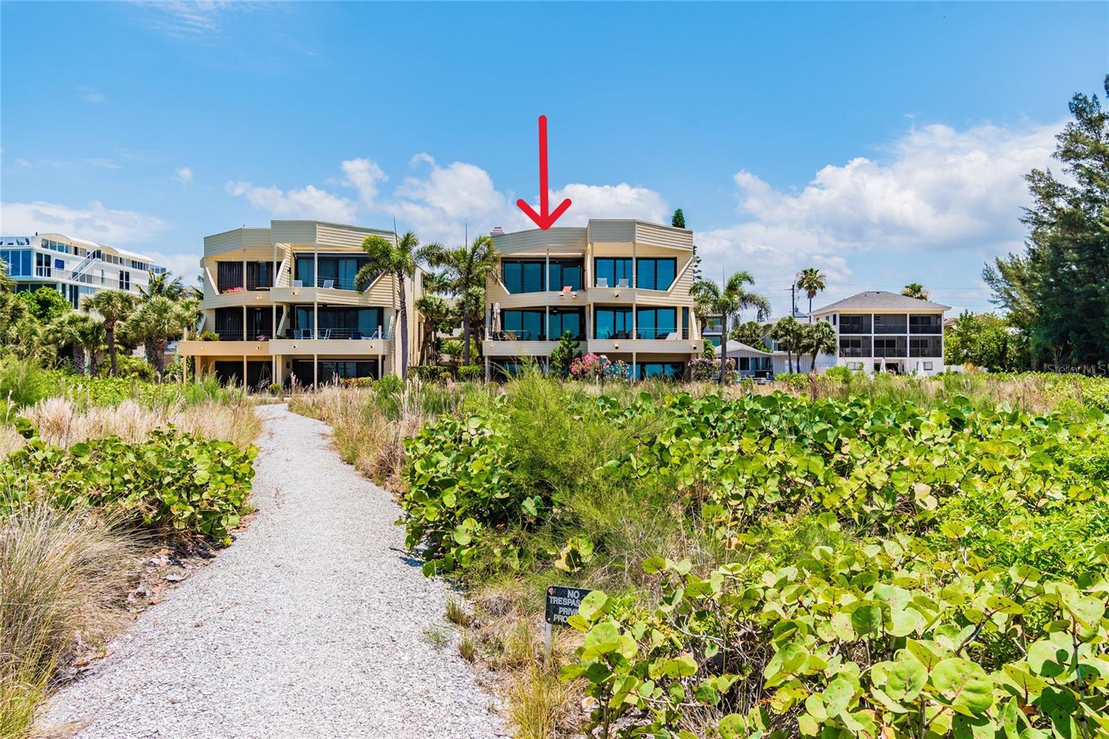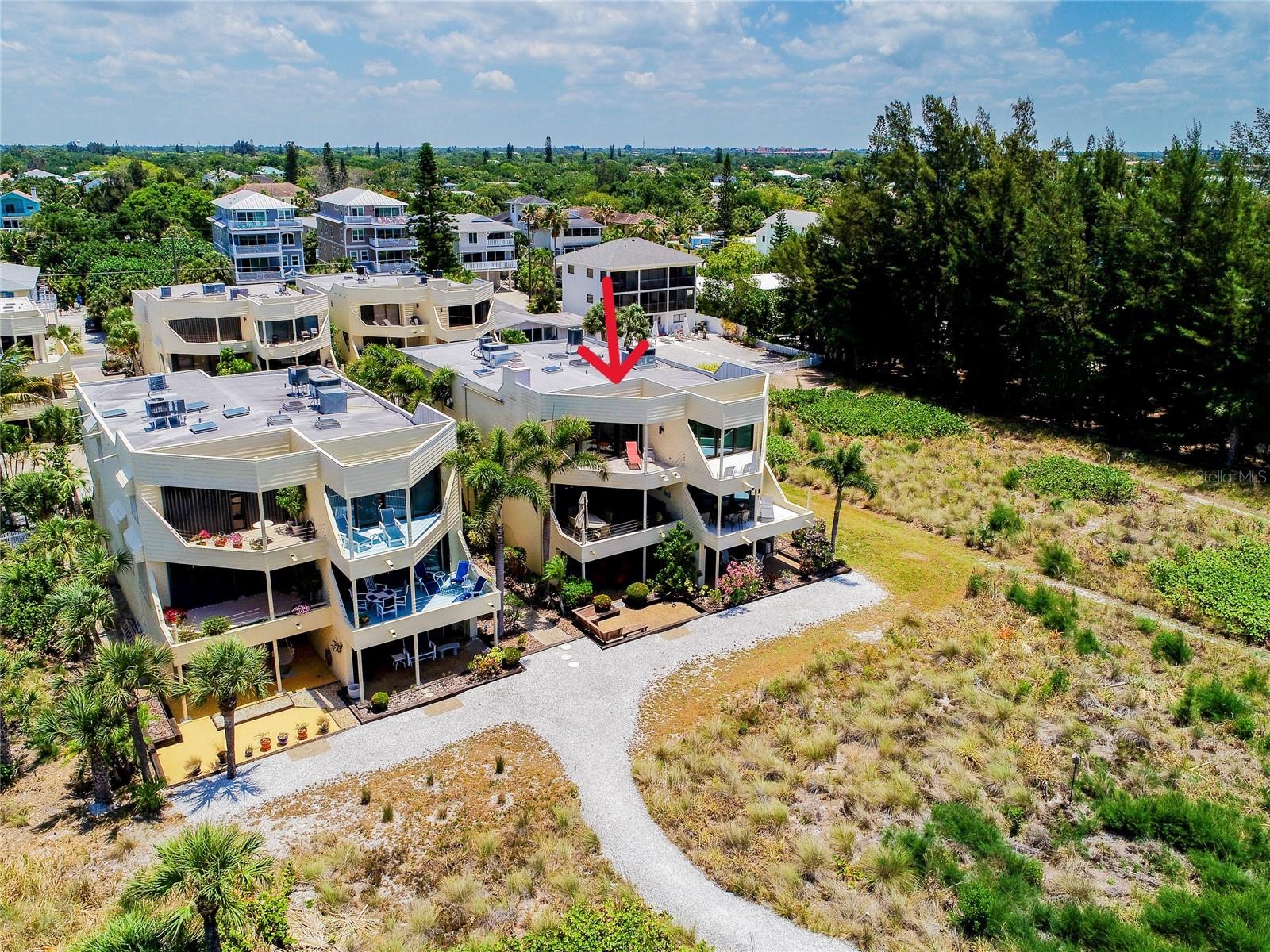 Dream Location! Stunning unobstructed views of the Gulf of Mexico and Siesta Beach from all three floors! Soak up the beach vibe all day long till amazing sunsets from this rarely available, end-unit 3 stories townhouse condominium. Only 9 units in this exclusive community of Tiffany Sands, ideally located on Siesta Beach and so close to Siesta Village that you won’t need a car. This 3-level townhome feels like a single-family home, offering 1 car garage, 2 balconies (third and second floor) and one porch on the ground floor. The main level features an island kitchen open to the airy dining and living room and half bath. Upstairs, the large Gulf-front master bedroom suite offers gorgeous Gulf and beach views, a private balcony and a fabulous ensuite master bath featuring a soaking tub, shower, bidet and double vanity. Guest bedroom, guest bath and washer and dryer closet are located on the same floor. The guest bedroom is divided into 2, creating 2 separate bedrooms (17x7 and 17x12), each with its own closet and entry door. The first floor legally, non-conforming bedroom (not furnished as a bedroom now) offers sliders to a porch with outdoor kitchen and full bathroom. 2-zone HVAC units, low-maintenance Hardie board siding. List of updates includes hurricane proof windows and sliders in 2016, reconstructed 3rd floor balcony with new main beam in 2017, double coat roof and skylights in 2017, main A/C in 2017, new outside staircase in 2018, Water Heater in 2019, top floor A/C unit in December 2022. Under Termite Warranty and with Hurricane shutters on each floor (third floor shutters are motorized, installed in 2017). Sold Turn-key furnished! Come to enjoy the Island lifestyle!
