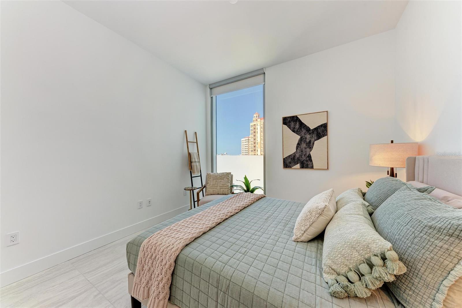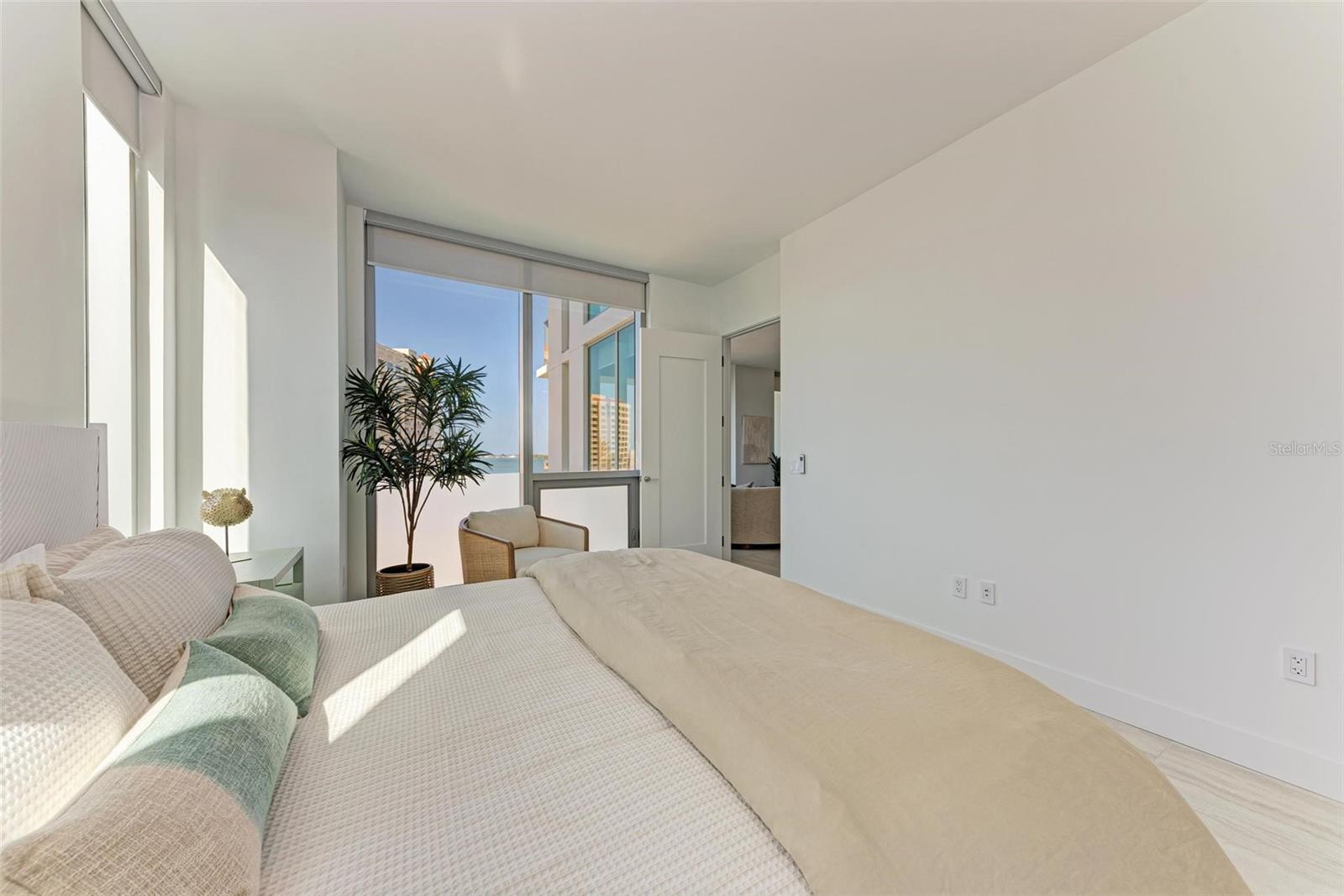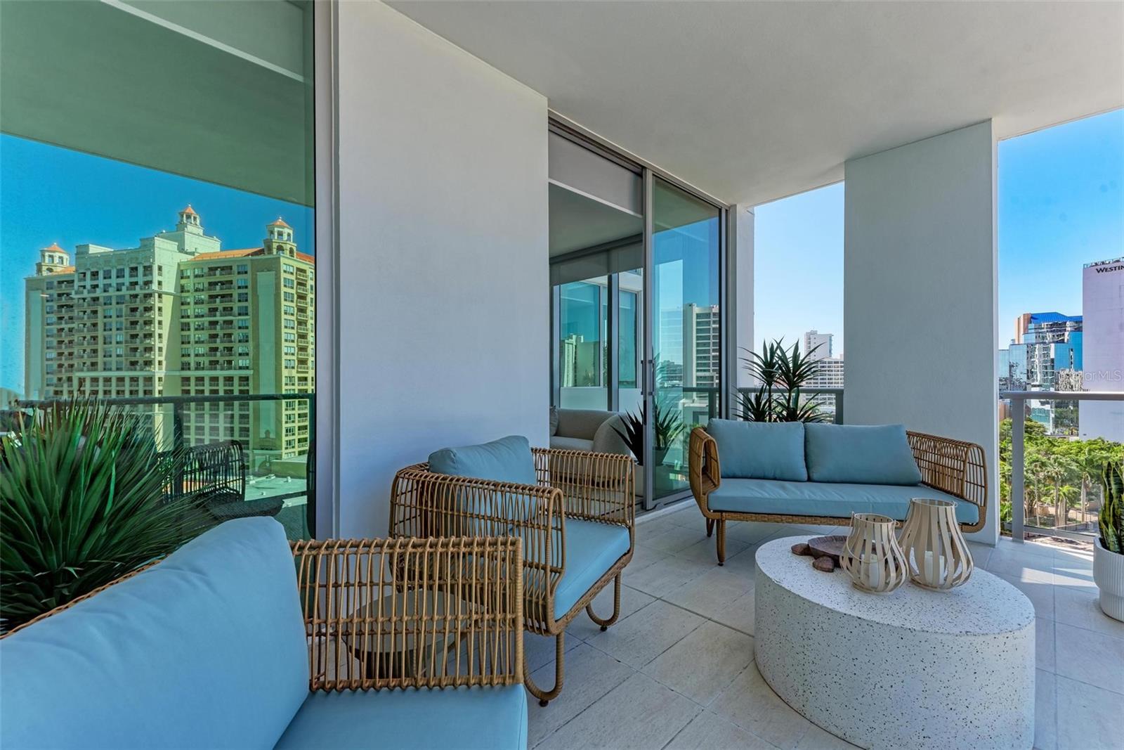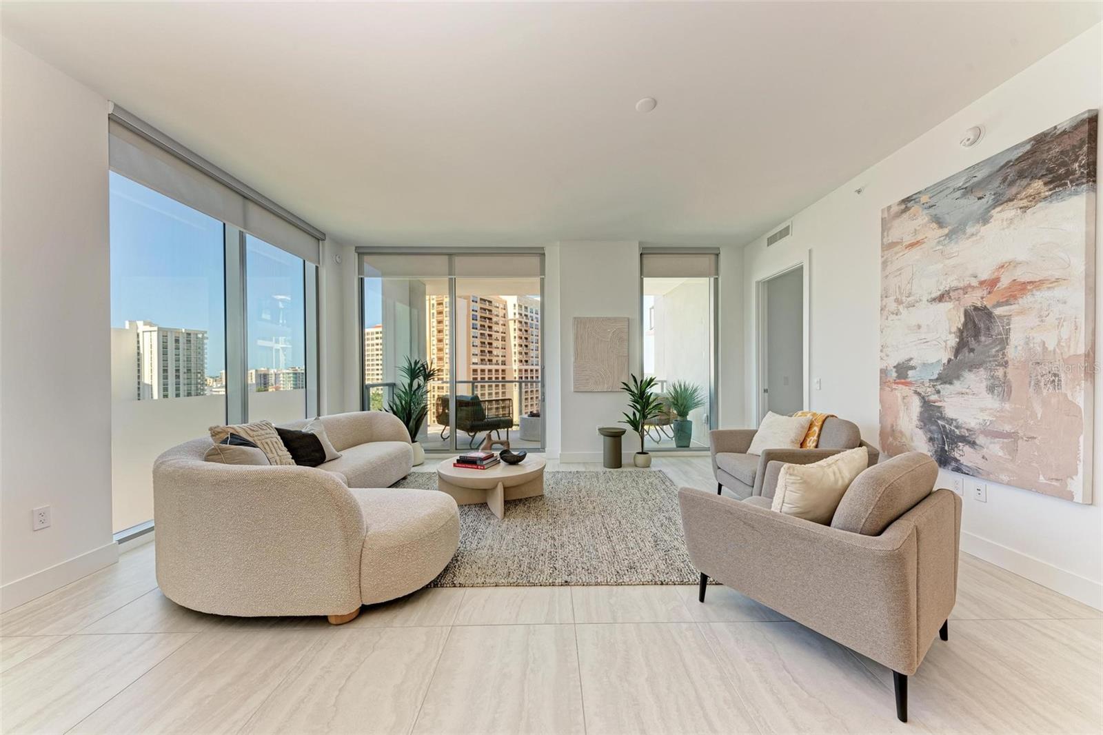 PRICE IMPROVEMENT! Welcome home to this newly furnished and beautifully appointed condominium in the highly sought after K floorplan in the BAYSO! Recently enhanced with sleek, remote operated blinds throughout, as well as a custom kitchen and laundry room backsplash, this unit is being sold turnkey, if desired. BAYSO is Sarasota’s newest downtown crown jewel in luxury condominium living. Nestled within the newly designed Quay, residents will enjoy the convenience of living close to all of the culinary and cultural delights that downtown Sarasota has come to be known for. Located on the 8th floor, this condominium boasts one of the few western facing waterfront views in this unique and spacious 2,185 square foot split plan design. Immerse yourself in this beautiful residence surrounded by impact rated floor to ceiling windows and sliding glass doors with a European inspired contemporary kitchen with Italkraft cabinetry, quartz countertops and an upgraded JennAir stainless steel appliance package. The spacious owners’ suite contains two walk- in closets with a luxurious spa like ensuite with double vanities, soaker tub and separate oversized shower. The second bedroom also provides its own privacy with a full bathroom and walk-in closet. The bonus den offers flexibility for more guest space or a home office with an adjacent third full bathroom for your guests. The BAYSO features an abundance of amenities as you enter the inviting 1st floor lobby with 24/7 attendants, onsite property management, a beautiful club lounge with a catering kitchen for events, a state-of-the-art fitness center and movement studio for personal training or group classes and a private conference room including several common glass enclosed workstations for residents' private use. The 5th level highlights include the elevated resort style pool and spa, a community recreation area with a pergola-covered grilling station and a dog park for any pet owners to enjoy while being surrounded by picturesque views. Ensuring convenience, the property also includes two (2) highly sought after parking spaces, extra owner humidity-controlled storage on the first level as well as a separate bicycle storage area. Enjoy walks next door at The Bay Sarasota, on one of the many walking paths along the 53 acre waterfront park for a short stroll, take in some live music or simply bask in the beauty of the Sarasota sunsets. Discover BAYSO today and experience urban luxury living at its finest.