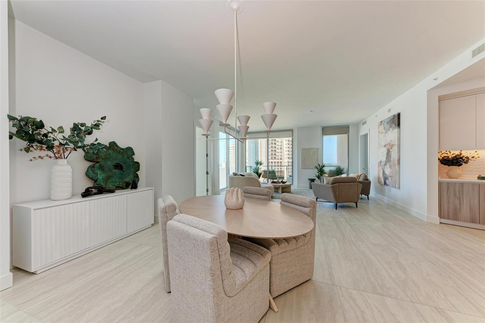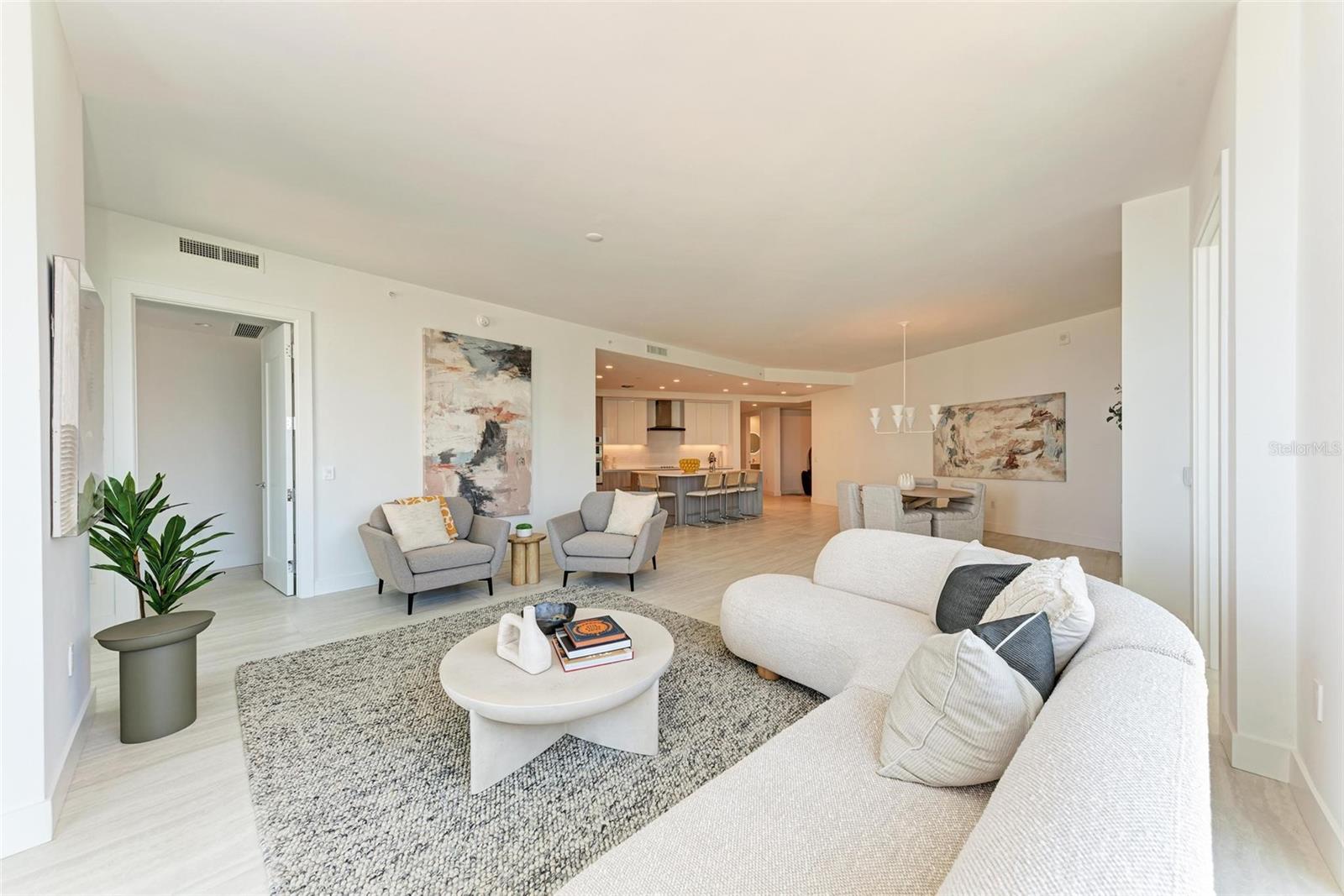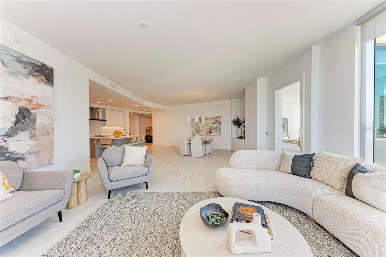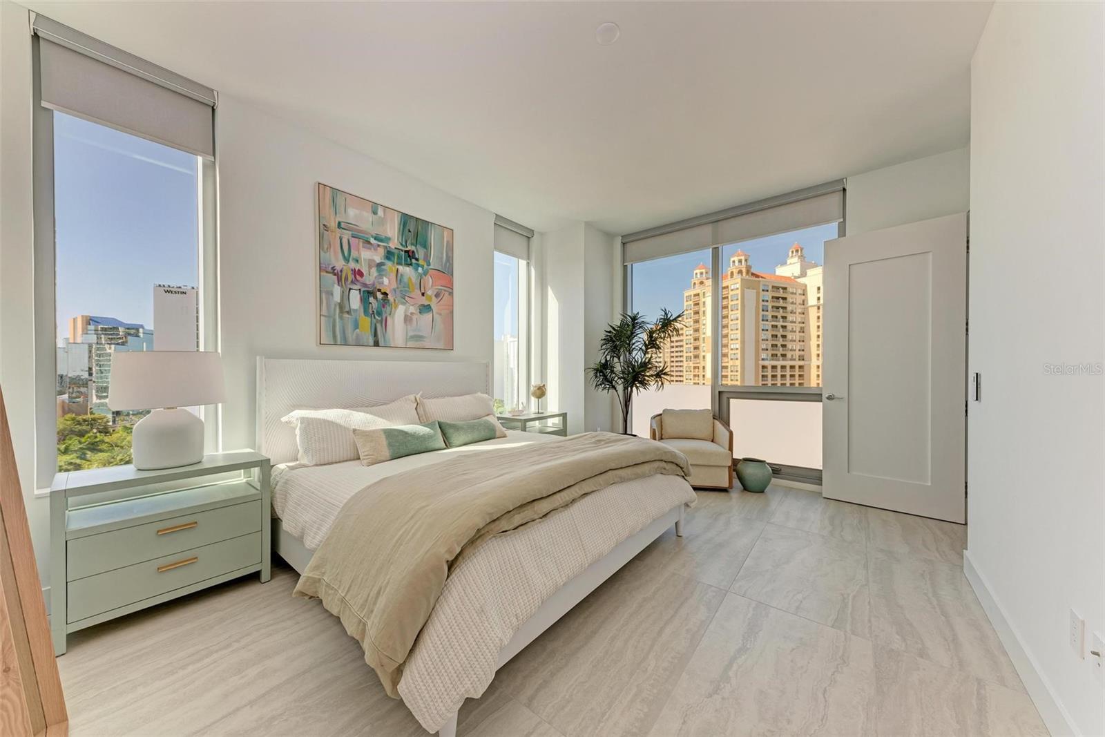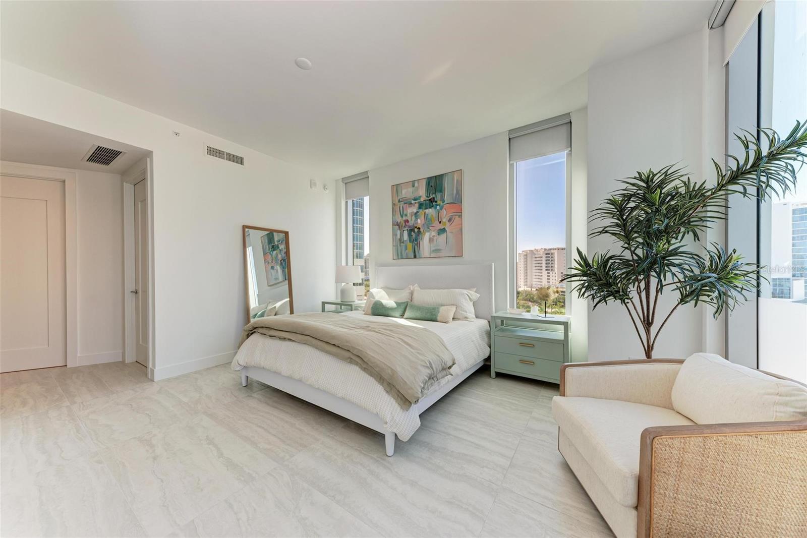 PRICE IMPROVEMENT! Welcome home to this newly furnished and beautifully appointed condominium in the highly sought after K floorplan in the BAYSO! Recently enhanced with sleek, remote operated blinds throughout, as well as a custom kitchen and laundry room backsplash, this unit is being sold turnkey, if desired. BAYSO is Sarasota’s newest downtown crown jewel in luxury condominium living. Nestled within the newly designed Quay, residents will enjoy the convenience of living close to all of the culinary and cultural delights that downtown Sarasota has come to be known for. Located on the 8th floor, this condominium boasts one of the few western facing waterfront views in this unique and spacious 2,185 square foot split plan design. Immerse yourself in this beautiful residence surrounded by impact rated floor to ceiling windows and sliding glass doors with a European inspired contemporary kitchen with Italkraft cabinetry, quartz countertops and an upgraded JennAir stainless steel appliance package. The spacious owners’ suite contains two walk- in closets with a luxurious spa like ensuite with double vanities, soaker tub and separate oversized shower. The second bedroom also provides its own privacy with a full bathroom and walk-in closet. The bonus den offers flexibility for more guest space or a home office with an adjacent third full bathroom for your guests. The BAYSO features an abundance of amenities as you enter the inviting 1st floor lobby with 24/7 attendants, onsite property management, a beautiful club lounge with a catering kitchen for events, a state-of-the-art fitness center and movement studio for personal training or group classes and a private conference room including several common glass enclosed workstations for residents' private use. The 5th level highlights include the elevated resort style pool and spa, a community recreation area with a pergola-covered grilling station and a dog park for any pet owners to enjoy while being surrounded by picturesque views. Ensuring convenience, the property also includes two (2) highly sought after parking spaces, extra owner humidity-controlled storage on the first level as well as a separate bicycle storage area. Enjoy walks next door at The Bay Sarasota, on one of the many walking paths along the 53 acre waterfront park for a short stroll, take in some live music or simply bask in the beauty of the Sarasota sunsets. Discover BAYSO today and experience urban luxury living at its finest.