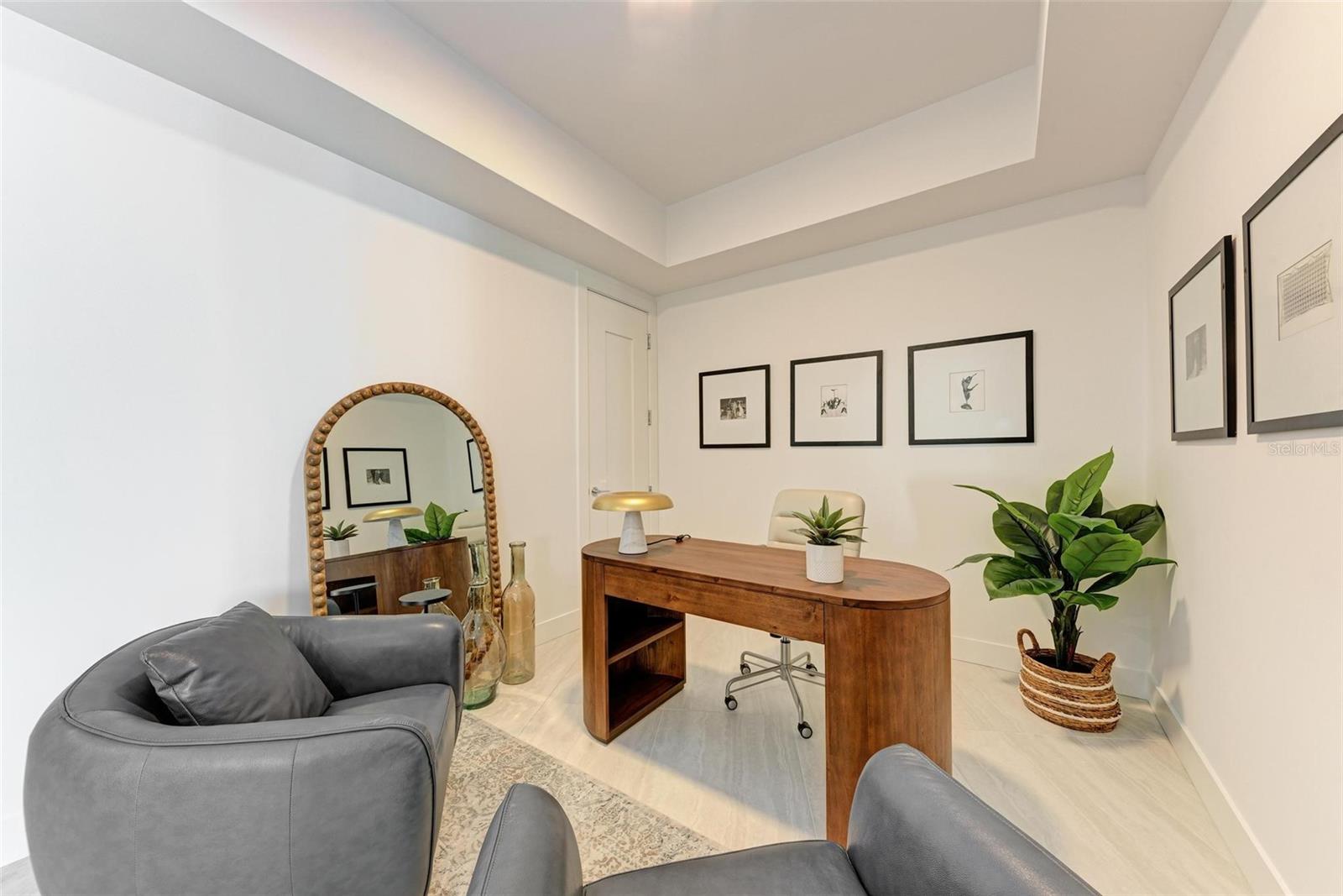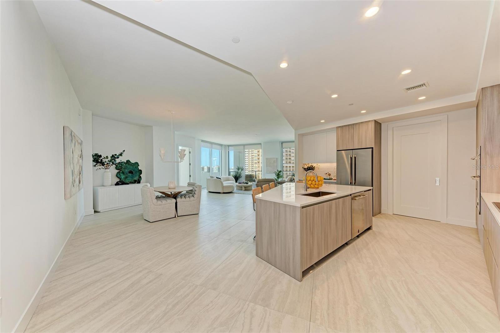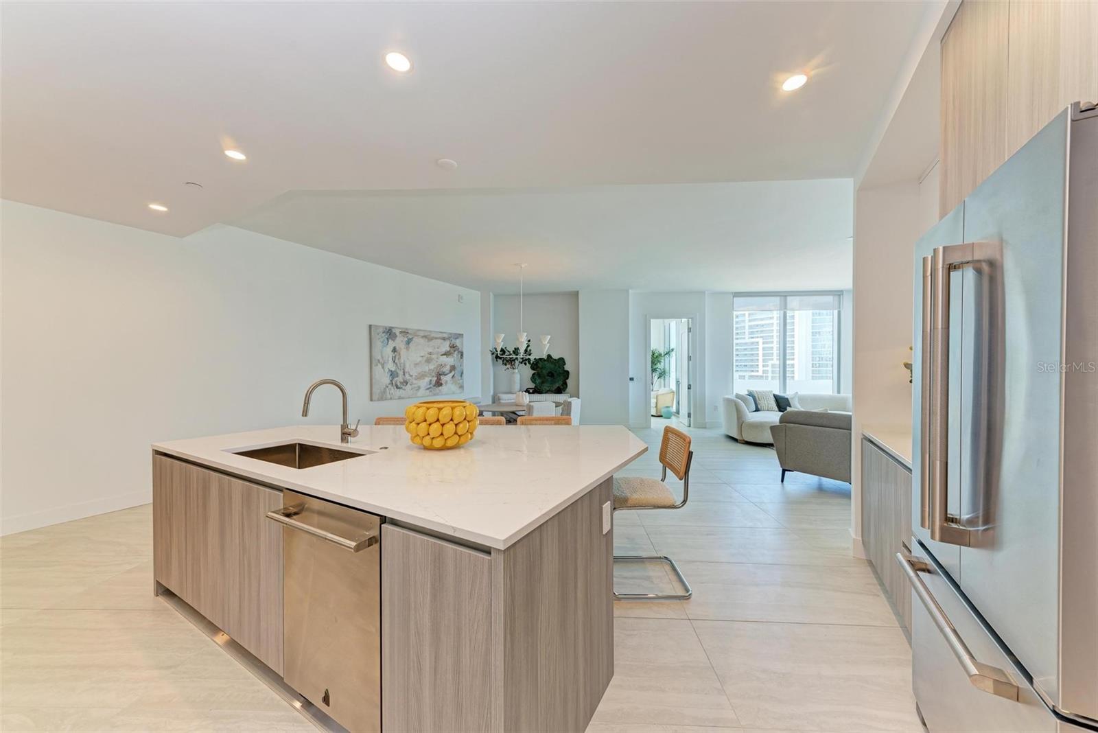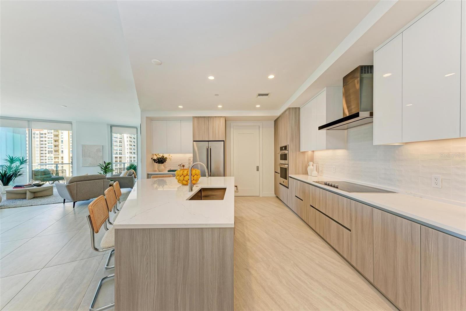 PRICE IMPROVEMENT! Welcome home to this newly furnished and beautifully appointed condominium in the highly sought after K floorplan in the BAYSO! Recently enhanced with sleek, remote operated blinds throughout, as well as a custom kitchen and laundry room backsplash, this unit is being sold turnkey, if desired. BAYSO is Sarasota’s newest downtown crown jewel in luxury condominium living. Nestled within the newly designed Quay, residents will enjoy the convenience of living close to all of the culinary and cultural delights that downtown Sarasota has come to be known for. Located on the 8th floor, this condominium boasts one of the few western facing waterfront views in this unique and spacious 2,185 square foot split plan design. Immerse yourself in this beautiful residence surrounded by impact rated floor to ceiling windows and sliding glass doors with a European inspired contemporary kitchen with Italkraft cabinetry, quartz countertops and an upgraded JennAir stainless steel appliance package. The spacious owners’ suite contains two walk- in closets with a luxurious spa like ensuite with double vanities, soaker tub and separate oversized shower. The second bedroom also provides its own privacy with a full bathroom and walk-in closet. The bonus den offers flexibility for more guest space or a home office with an adjacent third full bathroom for your guests. The BAYSO features an abundance of amenities as you enter the inviting 1st floor lobby with 24/7 attendants, onsite property management, a beautiful club lounge with a catering kitchen for events, a state-of-the-art fitness center and movement studio for personal training or group classes and a private conference room including several common glass enclosed workstations for residents' private use. The 5th level highlights include the elevated resort style pool and spa, a community recreation area with a pergola-covered grilling station and a dog park for any pet owners to enjoy while being surrounded by picturesque views. Ensuring convenience, the property also includes two (2) highly sought after parking spaces, extra owner humidity-controlled storage on the first level as well as a separate bicycle storage area. Enjoy walks next door at The Bay Sarasota, on one of the many walking paths along the 53 acre waterfront park for a short stroll, take in some live music or simply bask in the beauty of the Sarasota sunsets. Discover BAYSO today and experience urban luxury living at its finest.