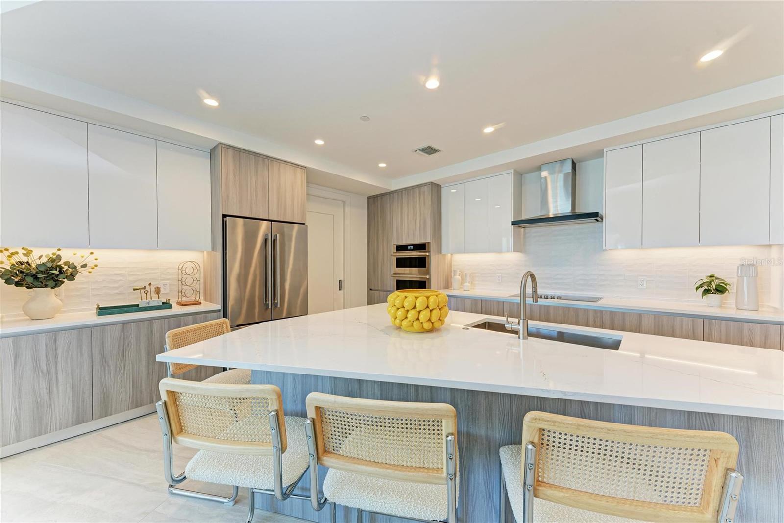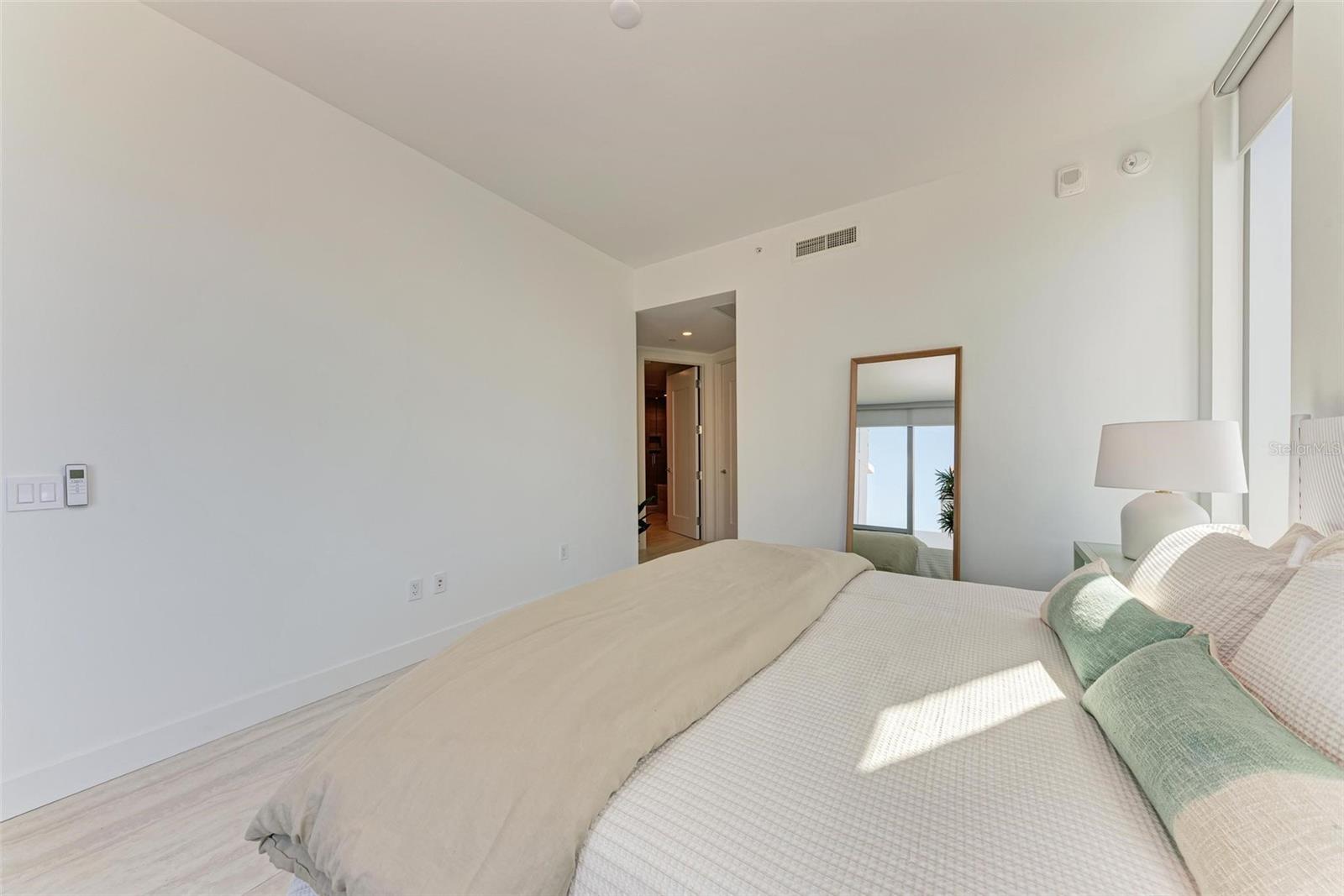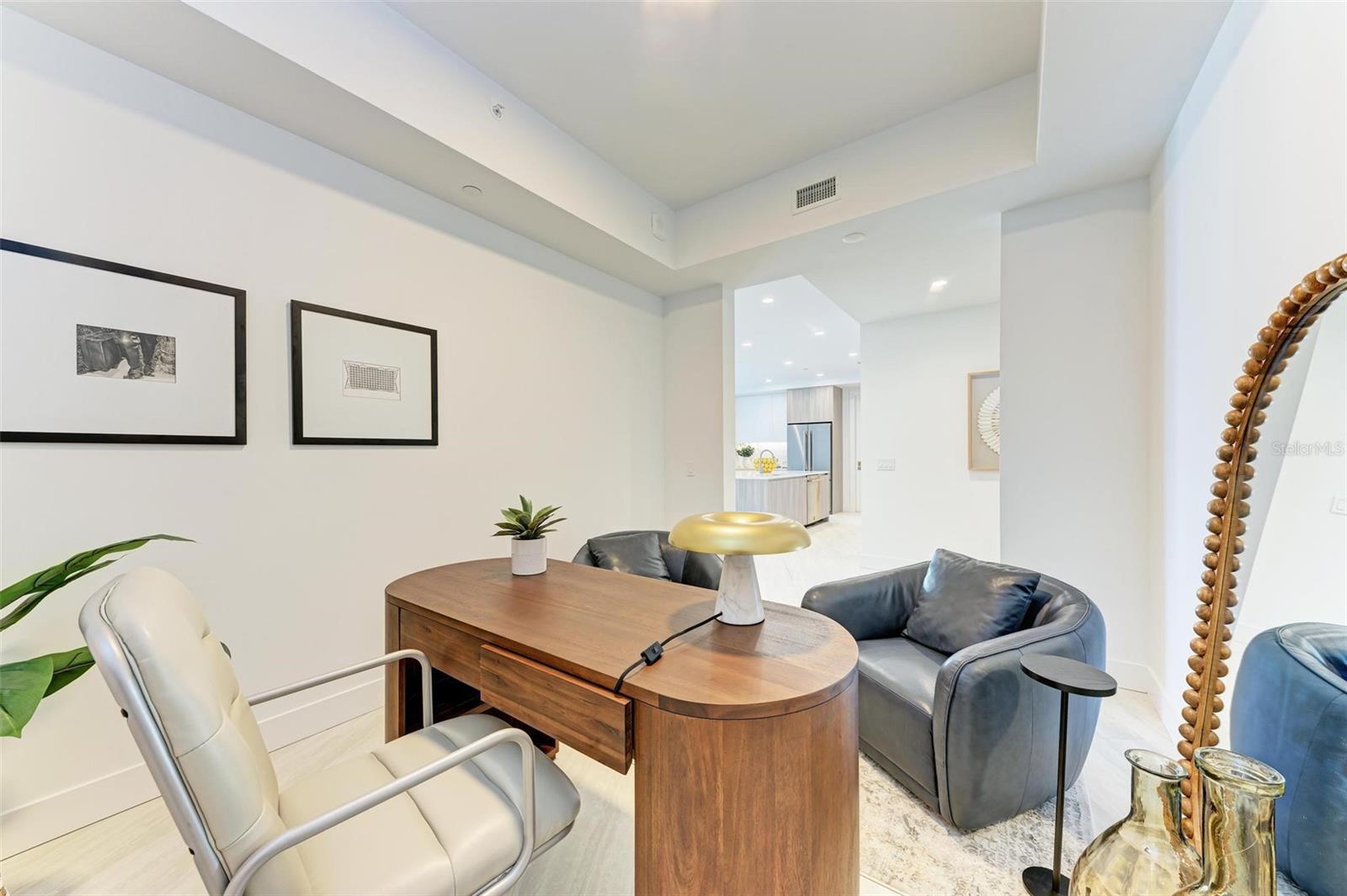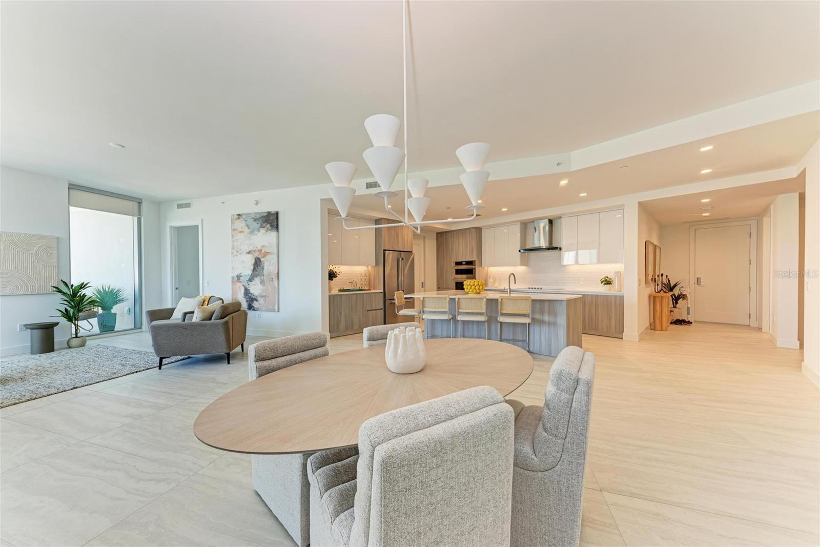 PRICE IMPROVEMENT! Welcome home to this newly furnished and beautifully appointed condominium in the highly sought after K floorplan in the BAYSO! Recently enhanced with sleek, remote operated blinds throughout, as well as a custom kitchen and laundry room backsplash, this unit is being sold turnkey, if desired. BAYSO is Sarasota’s newest downtown crown jewel in luxury condominium living. Nestled within the newly designed Quay, residents will enjoy the convenience of living close to all of the culinary and cultural delights that downtown Sarasota has come to be known for. Located on the 8th floor, this condominium boasts one of the few western facing waterfront views in this unique and spacious 2,185 square foot split plan design. Immerse yourself in this beautiful residence surrounded by impact rated floor to ceiling windows and sliding glass doors with a European inspired contemporary kitchen with Italkraft cabinetry, quartz countertops and an upgraded JennAir stainless steel appliance package. The spacious owners’ suite contains two walk- in closets with a luxurious spa like ensuite with double vanities, soaker tub and separate oversized shower. The second bedroom also provides its own privacy with a full bathroom and walk-in closet. The bonus den offers flexibility for more guest space or a home office with an adjacent third full bathroom for your guests. The BAYSO features an abundance of amenities as you enter the inviting 1st floor lobby with 24/7 attendants, onsite property management, a beautiful club lounge with a catering kitchen for events, a state-of-the-art fitness center and movement studio for personal training or group classes and a private conference room including several common glass enclosed workstations for residents' private use. The 5th level highlights include the elevated resort style pool and spa, a community recreation area with a pergola-covered grilling station and a dog park for any pet owners to enjoy while being surrounded by picturesque views. Ensuring convenience, the property also includes two (2) highly sought after parking spaces, extra owner humidity-controlled storage on the first level as well as a separate bicycle storage area. Enjoy walks next door at The Bay Sarasota, on one of the many walking paths along the 53 acre waterfront park for a short stroll, take in some live music or simply bask in the beauty of the Sarasota sunsets. Discover BAYSO today and experience urban luxury living at its finest.