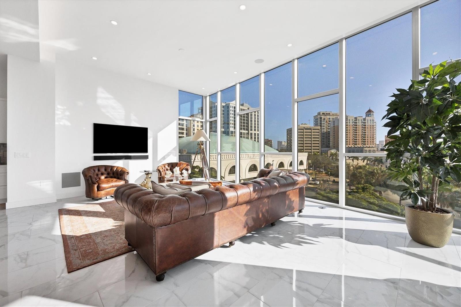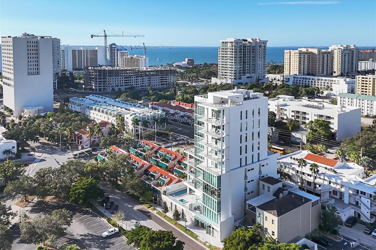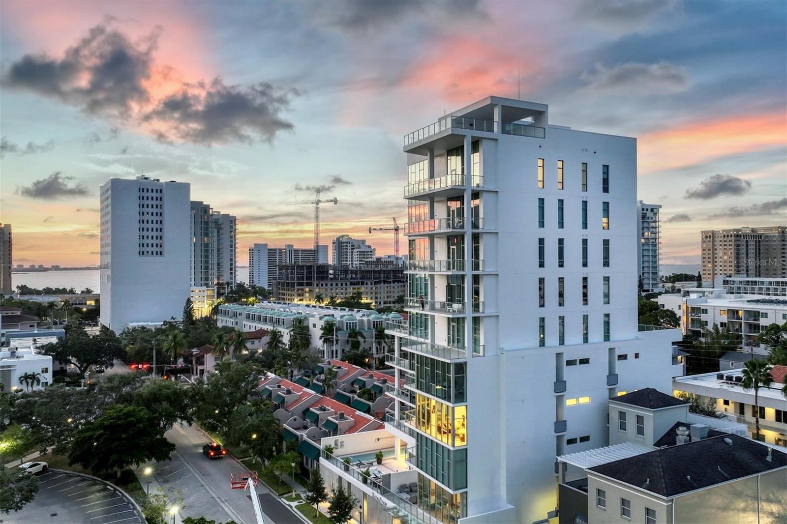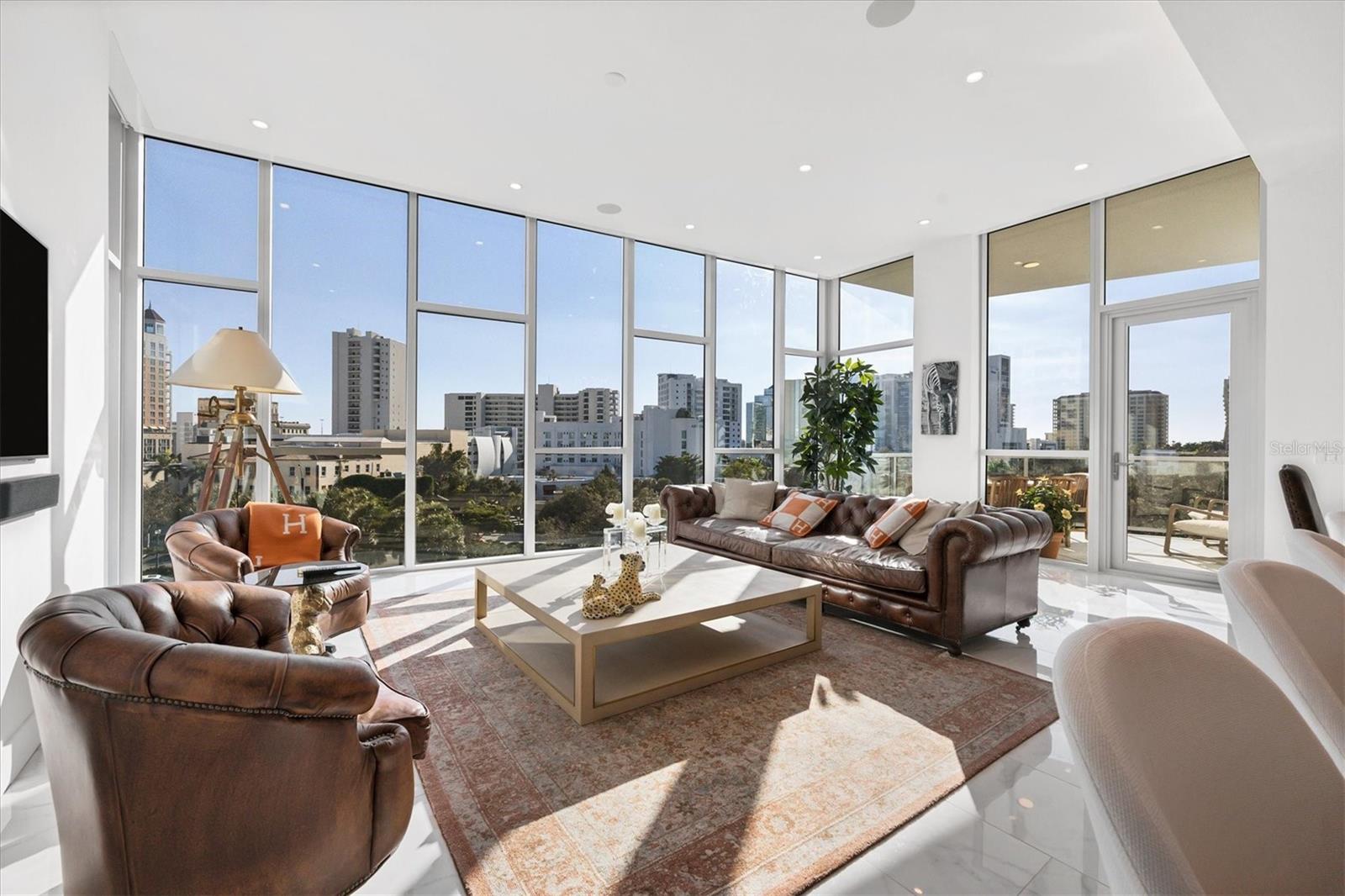 Absolutely exquisite condominium at The Collection Residences in Downtown Sarasota is now available! Perfectly appointed and finished with the most updated styles, this picture-perfect blend of modern luxury and convenience is in a prime location of Sarasota. Situated in the heart of The Art District in Downtown Sarasota, this beautifully finished home provides easy access to various cultural, dining and entertainment options, including restaurants, libraries, theaters, the marina and world-famous white sand beaches. Boasting 2550 square feet of living space, the residence has over 12-foot airy ceilings and floor-to-ceiling windows featuring remote controlled shades. The condo offers breathtaking city and sunset views with two private balconies and terrace for relaxation and enjoyment. Private elevator entrance is included for convenience, exclusivity and security. Modern and contemporary kitchen design is integrated into the open great room, perfect for entertainment and comfort. An entertainer's dream, the kitchen and great room boast light and bright cabinetry, quartz countertops, and built-in stainless-steel Miele appliances. Within the kitchen are a Miele GAS range, a coffee maker connected to the water line and a gorgeous island providing plenty of room for dining and cooking. The dining room has a fantastic bar with wine fridge to make your favorite night cap. The primary suite boasts a massive walk in closet and spacious primary bath. Both secondary bedrooms offer en suite bathrooms for the most comfort and convenience. Each bath has floating, lighted vanities and floor to ceiling marble tiling. The entire home has beautiful, enlarged tile throughout! Enjoy the magic of the city on your terrace while listening to music from the built in Sonos system which operates in every room throughout the house! Or take an evening stroll to one of the endless number of restaurants, the Selby Library, Whole Foods, the Ringling Bridge, the Sarasota Opera, the Marina, the Florida Studio Theatre, and more. The location of this home is truly incomparable. The Collection Condominium offers a wide array of luxurious amenities, including lap pool and hot tub for relaxation, a spacious deck with day beds, cabanas, and lounge chairs for outdoor enjoyment. A fire pit with designer furnishings, barbeque grill and custom amenities all create a functional and cozy atmosphere for outdoor entertaining. It also has a professionally designed fitness and yoga facility, sauna, boardroom, and restrooms. The Social Lounge area is directly connected to the outdoor amenity deck for social gatherings. The building offers secure, underground parking with two designated spaces, and a temperature-controlled storage unit for residents' convenience. The Collection Residences offer a rare combination of boutique luxury (only 12 residences), a serene environment in a quiet neighborhood, and access to an abundance of nearby amenities. It's an ideal opportunity for those seeking an urban yet luxurious lifestyle in Sarasota.