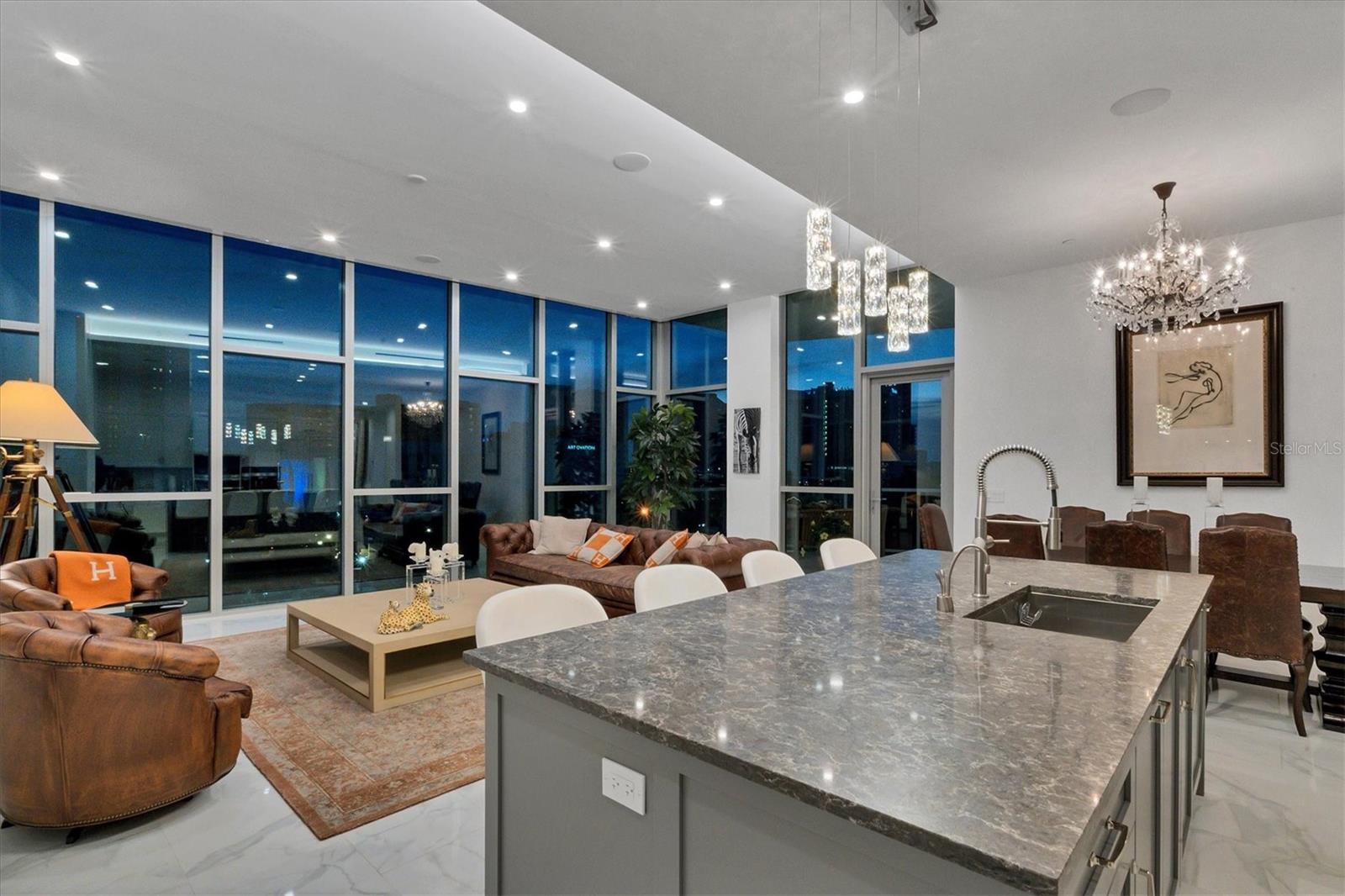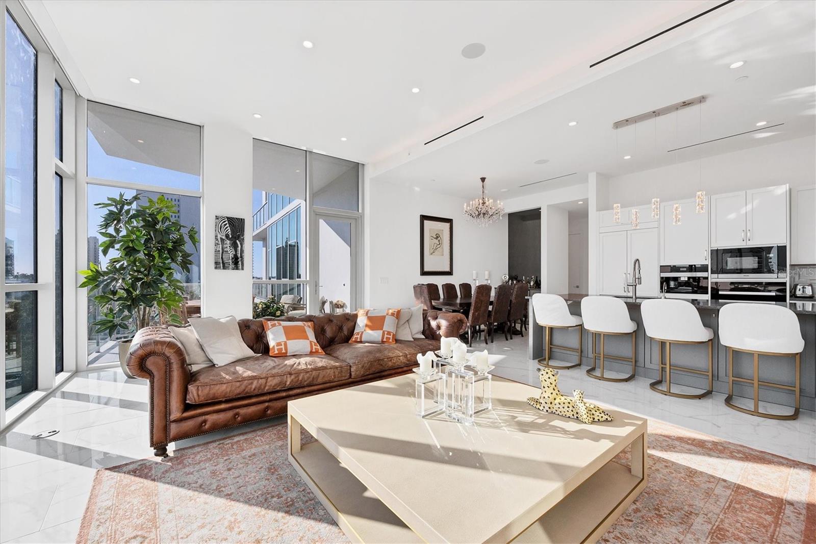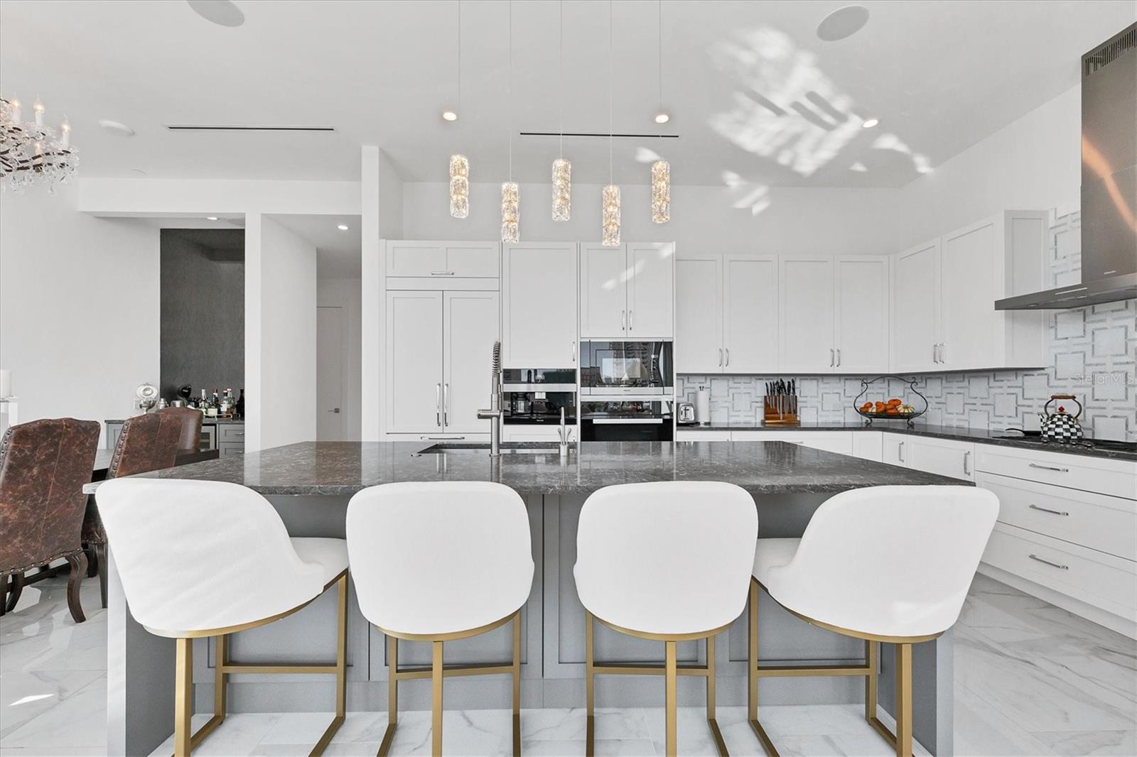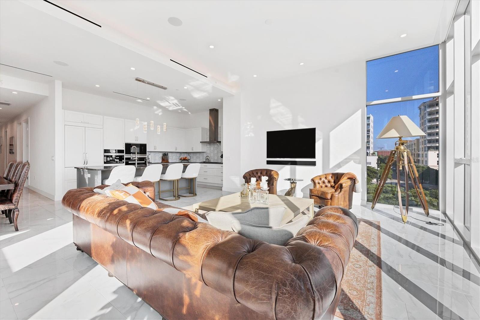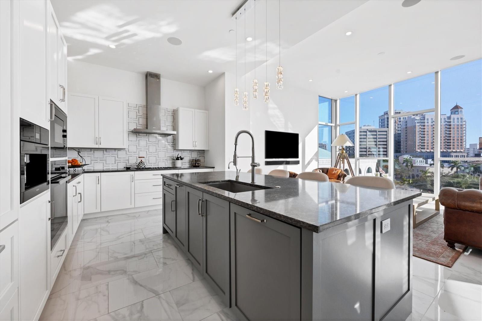 Absolutely exquisite condominium at The Collection Residences in Downtown Sarasota is now available! Perfectly appointed and finished with the most updated styles, this picture-perfect blend of modern luxury and convenience is in a prime location of Sarasota. Situated in the heart of The Art District in Downtown Sarasota, this beautifully finished home provides easy access to various cultural, dining and entertainment options, including restaurants, libraries, theaters, the marina and world-famous white sand beaches. Boasting 2550 square feet of living space, the residence has over 12-foot airy ceilings and floor-to-ceiling windows featuring remote controlled shades. The condo offers breathtaking city and sunset views with two private balconies and terrace for relaxation and enjoyment. Private elevator entrance is included for convenience, exclusivity and security. Modern and contemporary kitchen design is integrated into the open great room, perfect for entertainment and comfort. An entertainer's dream, the kitchen and great room boast light and bright cabinetry, quartz countertops, and built-in stainless-steel Miele appliances. Within the kitchen are a Miele GAS range, a coffee maker connected to the water line and a gorgeous island providing plenty of room for dining and cooking. The dining room has a fantastic bar with wine fridge to make your favorite night cap. The primary suite boasts a massive walk in closet and spacious primary bath. Both secondary bedrooms offer en suite bathrooms for the most comfort and convenience. Each bath has floating, lighted vanities and floor to ceiling marble tiling. The entire home has beautiful, enlarged tile throughout! Enjoy the magic of the city on your terrace while listening to music from the built in Sonos system which operates in every room throughout the house! Or take an evening stroll to one of the endless number of restaurants, the Selby Library, Whole Foods, the Ringling Bridge, the Sarasota Opera, the Marina, the Florida Studio Theatre, and more. The location of this home is truly incomparable. The Collection Condominium offers a wide array of luxurious amenities, including lap pool and hot tub for relaxation, a spacious deck with day beds, cabanas, and lounge chairs for outdoor enjoyment. A fire pit with designer furnishings, barbeque grill and custom amenities all create a functional and cozy atmosphere for outdoor entertaining. It also has a professionally designed fitness and yoga facility, sauna, boardroom, and restrooms. The Social Lounge area is directly connected to the outdoor amenity deck for social gatherings. The building offers secure, underground parking with two designated spaces, and a temperature-controlled storage unit for residents' convenience. The Collection Residences offer a rare combination of boutique luxury (only 12 residences), a serene environment in a quiet neighborhood, and access to an abundance of nearby amenities. It's an ideal opportunity for those seeking an urban yet luxurious lifestyle in Sarasota.