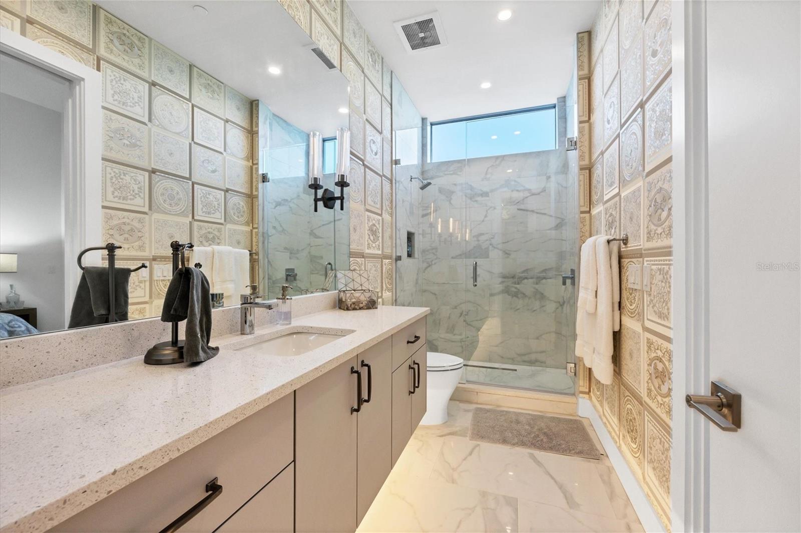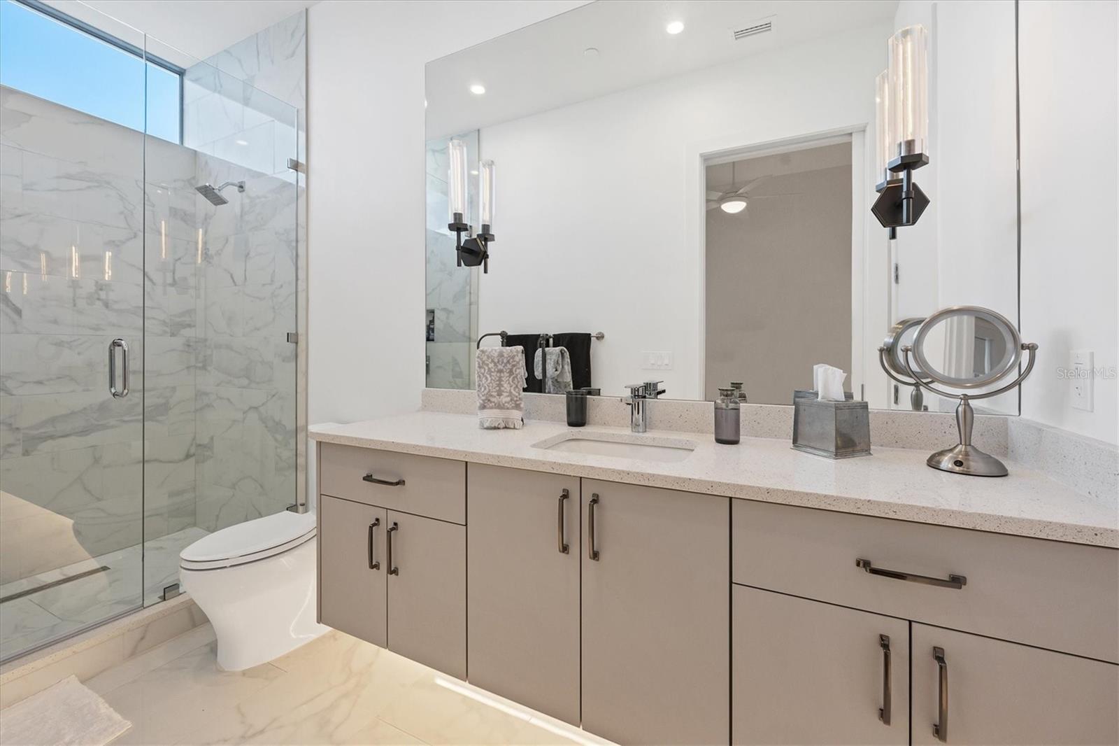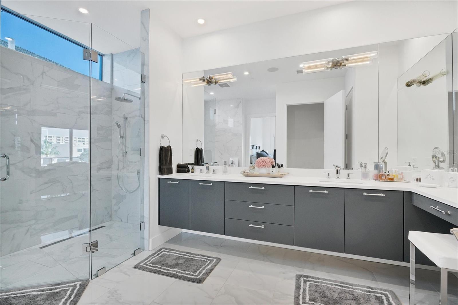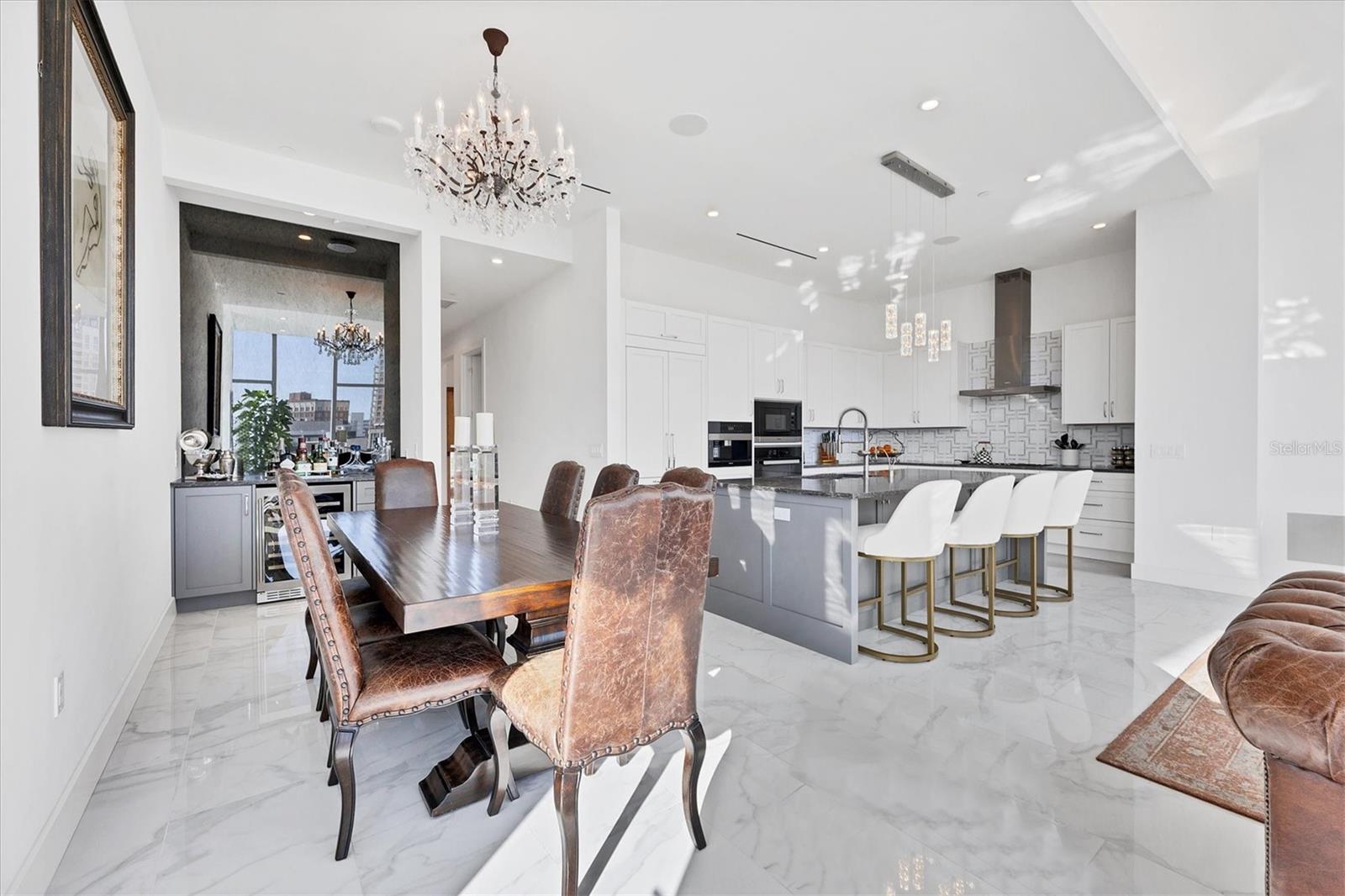 Absolutely exquisite condominium at The Collection Residences in Downtown Sarasota is now available! Perfectly appointed and finished with the most updated styles, this picture-perfect blend of modern luxury and convenience is in a prime location of Sarasota. Situated in the heart of The Art District in Downtown Sarasota, this beautifully finished home provides easy access to various cultural, dining and entertainment options, including restaurants, libraries, theaters, the marina and world-famous white sand beaches. Boasting 2550 square feet of living space, the residence has over 12-foot airy ceilings and floor-to-ceiling windows featuring remote controlled shades. The condo offers breathtaking city and sunset views with two private balconies and terrace for relaxation and enjoyment. Private elevator entrance is included for convenience, exclusivity and security. Modern and contemporary kitchen design is integrated into the open great room, perfect for entertainment and comfort. An entertainer's dream, the kitchen and great room boast light and bright cabinetry, quartz countertops, and built-in stainless-steel Miele appliances. Within the kitchen are a Miele GAS range, a coffee maker connected to the water line and a gorgeous island providing plenty of room for dining and cooking. The dining room has a fantastic bar with wine fridge to make your favorite night cap. The primary suite boasts a massive walk in closet and spacious primary bath. Both secondary bedrooms offer en suite bathrooms for the most comfort and convenience. Each bath has floating, lighted vanities and floor to ceiling marble tiling. The entire home has beautiful, enlarged tile throughout! Enjoy the magic of the city on your terrace while listening to music from the built in Sonos system which operates in every room throughout the house! Or take an evening stroll to one of the endless number of restaurants, the Selby Library, Whole Foods, the Ringling Bridge, the Sarasota Opera, the Marina, the Florida Studio Theatre, and more. The location of this home is truly incomparable. The Collection Condominium offers a wide array of luxurious amenities, including lap pool and hot tub for relaxation, a spacious deck with day beds, cabanas, and lounge chairs for outdoor enjoyment. A fire pit with designer furnishings, barbeque grill and custom amenities all create a functional and cozy atmosphere for outdoor entertaining. It also has a professionally designed fitness and yoga facility, sauna, boardroom, and restrooms. The Social Lounge area is directly connected to the outdoor amenity deck for social gatherings. The building offers secure, underground parking with two designated spaces, and a temperature-controlled storage unit for residents' convenience. The Collection Residences offer a rare combination of boutique luxury (only 12 residences), a serene environment in a quiet neighborhood, and access to an abundance of nearby amenities. It's an ideal opportunity for those seeking an urban yet luxurious lifestyle in Sarasota.