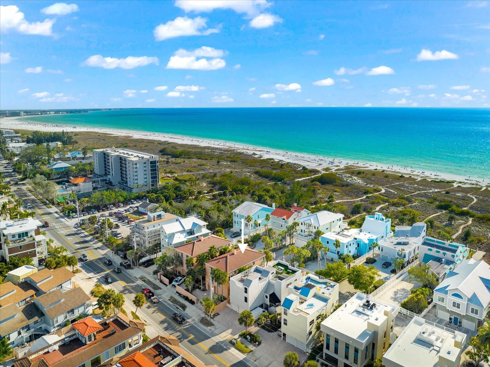 Welcome to this enchanting Spanish-style villa, a serene sanctuary nestled gulf-side on Siesta Key Beach. This exquisite three-bedroom, two-bathroom home offers a unique blend of luxury, comfort, and unparalleled access to the beach, with no roads to cross on your way to the soft, white sands and tranquil Gulf waters. This home boasts recent updates that include an updated roof and a new air conditioning system, ensuring modern comfort and peace of mind. Perfectly situated on a quiet, private lane that doubles as a dead-end street just off Beach Road, this villa balances the tranquility of a secluded retreat with the convenience of Siesta Key Village's vibrant atmosphere. As you enter through the private gate, you're welcomed into a world of Mediterranean elegance harmoniously intertwined with modern sophistication. The villa features a host of stylish amenities, including a convenient elevator connecting the various levels, making every part of this home accessible and inviting. The interior is a true masterpiece of design, adorned with glazed Spanish tile flooring, elegant curved archways, and timeless tile accents in the bathrooms. Each room, bathed in natural light, exudes an ambiance of warm, inviting elegance. Adding to the allure are the stunning partial Gulf views from the bedroom, providing a tranquil backdrop to your personal sanctuary. The villa's thoughtfully designed layout is highlighted by an open-air terrace off the dining room, ideal for savoring the gentle Florida breezes and enchanting evenings. The side garden entry enhances the villa's charm, inviting you into a space where luxury and comfort converge. Parking convenience is assured with a spacious garage that accommodates tandem parking for 2-4 cars, complementing the villa's array of desirable features. This villa is not just a home; it's a lifestyle choice, free from high HOA fees ( just 125.00 per month) and offering the flexibility to be cherished as a private residence or a highly desirable rental. Its Gulf-side location with private beach access and partial Gulf views from the bedroom make it a coveted property, perfect for those seeking an exceptional coastal living experience. Don't miss the opportunity to own this Mediterranean-inspired piece of paradise on Siesta Key. This villa promises more than just a residence; it's a commitment to a lifestyle of elegance, tranquility, and unmatched beachside bliss. Experience the epitome of refined, beachside living in this magnificent Siesta Key villa. *Forecasted Rental Pro Forma is available. If managed by Beachside Management, pool access is also available. Please see floor plans, video, virtual walk thru, and more at https://nextlevelmediasrq.hd.pics/221-Tenacity-Ln/idx