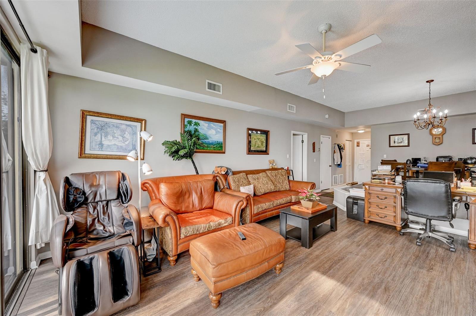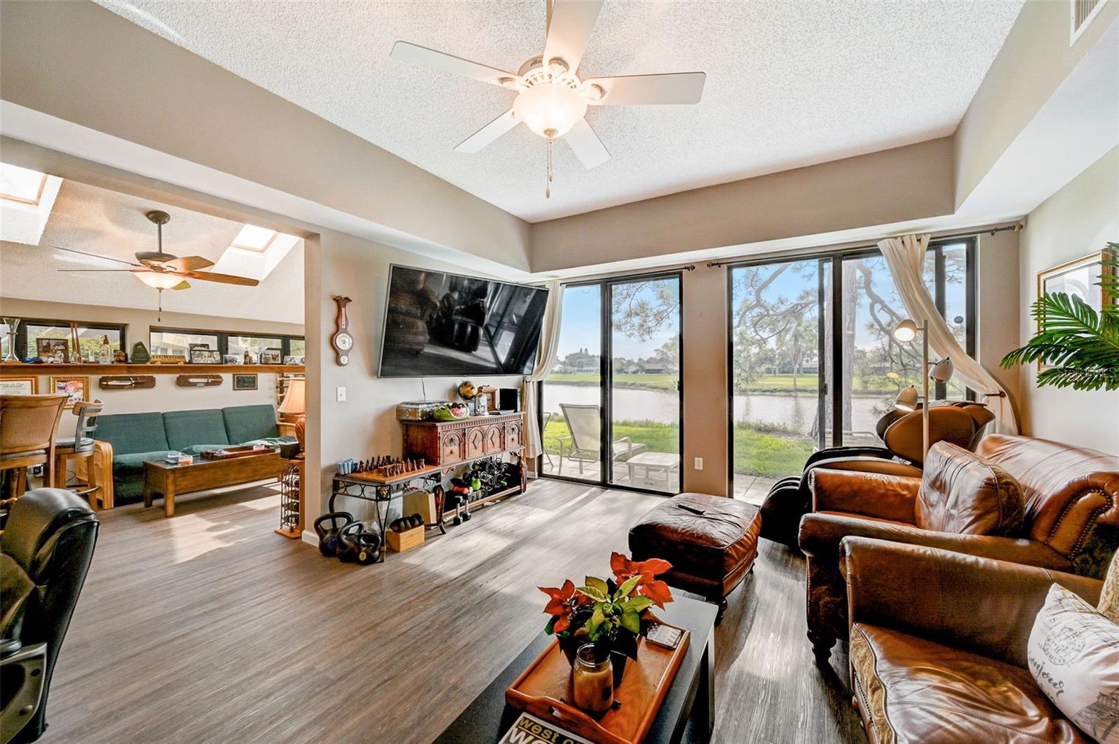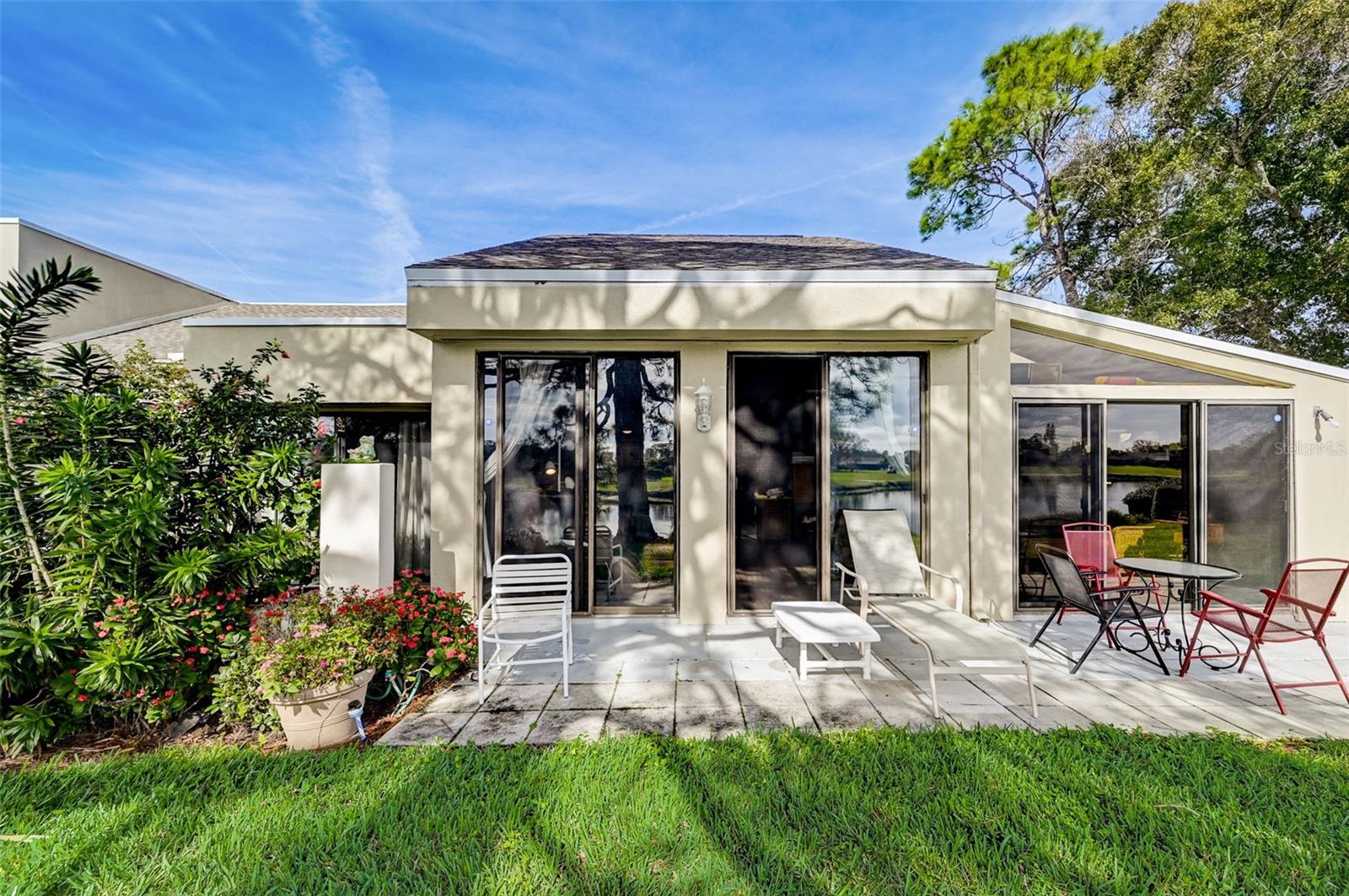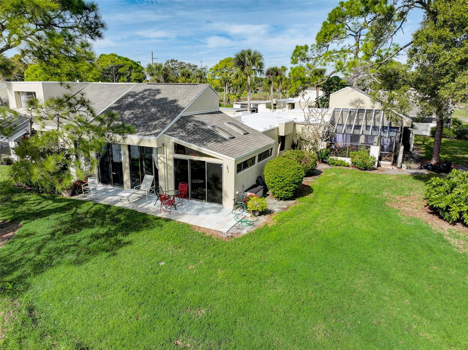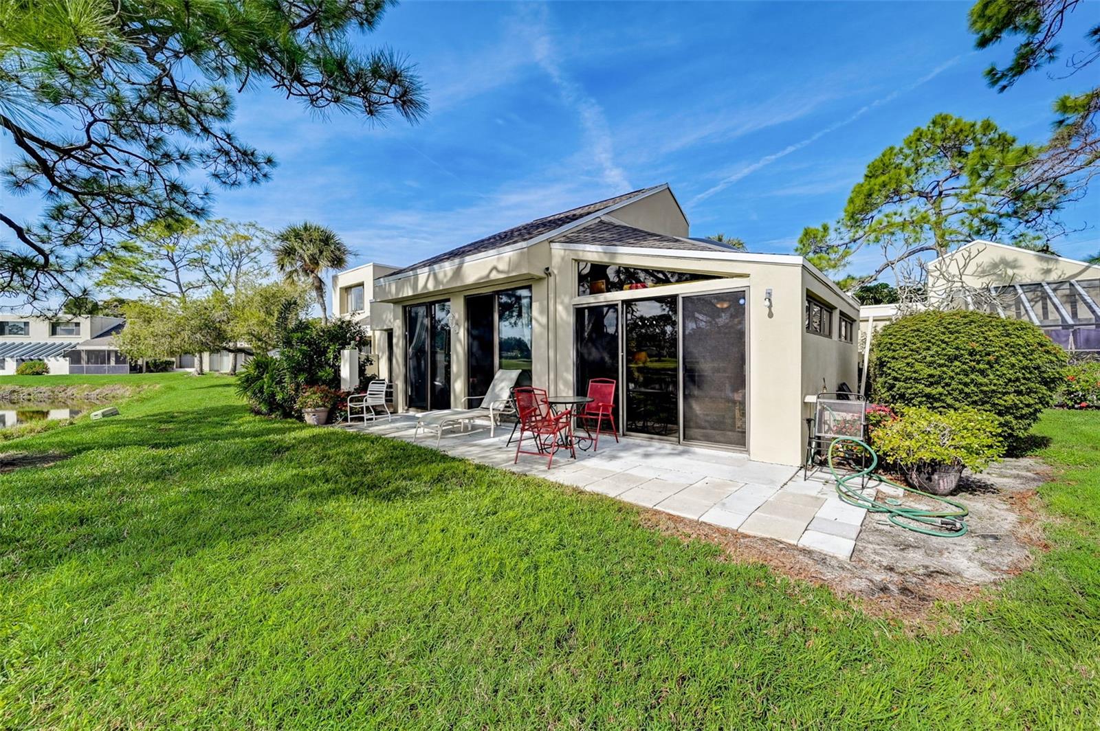 Welcome to your dream home in the sought-after Sarasota community of The Meadows! This exquisite 2-bedroom, 2-bathroom residence offers a perfect blend of comfort and luxury, with a range of desirable features that make it truly stand out. As you step inside, you'll be greeted by the open and inviting living space, highlighted by vaulted ceilings and beautiful laminate flooring throughout. The spacious den/bonus room provides flexibility for a home office or additional living area, catering to your lifestyle needs. The heart of this home is the well-appointed kitchen, boasting stainless steel appliances and granite countertops. Whether you're a culinary enthusiast or simply enjoy entertaining, this kitchen is a delight. The three sets of sliders not only flood the living space with natural light but also offer stunning views of the golf course and water – a picturesque backdrop for every occasion. Step outside to discover the front and back patios, perfect for relaxing or hosting gatherings. With a designated area for BBQ, you can savor the Florida lifestyle to the fullest. Covered parking ensures convenience, and the outdoor storage provides additional practicality. The building has the added benefit of a new roof! This residence is not just a home; it's a part of a vibrant community. The Meadows is a golf community that provides access to a host of amenities, including a pool, tennis & pickleball courts, a fitness center, and 14 miles of walking and biking trails. Conveniently located near I-75, downtown Sarasota, UTC Mall, and Benderson Park, you'll find yourself in the midst of cultural, shopping, and recreational delights. Discover the perfect blend of comfort, elegance, and community living in this Sarasota gem. Don't miss the opportunity to make this property your own and enjoy the distinctive lifestyle offered by The Meadows. Schedule your viewing today!