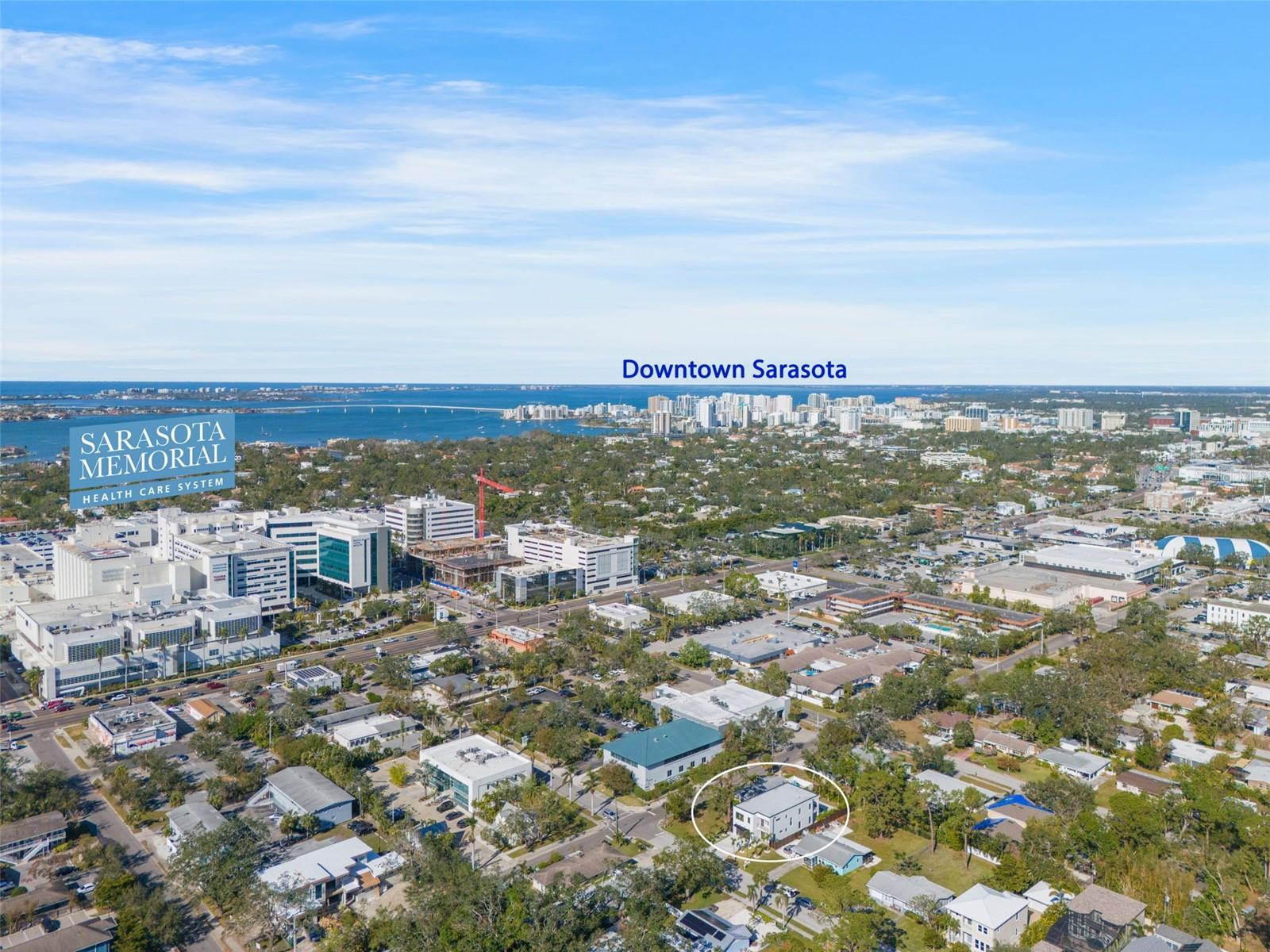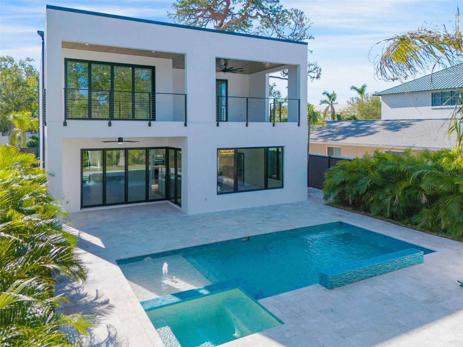 Construction is complete on this STUNNING MAKO HOMES custom-built contemporary residence, ideally situated just steps from Sarasota Memorial Hospital. This home offers an unparalleled blend of elegance and practicality, boasting 4 SPACIOUS BEDROOMS, each with IT’S OWN EN-SUITE BATH and walk-in closet, complemented by 2 additional half baths. The heart of the home is a stylish, LIGHT -FILLED KITCHEN positioned at the back of the house, where walls of windows provide breathtaking views of the OPEN POOL and private backyard. Thoughtfully designed for both relaxation and entertaining, the travertine patio deck surrounding the pool offers a refined and inviting space perfect for gatherings and outdoor enjoyment. Upstairs, an INFORMAL LIVING AREA serves as a cozy retreat, complete with sliding glass doors that open to an expansive patio. This elevated outdoor space overlooks the lush backyard and sparkling pool, providing a serene and picturesque setting for unwinding or hosting guests. This home is as functional as it is beautiful, featuring two conveniently placed laundry rooms to simplify daily living. Located just east of Tamiami Trail, it offers unmatched convenience—only steps to Sarasota Memorial Hospital, 5 minutes to the vibrant downtown Sarasota scene, and a mere 10-minute drive to the world-famous Siesta Key Beach. Experience luxury, location, and thoughtful design in this exceptional custom home.