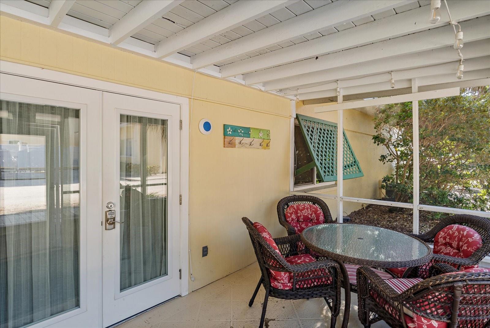 Don’t miss this exceptional investment opportunity. This 2-bedroom, 2-bathroom cottage in Sea Club 2 offers a slice of paradise. The open floor plan is beautifully updated and perfect for family vacations. The guest bedroom features twin beds, while the spacious master bedroom includes a king bed, a stunningly updated bathroom, a large walk-in closet, and private access to a tranquil outdoor seating area. Additional amenities include a covered carport and extra guest parking. Sea Club 2 provides everything needed for an ideal beach vacation. The large pool, renovated in 2020, overlooks the Intracoastal Waterway and features brick pavers, a tiki hut, and new charcoal grills for entertaining. Fishing enthusiasts will appreciate the new fishing pier, installed in 2021, and the community boat basin for docking after a day on the water. Enjoy a short walk to deeded access of Siesta Key Beach to soak up the sun, surf, or watch the sunset over the Gulf of Mexico. Located close to local shops and an array of fantastic restaurants, this property offers the best of both relaxation and convenience. It’s a unique find, providing a wonderful vacation retreat for owners and a lucrative rental opportunity with a rare one-day minimum stay requirement.