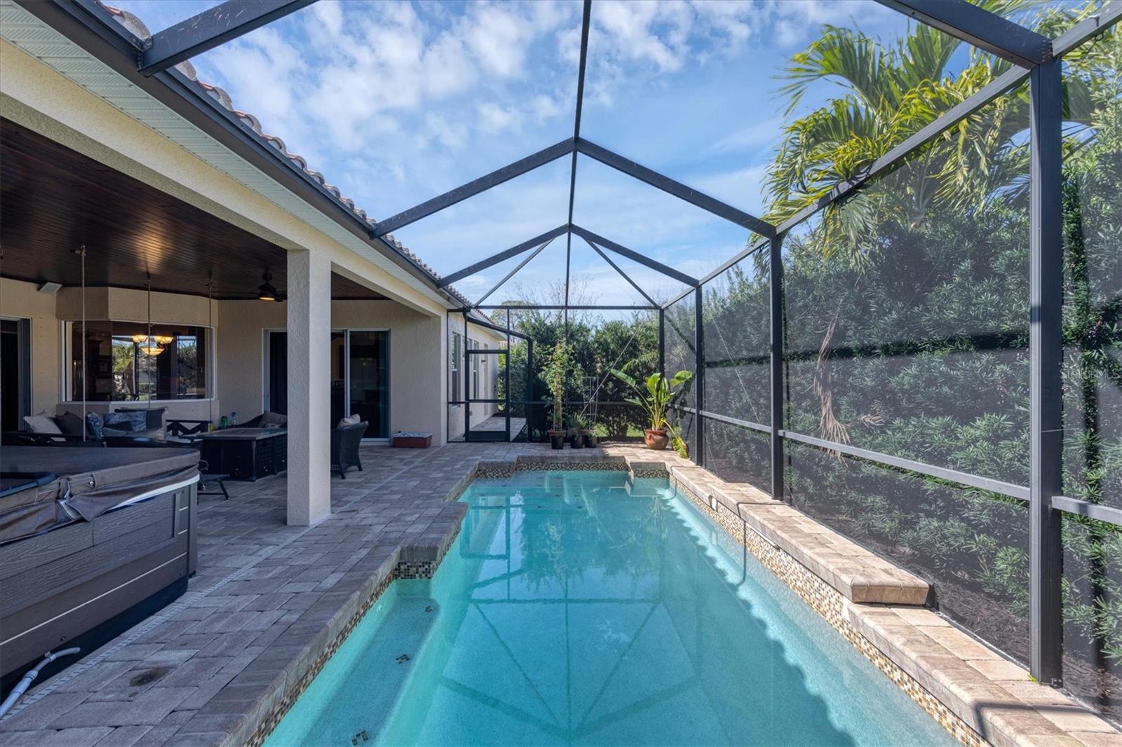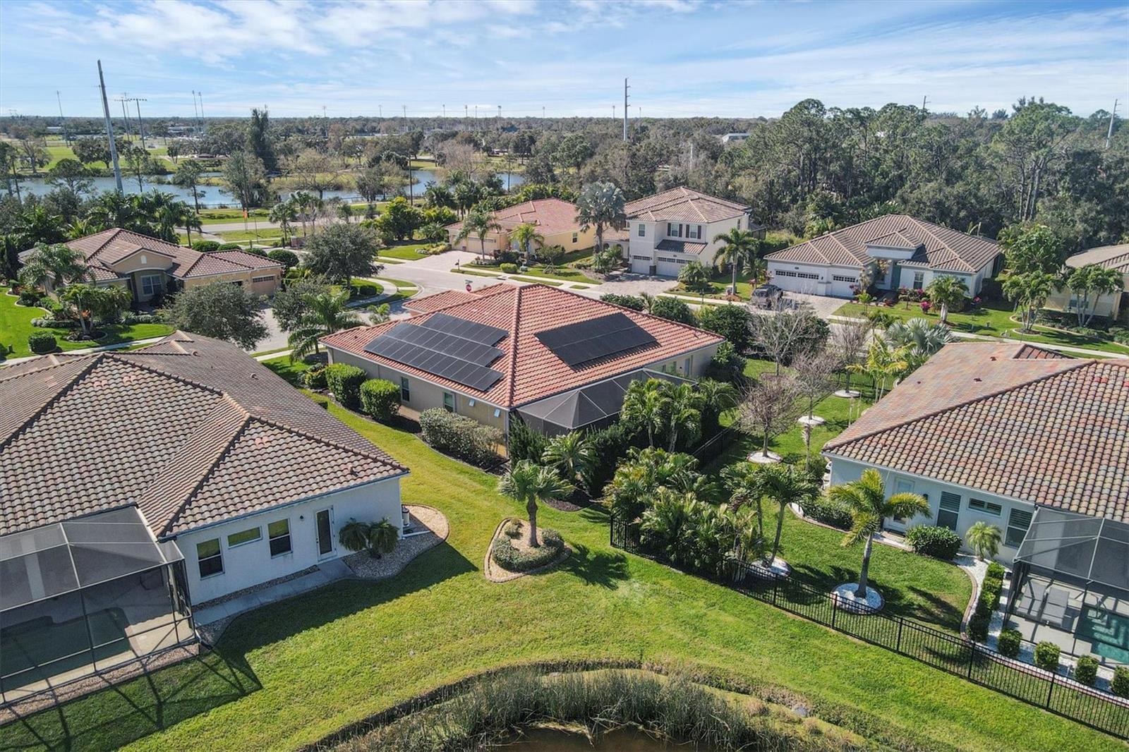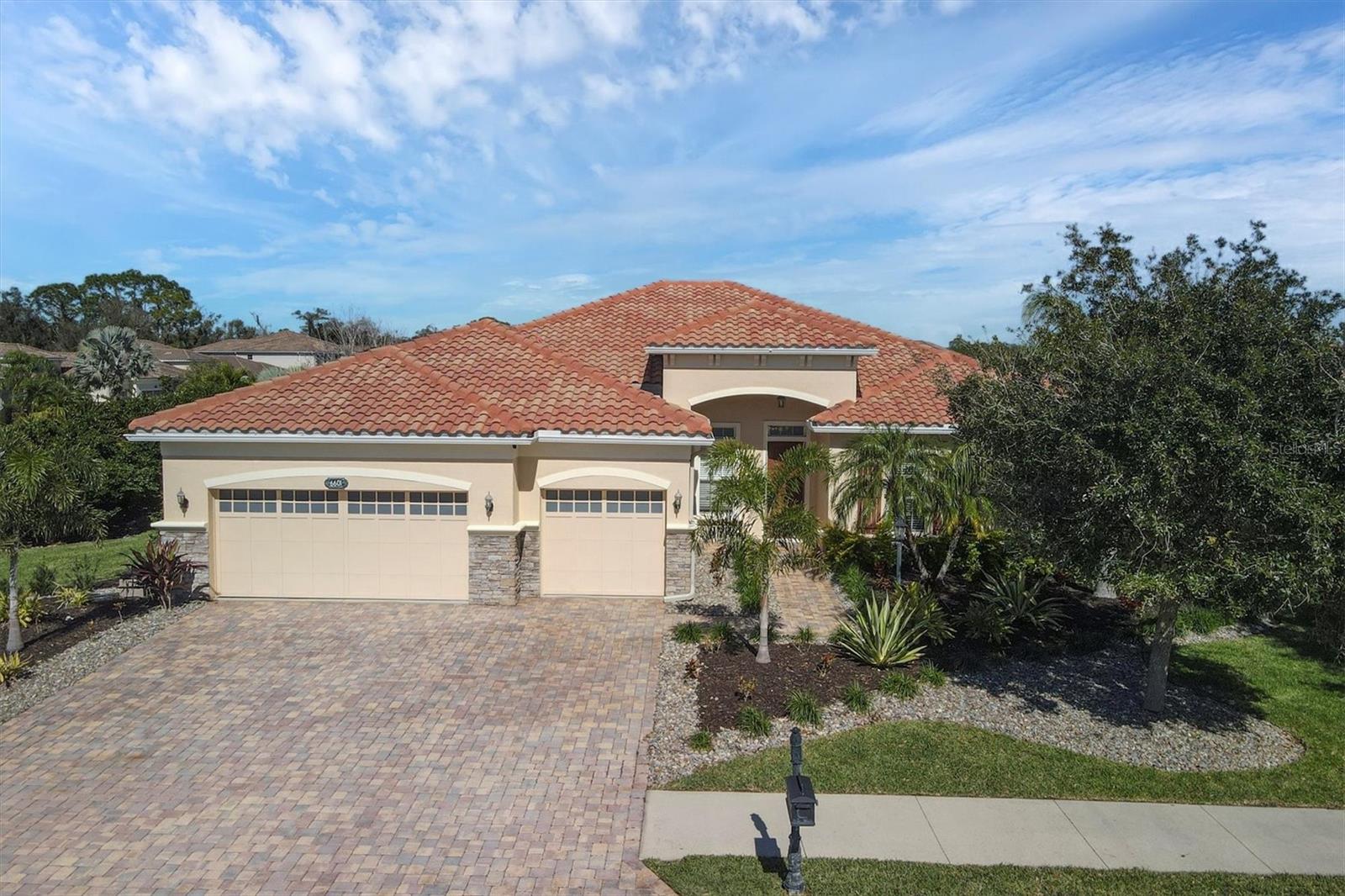 Welcome to Red Hawk Reserve, a coveted gated community with low HOA fees & No CDD Fees! This community is located within some the best school districts in the area. With over 3000 square feet of living space, this upscale home features 4 bedrooms plus den/office, 3 full bathrooms, and 3 Car Garage. The home has multiple upgrades that include cypress ceilings in the lanai, an outdoor bar/grill, an indoor dry bar complete with a wine fridge, hard surface floors throughout, molding upgrades, & a solar system that powers the entire home. When you enter the home, you are greeted by gorgeous views of the heated salt water pool overlooking the pond, an expansive outdoor living space complete with your own green egg, ice maker, & bar fridge. A gourmet kitchen is sure to please all that includes bar seating area, walk-in pantry, granite counters, built in oven/microwave and stainless steel appliances. Upscale finishes throughout the home include diagonal tile flooring, tray ceilings and much more. Flooring in all bedrooms has been upgraded to a beautiful laminate. The versatile, spacious floor plan is great for both entertaining and day-to-day living with room for everyone to spread out and enjoy views of your own private backyard oasis everything you expect when it comes to Florida living. Mature tropical landscaping, barrel tile roof and paver driveway give this home great curb appeal. Red Hawk Reserve is a highly-sought-after gated community across from Twin Lakes Park with easy access to I-75, close to shopping and a short drive to #1 rated Siesta Key Beach. Schedule your private showing today!