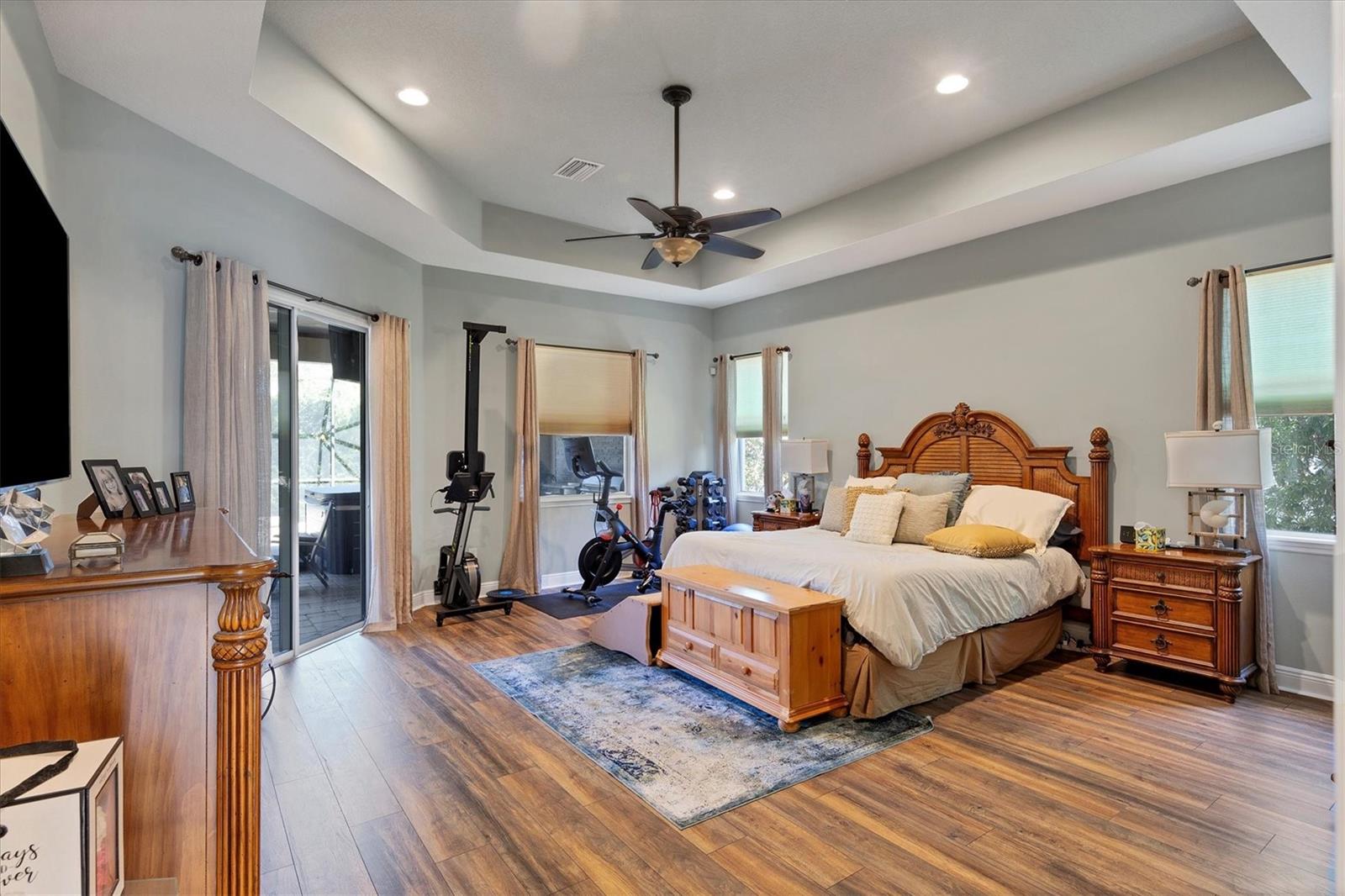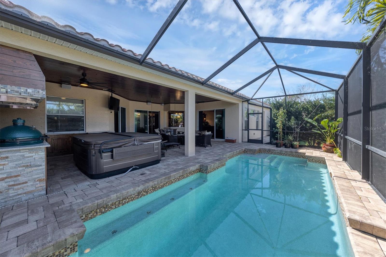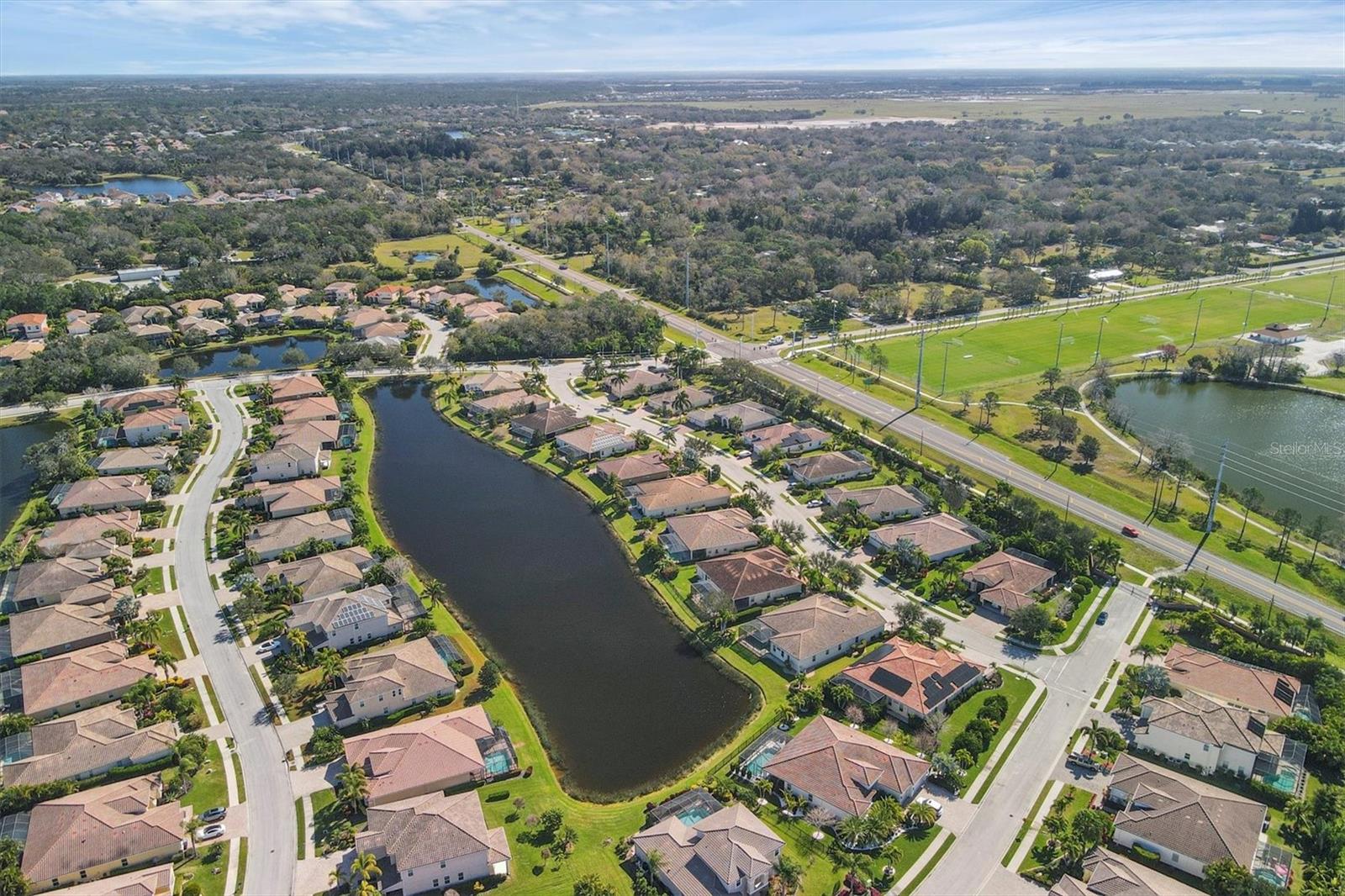 Welcome to Red Hawk Reserve, a coveted gated community with low HOA fees & No CDD Fees! This community is located within some the best school districts in the area. With over 3000 square feet of living space, this upscale home features 4 bedrooms plus den/office, 3 full bathrooms, and 3 Car Garage. The home has multiple upgrades that include cypress ceilings in the lanai, an outdoor bar/grill, an indoor dry bar complete with a wine fridge, hard surface floors throughout, molding upgrades, & a solar system that powers the entire home. When you enter the home, you are greeted by gorgeous views of the heated salt water pool overlooking the pond, an expansive outdoor living space complete with your own green egg, ice maker, & bar fridge. A gourmet kitchen is sure to please all that includes bar seating area, walk-in pantry, granite counters, built in oven/microwave and stainless steel appliances. Upscale finishes throughout the home include diagonal tile flooring, tray ceilings and much more. Flooring in all bedrooms has been upgraded to a beautiful laminate. The versatile, spacious floor plan is great for both entertaining and day-to-day living with room for everyone to spread out and enjoy views of your own private backyard oasis everything you expect when it comes to Florida living. Mature tropical landscaping, barrel tile roof and paver driveway give this home great curb appeal. Red Hawk Reserve is a highly-sought-after gated community across from Twin Lakes Park with easy access to I-75, close to shopping and a short drive to #1 rated Siesta Key Beach. Schedule your private showing today!