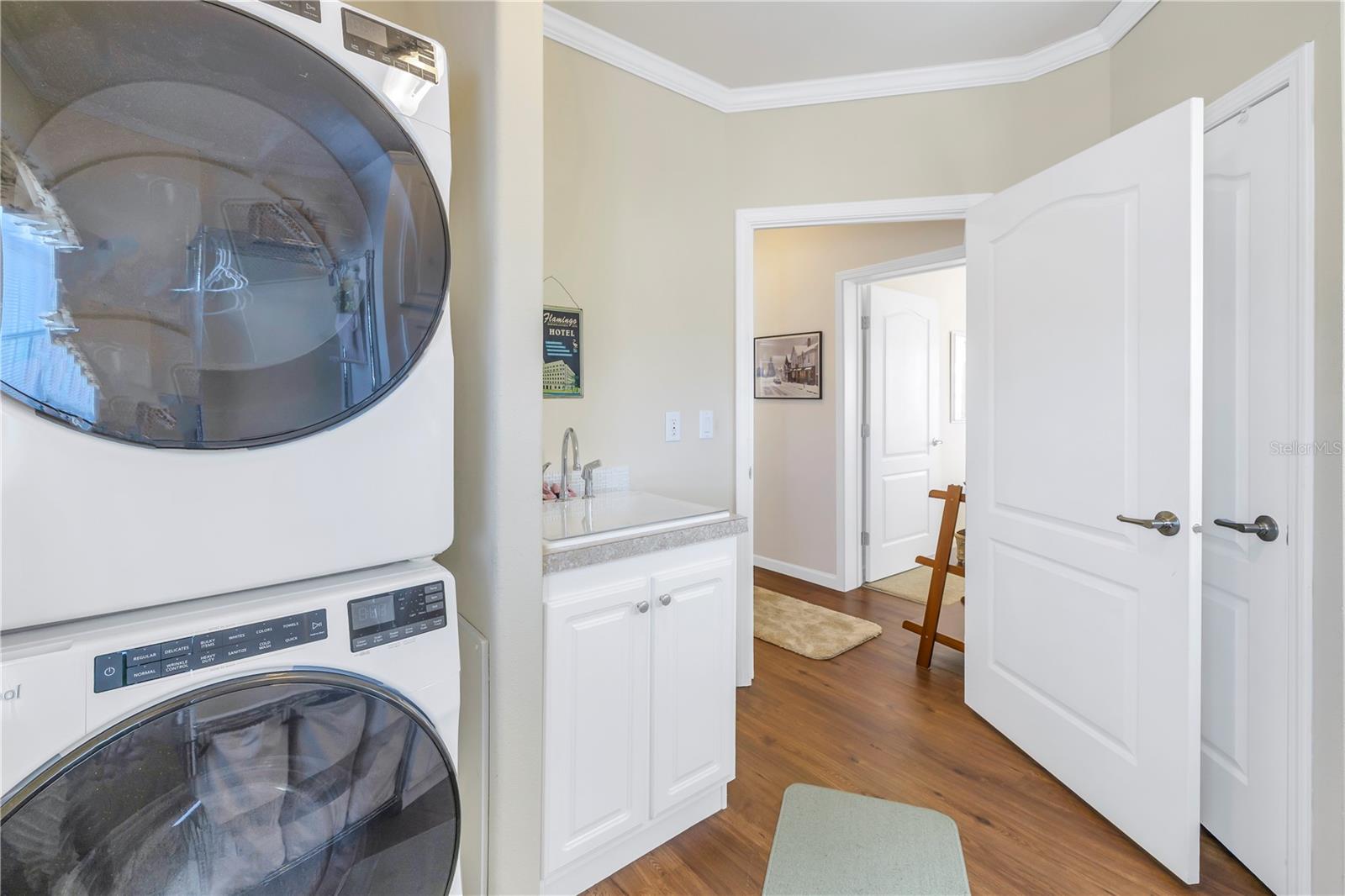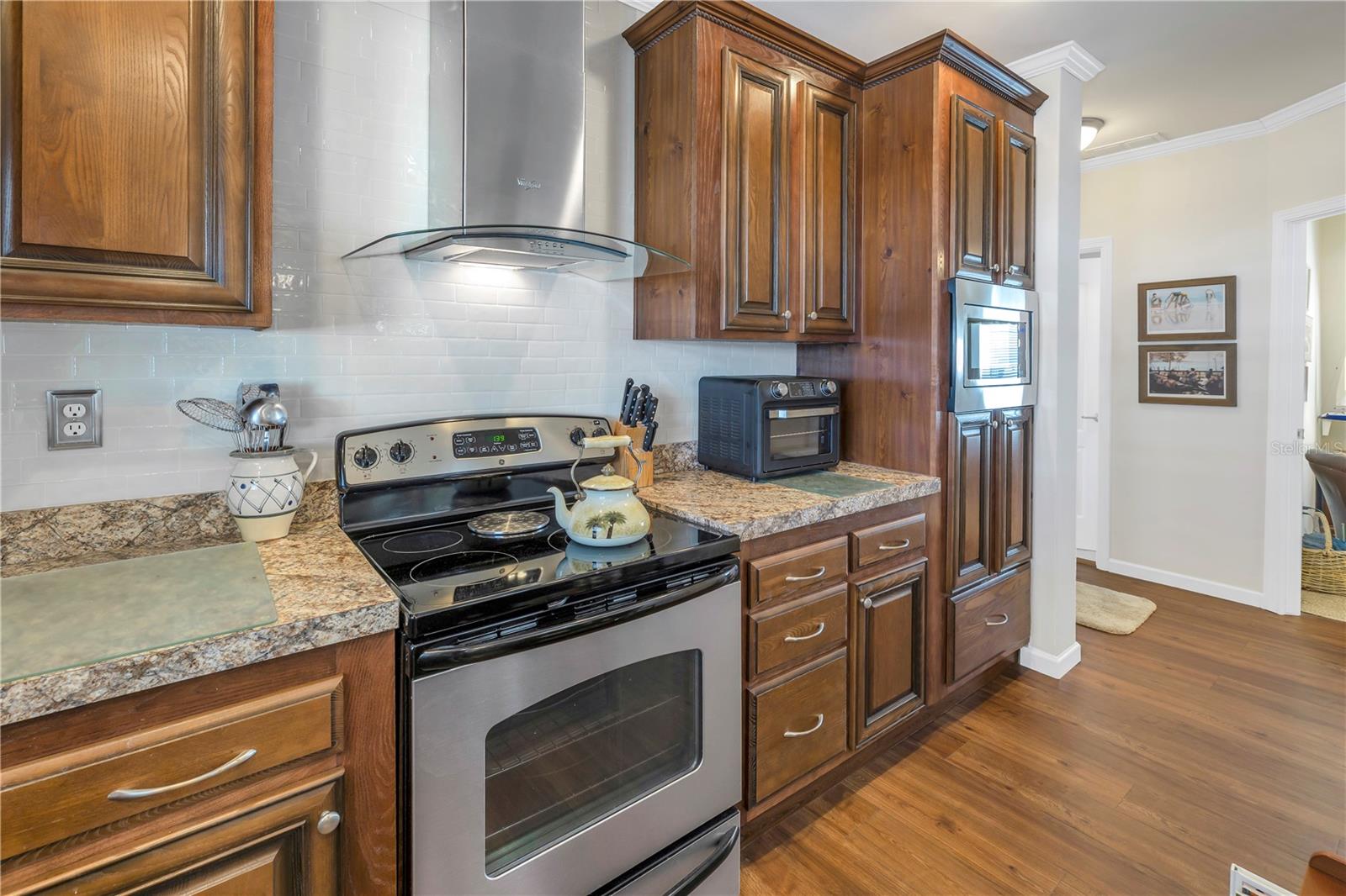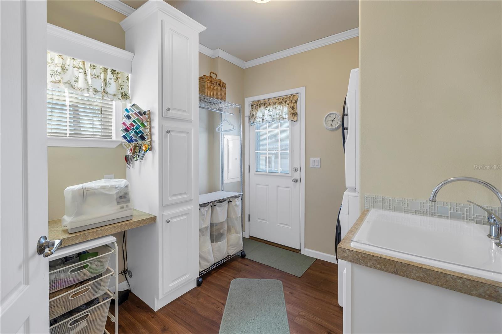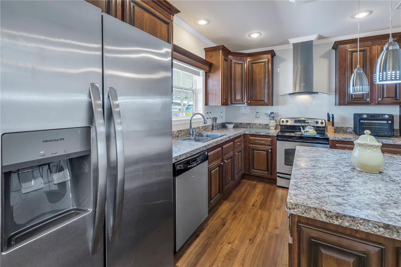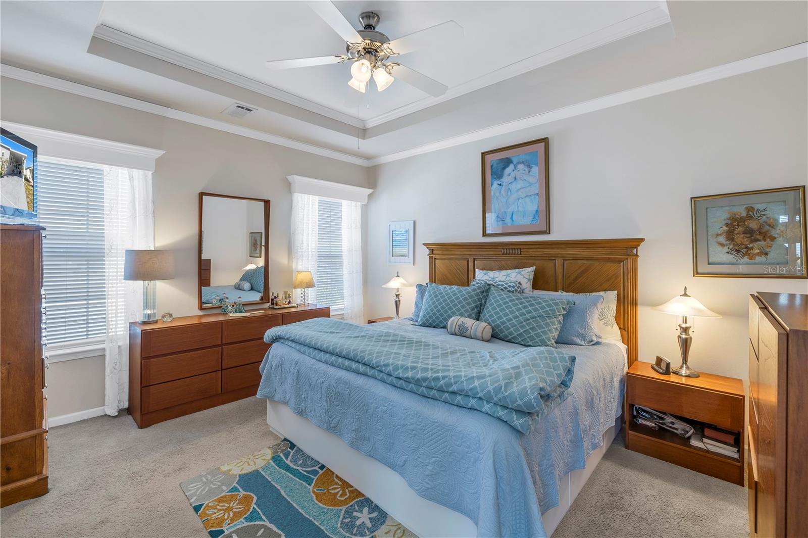 Step into a world of comfort and convenience with this meticulously crafted, custom-built home completed in 2015. Nestled just 1 mile from the pristine shores of Siesta Beach, where free parking awaits. This 3-bedroom, 2-bathroom haven offers a perfect blend of style and functionality. Enjoy seamless accessibility to shopping, transportation, and recreational activities, whether by car, bicycle, or a leisurely stroll. Set within an established, resident-owned 55+ community, indulge in worry-free living with a monthly HOA fee of only $175, covering cable TV, water, sewer, trash removal, lawn care, security monitoring, sport courts, pool & patio, recreational hall, library, and maintenance of all public areas. High-speed internet is also readily available. Inside, the expansive kitchen boasts abundant counter space, a large island with seating, 27 cherry cabinets and drawers, and a new refrigerator added in December 2023. The open concept living and dining area, adorned with tray ceilings reaching 11 feet in height, creates an ideal area for family entertaining and social gatherings. Safety and convenience take center stage with 36-inch wide door openings, tinted windows with cornices and shades, and windows that tip-in for easy cleaning, all while being severe weather resistant. A reinforced "safe area" provides added protection during severe weather events.The primary bedroom, privately situated at one end of the house, features an en-suite double sink bathroom and a walk-in closet. The bathroom includes a step-in shower with a full-size sit-down seat and slip-resistant tile. At the opposite end, discover two additional bedrooms, a full bathroom, and a laundry/utility room with a new washer and dryer are brand new as of November 2023. Step out onto the inviting lanai/porch, surrounded by large sliding windows and screens, providing a comfortable space to unwind. Outside, a generous 31-foot driveway offers ample parking for two cars, while a patio space and a sizable shed with a loft and electrical outlets cater to both storage and workspace needs. This home effortlessly combines comfort, safety, and functionality for a truly exceptional living experience.