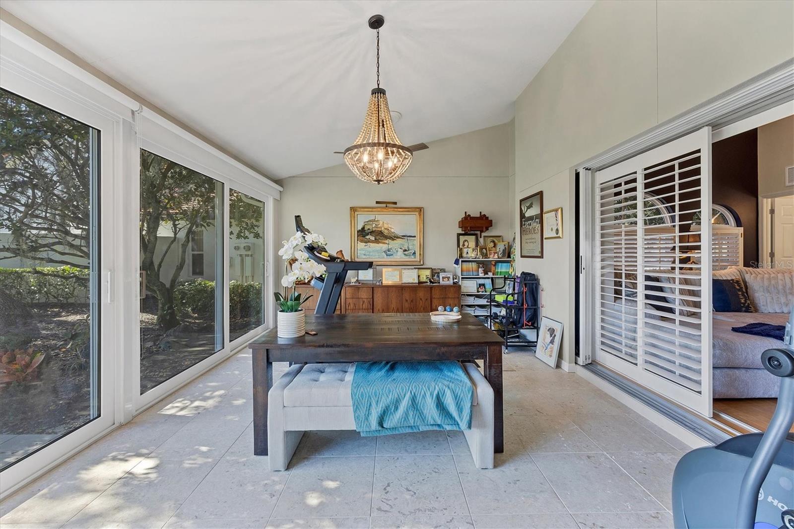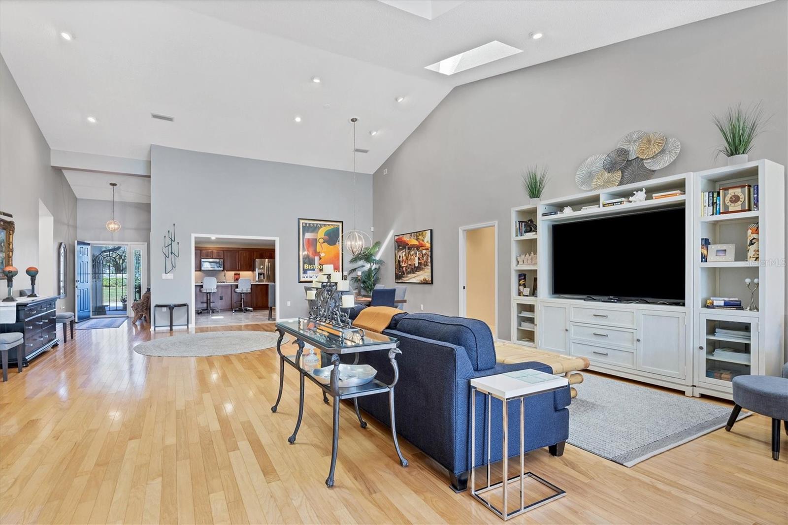 Welcome to Villa Palmeras, an elegant retreat nestled within the esteemed TPC Prestancia community in Sarasota's picturesque Palmer Ranch. This spacious detached villa presents a splendid floor plan boasting 4 bedrooms, 3.5 bathrooms, and 3,542 square feet of refined living space. Upon entry, you'll be greeted by meticulous attention to detail, showcased in the gourmet kitchen featuring newer appliances, quartz countertops, and tasteful wood cabinetry. The expansive living area seamlessly merges the dining room and great room, creating a welcoming ambiance for hosting family and friends. Natural light floods the main living space through the soaring vaulted ceiling and skylights, complementing the neutral solid wood flooring. Relax in the tranquil Florida room or adjacent family room, both offering serene views and ideal spaces for unwinding. Retreat to the primary suite, a private sanctuary featuring two custom-organized walk-in closets and a spa-like bathroom. Across the residence, a private guest wing houses two spacious guest suites with en-suite bathrooms, while an additional room can serve as a bedroom or bonus room. Enjoy peace of mind with hurricane impact windows safeguarding the entire residence. Outside, the oversized garage and double lot provide ample space and privacy on a serene cul-de-sac. Residents can take advantage of the community's amenities, including two heated pools and guarded entrances for enhanced security. With maintenance-free living, you'll have more time to explore nearby attractions, such as optional membership to the TPC Prestancia golf course, the Legacy Trail, shopping, and the pristine shores of Siesta Key just a few miles away. Immerse yourself in the Sarasota lifestyle and schedule your private showing today! Bedroom Closet Type: Walk-in Closet (Primary Bedroom).
