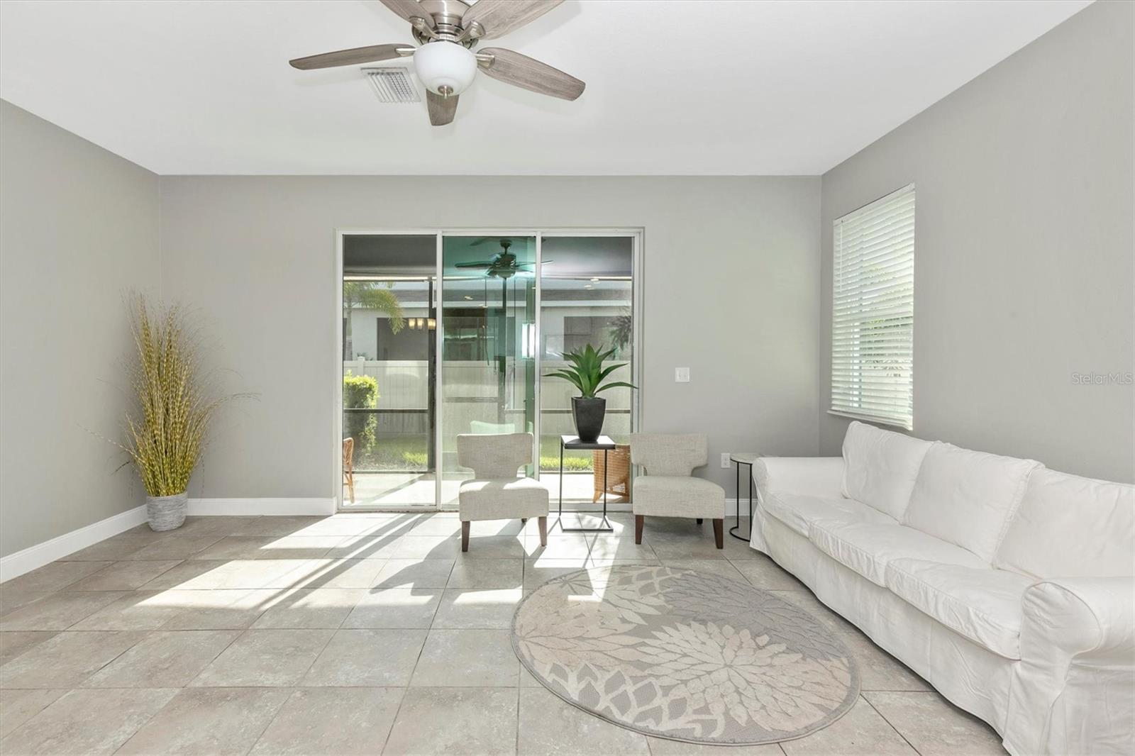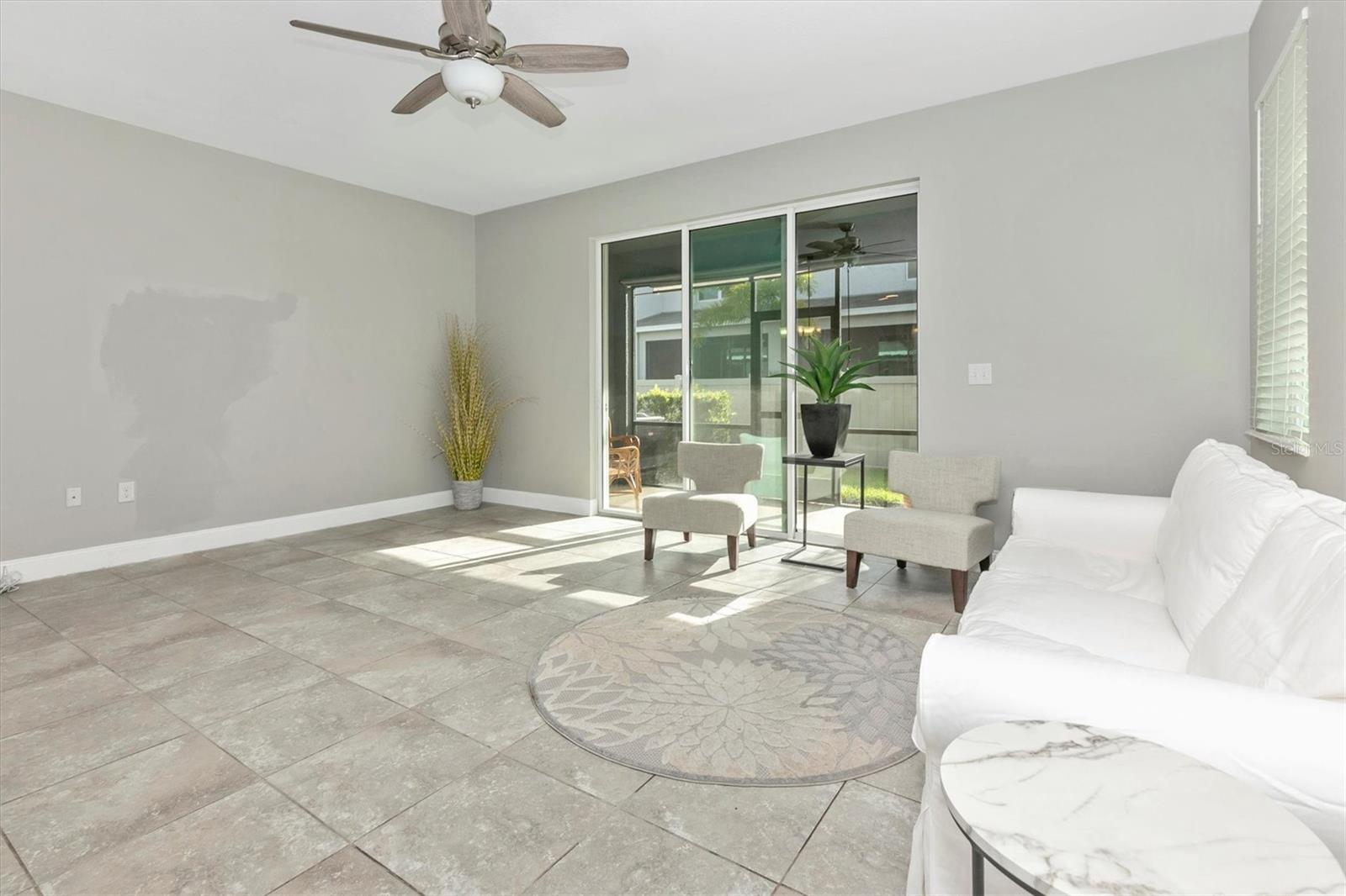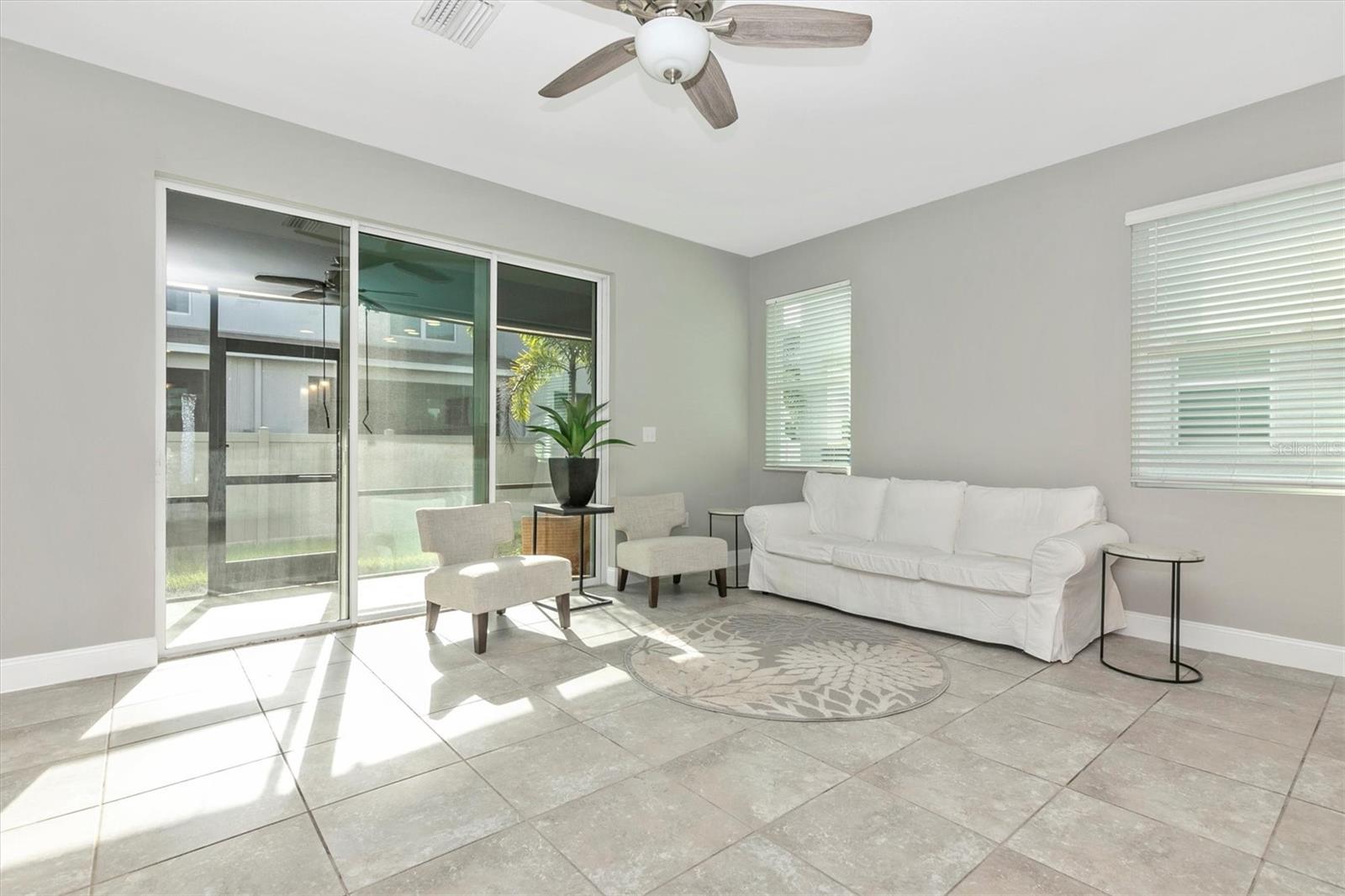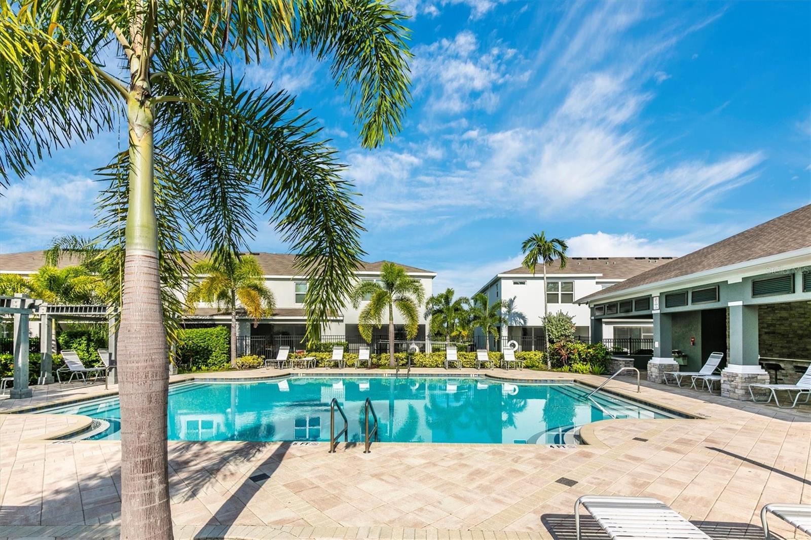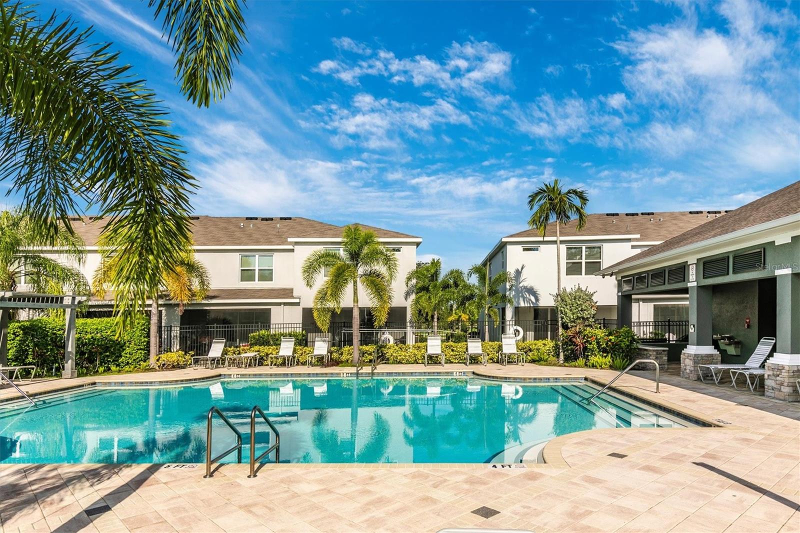 ***Motivated Seller*** Promenade at Palmer Ranch END UNIT TOWNHOUSE with three walls of sunshine pouring in bringing happiness and the good life! Located on circle around pond in Gated Community. Townhouse has stylish stone elevation, attached 1-car garage, extra side windows that allow NATURAL LIGHT that creates a happy atmosphere, ceramic tile floors on main, custom 5" floor trim on main level for extra special ooo-la-la touch, three sliders to rear screened porch. Granite Kitchen island with room for stools. Kitchen-Dining-Living combo. Carpet on stairs and upper level. Upper level split floorplan has a landing with laundry closet and study and sitting area. Two bedrooms on front with jack-and-jill bathroom. Primary bedroom with en-suite bath and walk-in closets located on rear of home. Clothes washer and dryer included. Home includes hurricane shutters. Pet friendly community, mature fox palms, pool with poolside outdoor seating area under roof. WALK TO THE LOVELY COMMUNITY POOL with lounge chairs, surrounded by palms and mature landscape and ATTACHED OPEN Clubhouse-style area with table seating, outdoor living room space! Association Fees, Rules, Potential CDD all must be verified by buyer.