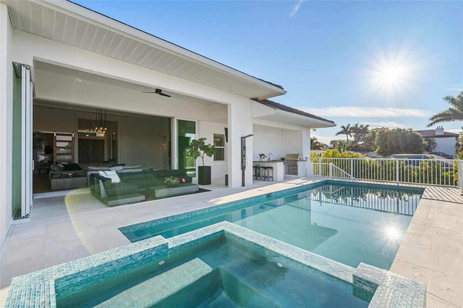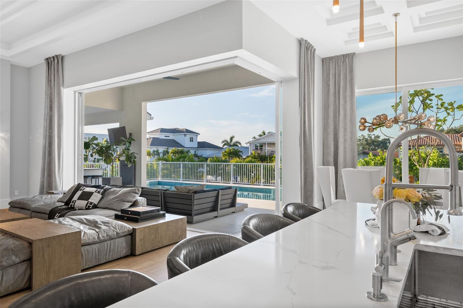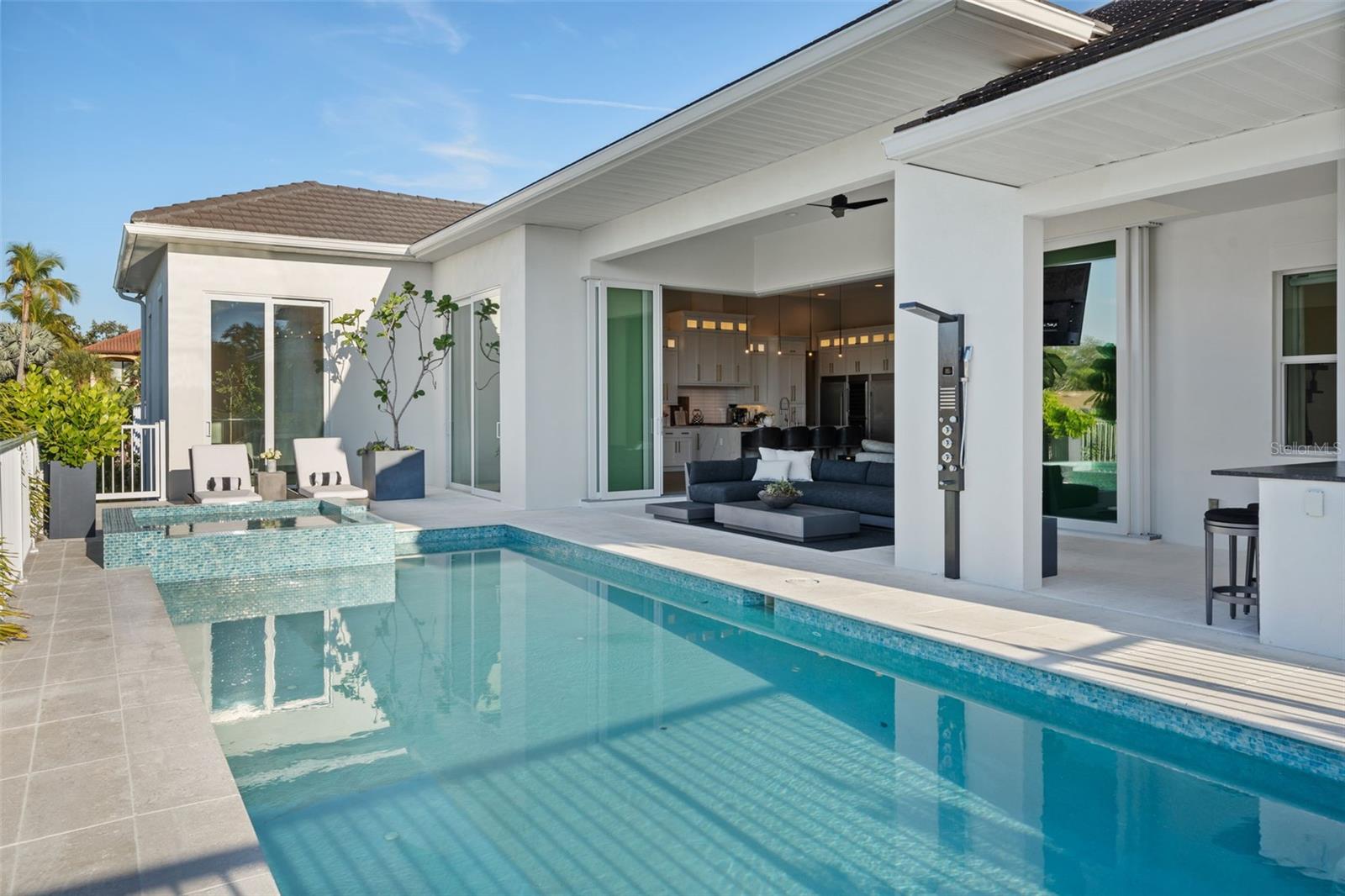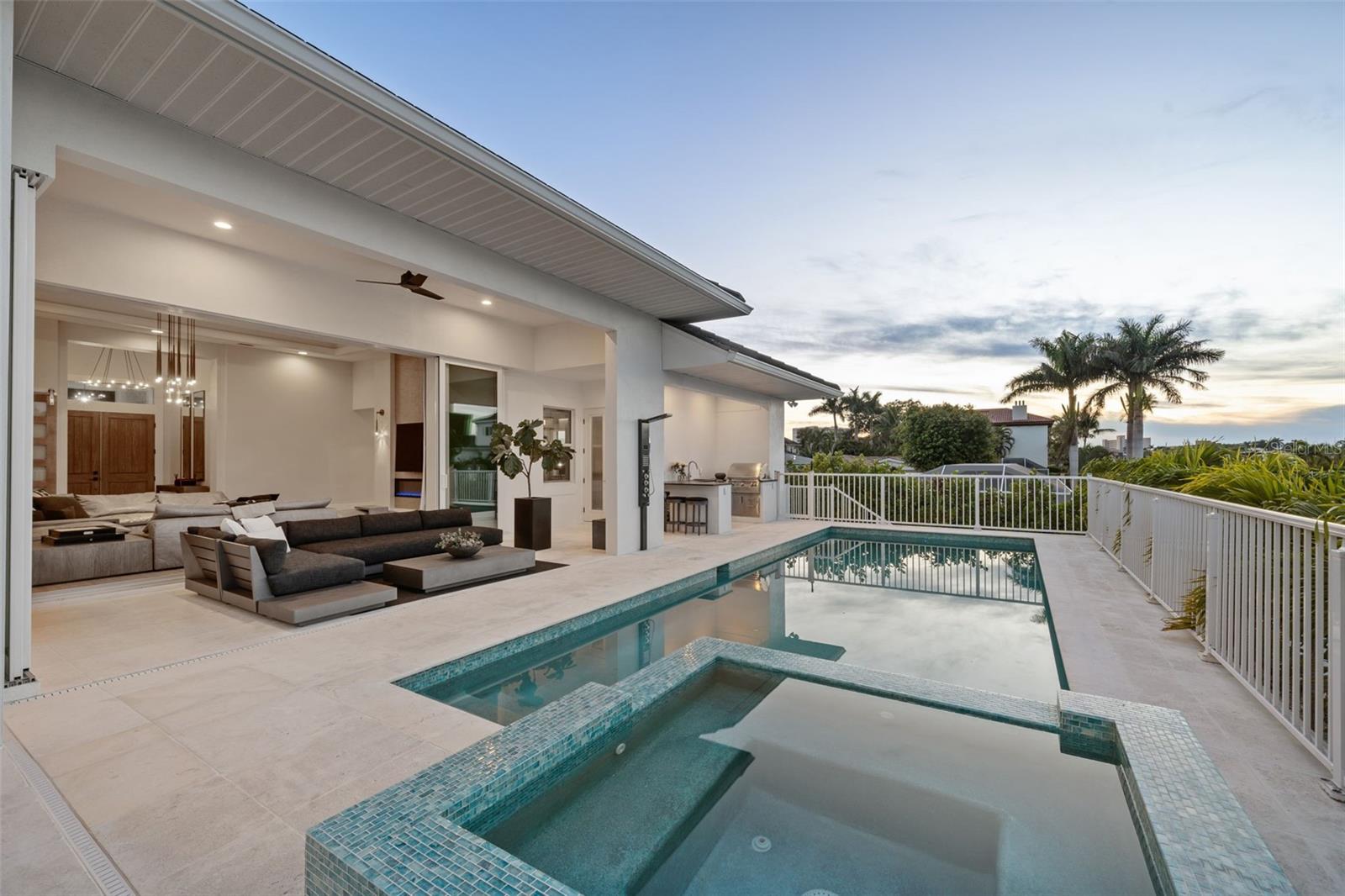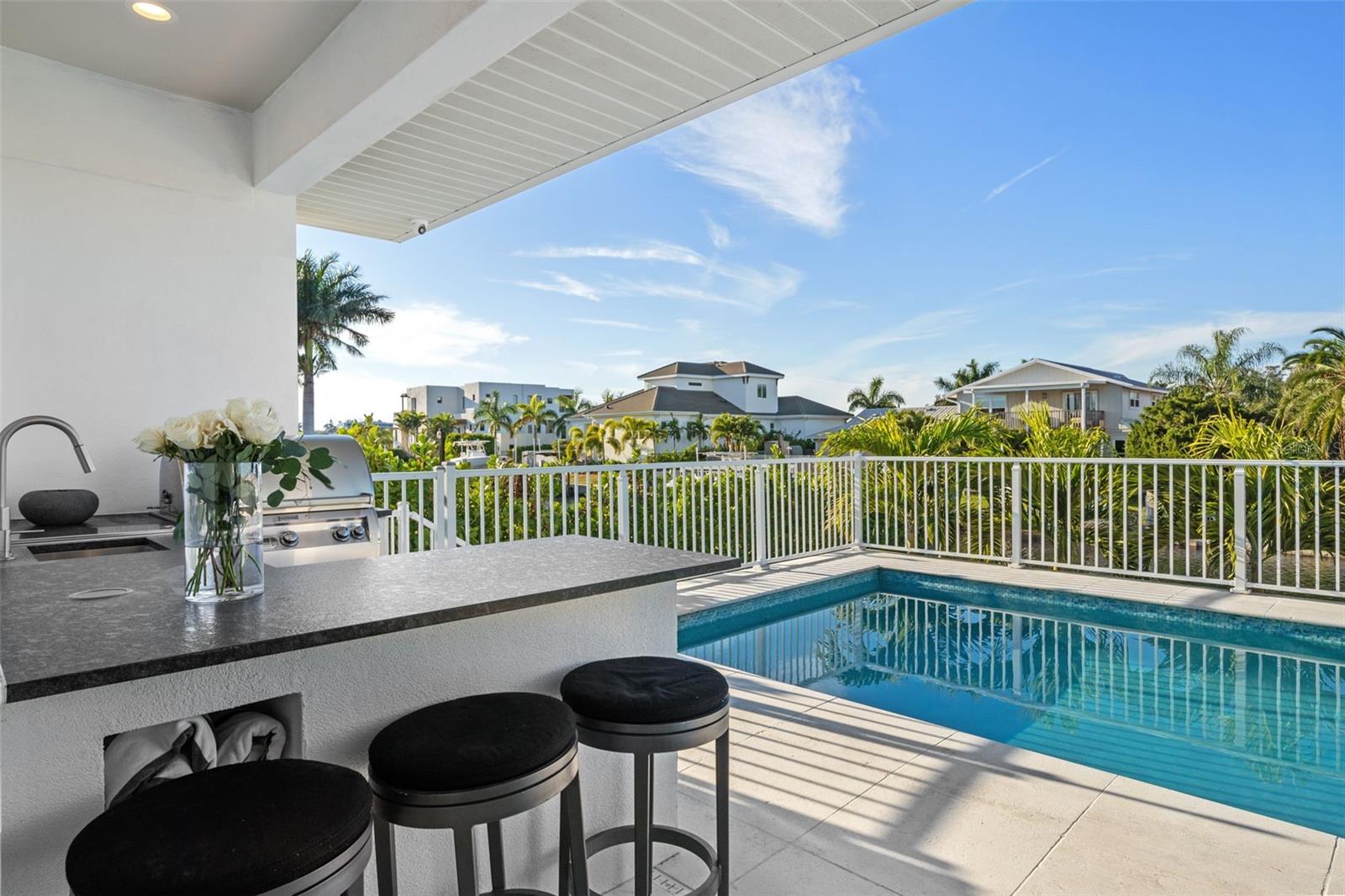 Welcome to your very own slice of paradise, where luxurious living meets waterfront serenity in the heart of Sarasota, Florida. This exquisite canal-front home offers the epitome of modern elegance, inviting you to indulge in the ultimate coastal lifestyle. Step inside to discover a haven of sophistication, with soaring ceilings throughout the house, creating a sense of openness. Boasting 4 bedrooms, including 2 separate suites, 3 full bathrooms, and a dedicated office space, this residence provides ample space for both relaxation and entertainment. Unwind in your private sanctuary as you seamlessly transition from indoor to outdoor living as you step outside to the expansive patio area, where a saltwater pool awaits and a full outdoor kitchen. Immerse yourself in the tranquility of the surroundings as you soak in the breathtaking vistas of the canal and the most spectacular sunsets over the Gulf of Mexico. Nestled just over a mile from the renowned white sand beaches of Siesta Key, this waterfront retreat allows you to fully immerse yourself in the coastal lifestyle. Whether you're seeking a leisurely cruise, a thrilling fishing expedition, or simply basking in the sun on the open waters, the adventure begins right at your doorstep. Experience waterfront living at its finest. Don't miss your chance to call this masterpiece home. Schedule your private showing today and prepare to embark on a lifestyle of unparalleled luxury and serenity.