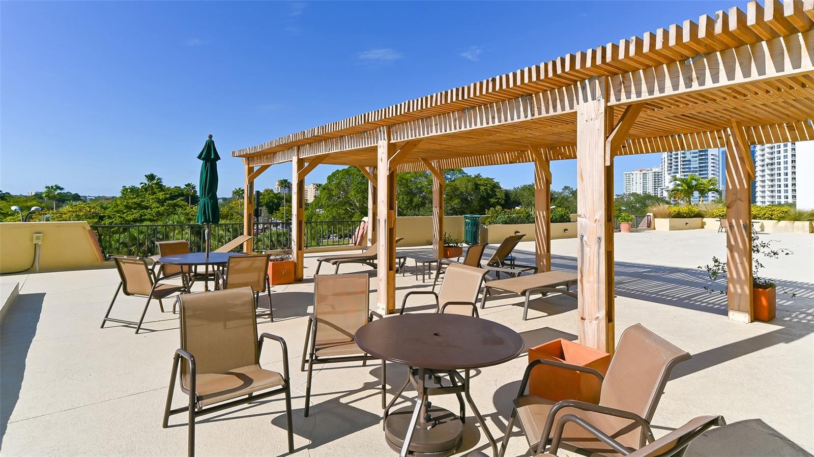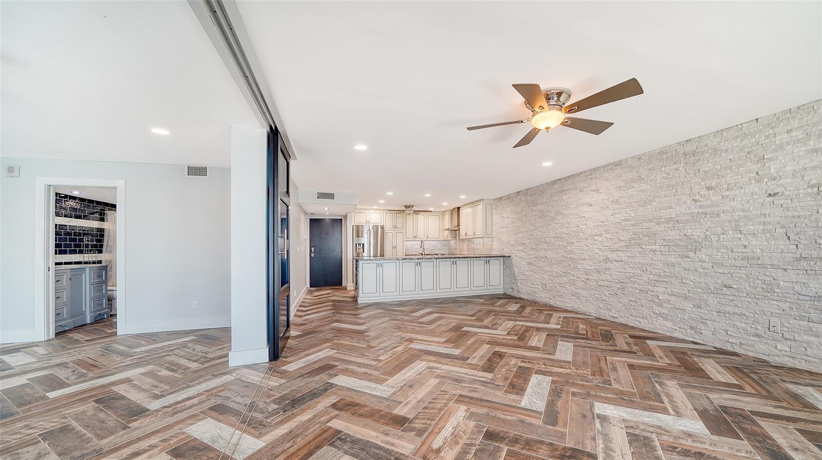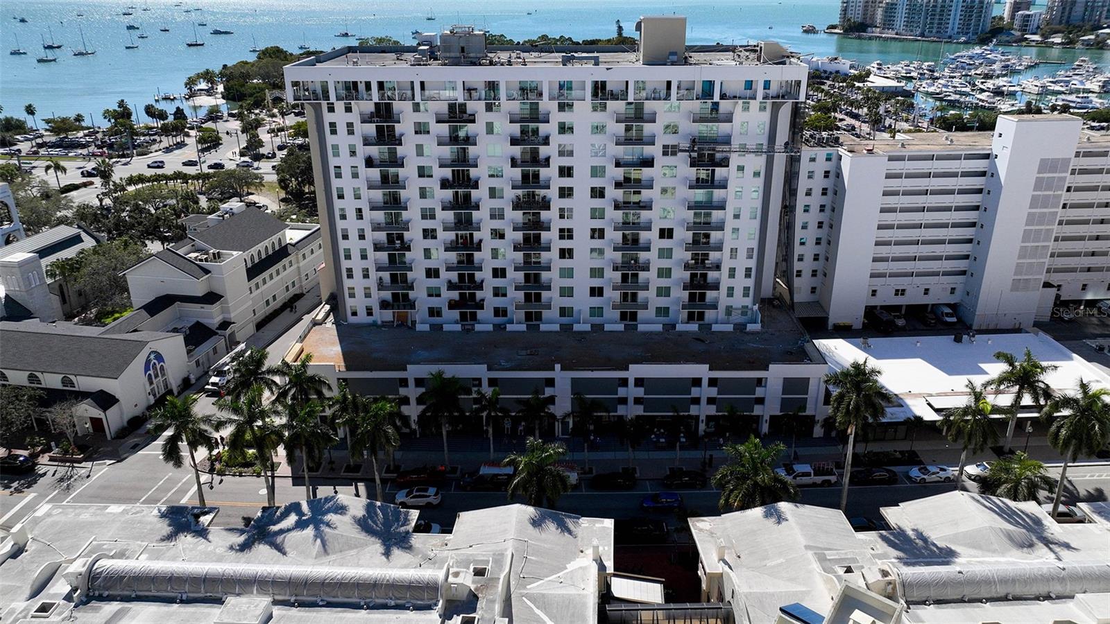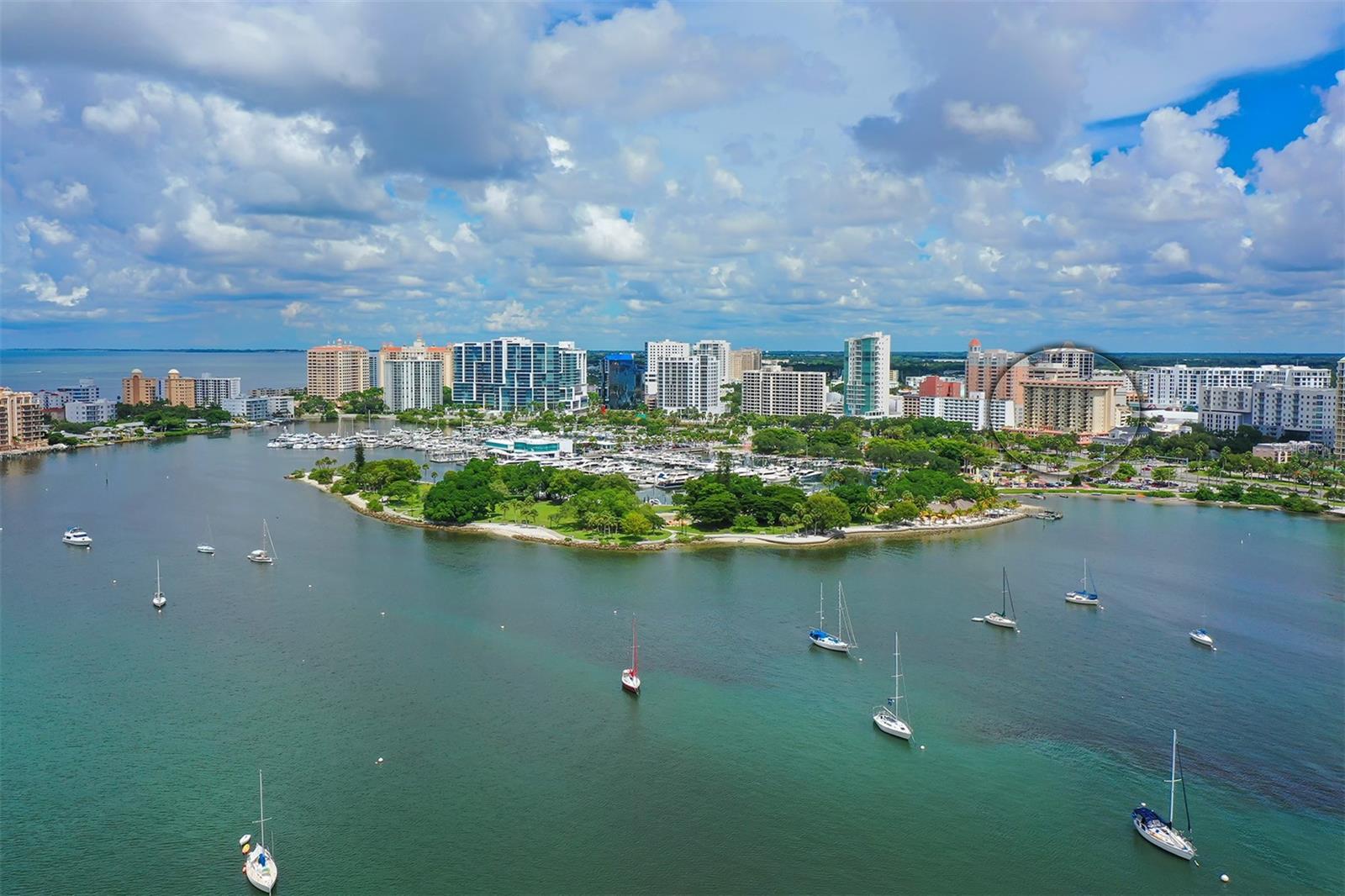 PENTHOUSE with FABULOUS VIEWS of SARASOTA BAY. Elegant Remodel with CONTEMPORARY OPEN DESIGN. Chef’s Kitchen with Cambria Quartz countertop, Fireclay Farm Sink with touchless faucet, Thomasville sold wood cabinets with soft-close drawers and slide-out shelves, two Lazy Susans, double pull-out waste center for trash and recycling, extra cabinets under LARGE KITCHEN BAR. Floors are Porcelain Tile with Herringbone pattern. A focal point in the Great Room is not only the FANTISTIC WATER VIEWS but also a BEAUTIFUL Stack Stone wall. A MODERN OPEN PLAN with 11-foot opening to the bedroom using EightDoor 3-panel frosted glass Barn Door to give extras water views, extra light and privacy when closed. All interior doors are EightDoor 3-panel frosted glass. Bathrooms have motion detector lights. One bathroom features a Heated Bubble Massage Tub and the other bathroom has a SPACIOUS Shower with beautiful glass tile on the wall. Custom Closets and Laundry by the bathroom. Motorized Shades and Keyless Entry for CAREFREE LIVING. The 101 Condominium has had major updates including impact windows and doors, new lobby, fitness center, yoga room, community room with kitchen and added bicycle storage. The final phase of improvements, including the Penthouse glass railings, is scheduled to be completed in 2024. Enjoy the security of the parking garage and the on-site management with concierge service 8:00 AM to 6:00 PM. Enjoy the DOWNTOWN LIFESTYLE living around the corner from Main Street, Palm Avenue, Whole Foods, StarBucks, restaurants, theatre, Selby Library and the Marina. Enjoy jet skiing at Bayfront Park and stay in shape by jogging over the John Ringling Bridge. Only 5 minutes to Lido Beach and St. Armands Circle with over 130 shops and restaurants. This HIGHLY SOUGHT AFTER LOCATION is perfect for you. OPPORTUNITY KNOCKS. . . but HURRY