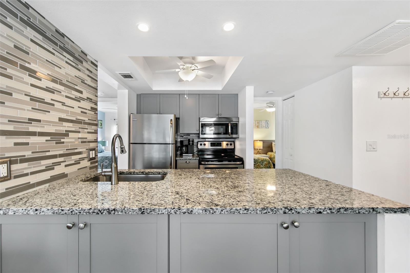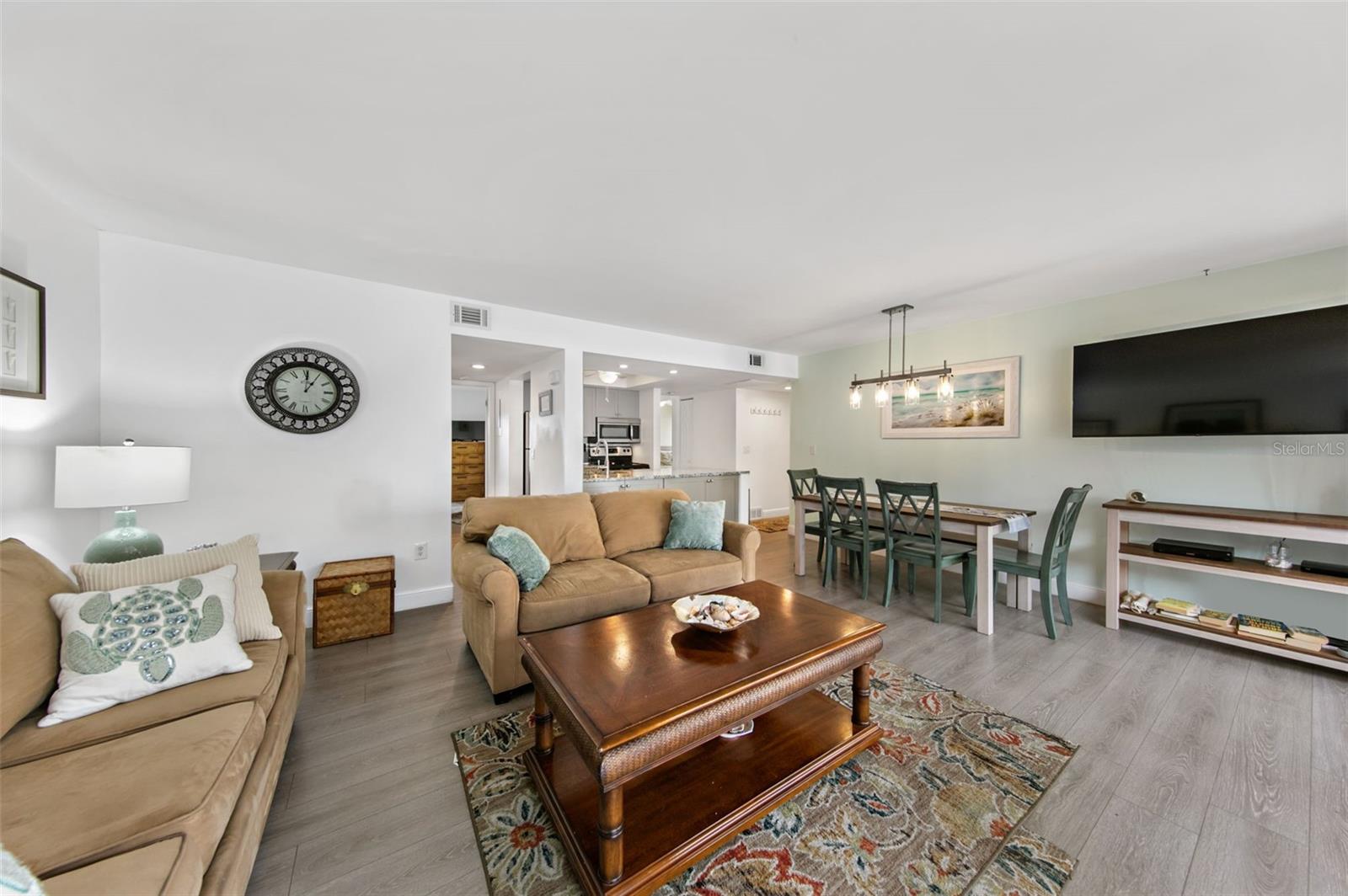 Find safety and security from possible inclement weather near your beach dwelling with a top floor unit with eastern exposure at this wonderful Midnight Cove II unit. Priced extremely competitively on Siesta Key, this nicely renovated unit overlooks the boat traffic and wildlife playground that is the intracoastal waterway that runs between Siesta Key and the mainland. A unique opportunity to capitalize on attractive income while utilizing this third-floor perch to drink in a saltwater breeze when your schedule permits. From your sun deck, a wall of glass sliders connects you to the main living space, flooded with cheerful Florida sunshine. Delight in low maintenance living with the handsome LVP flooring throughout the space. The kitchen offers updated cabinetry, chic stainless appliances and granite counters that shine under the recessed lighting. The dining area offers seating for six while the living area is the perfect place to kick up your feet after a day of Siesta Key adventures. The principal suite is bright and fresh with a beautifully renovated full bath. The second bedroom offers an attractive headboard wall. Guests and families will be quite comfortable with the unique, second full bath allowing for a private space to refresh. With amenities that rival or bests many communities, Midnight Cove II is a vibrant, welcoming place to call home with a marina, tennis courts, barbecue area, fitness room and heated pool. You will also enjoy deeded beach access to Crescent Beach, Siesta Key’s renowned beach with powdery white sands along the Gulf of Mexico. Take a stroll or a trolley to any one of the eateries and shopping opportunities along Siesta Key or venture off island and explore Sarasota and beyond!