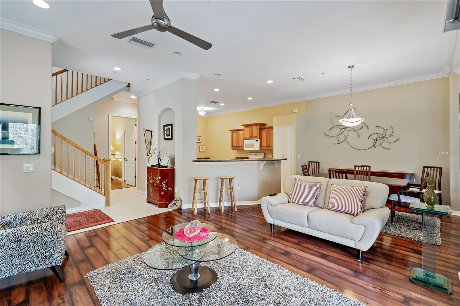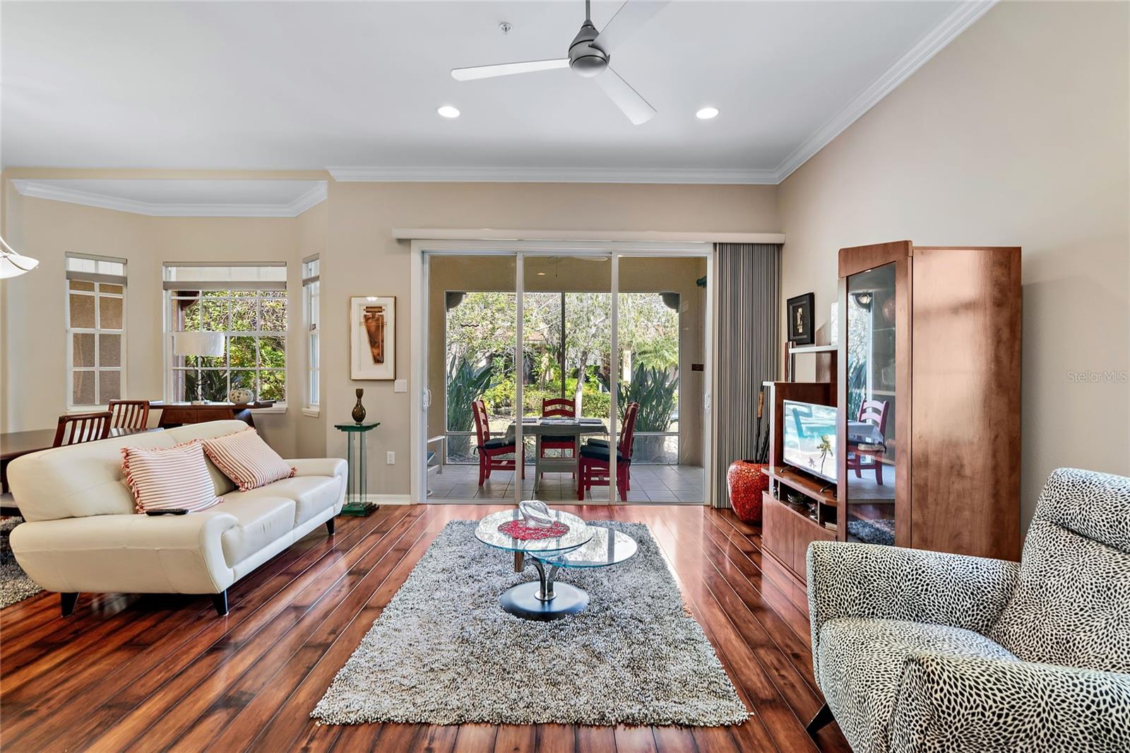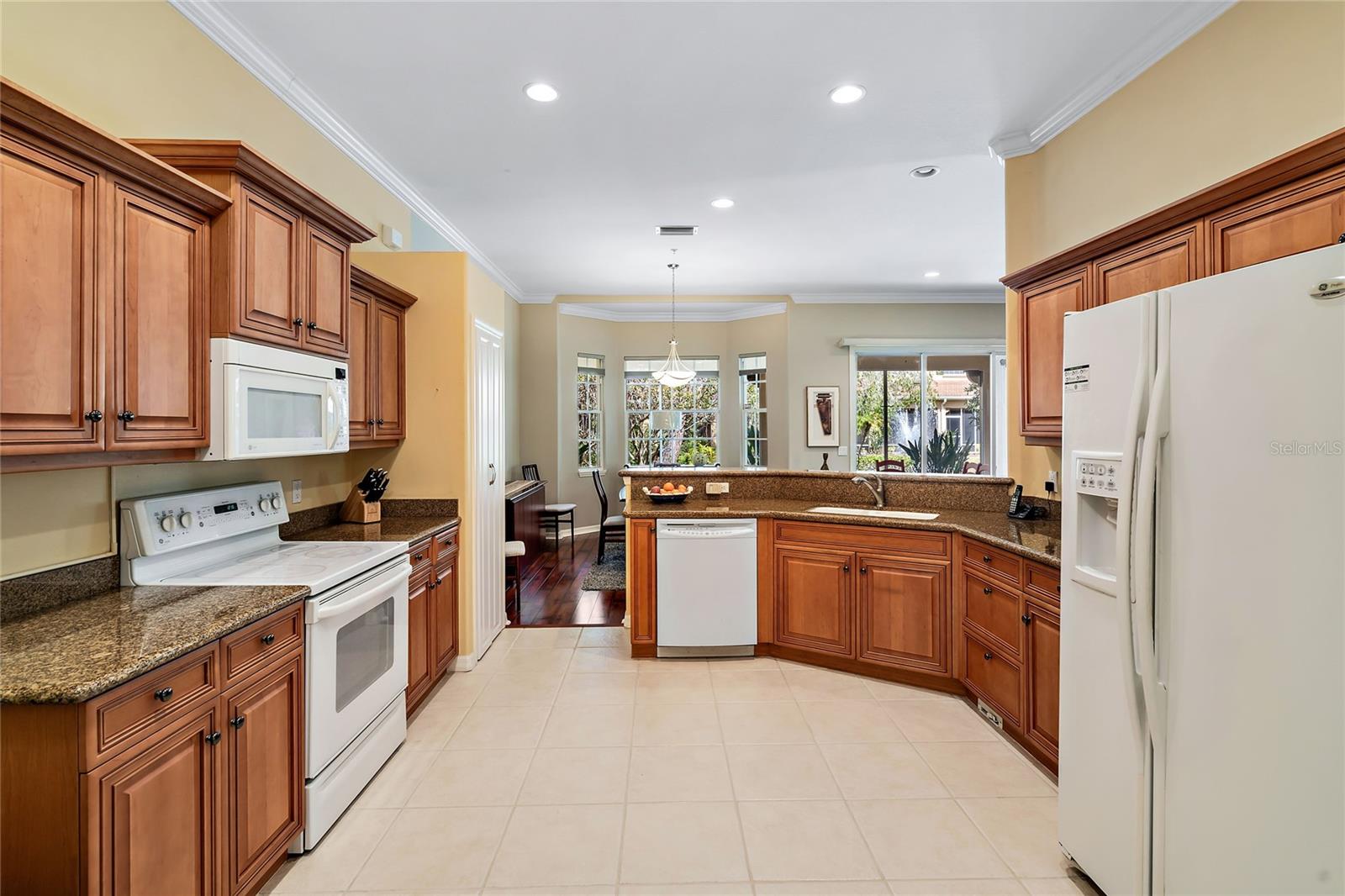 Great opportunity to live in Palmer Square West this turn-key elegantly appointed and nothing missed with a rare 2 car garage townhome. South Sarasota townhome just minutes from the #1 beach in the world! Cathedral and tray ceilings, crown molding with details only this home could display. The large kitchen displays granite countertops and wood cabinets. This is a maintenance free lifestyle featuring brick paver driveway and walkway, newly installed barrel tile roof, community with a beautiful pool and spa both newly resurfaced. This home features two spacious owner suites with ensuite baths and walk in closets. On the 2nd level all new Life-Proof, waterproof Luxury Vinyl Plank flooring, freshly painted and a 2023 new ac system. The third bedroom/den is on the first level which one can use as a home office/den or a 3rd bedroom. The screened lanai overlooks lush landscaping for privacy and beautiful water fountain with peaceful and tranquil water views. Perfect for an afternoon book, morning coffee or relaxing in the evening. Premier location near the Gulf of Mexico, golf, shopping, etc. Walk to Costco, movies, dinner, etc. All windows replaced with PGT 5500. impacted windows EXCEPT dining room window and sliding glass door.