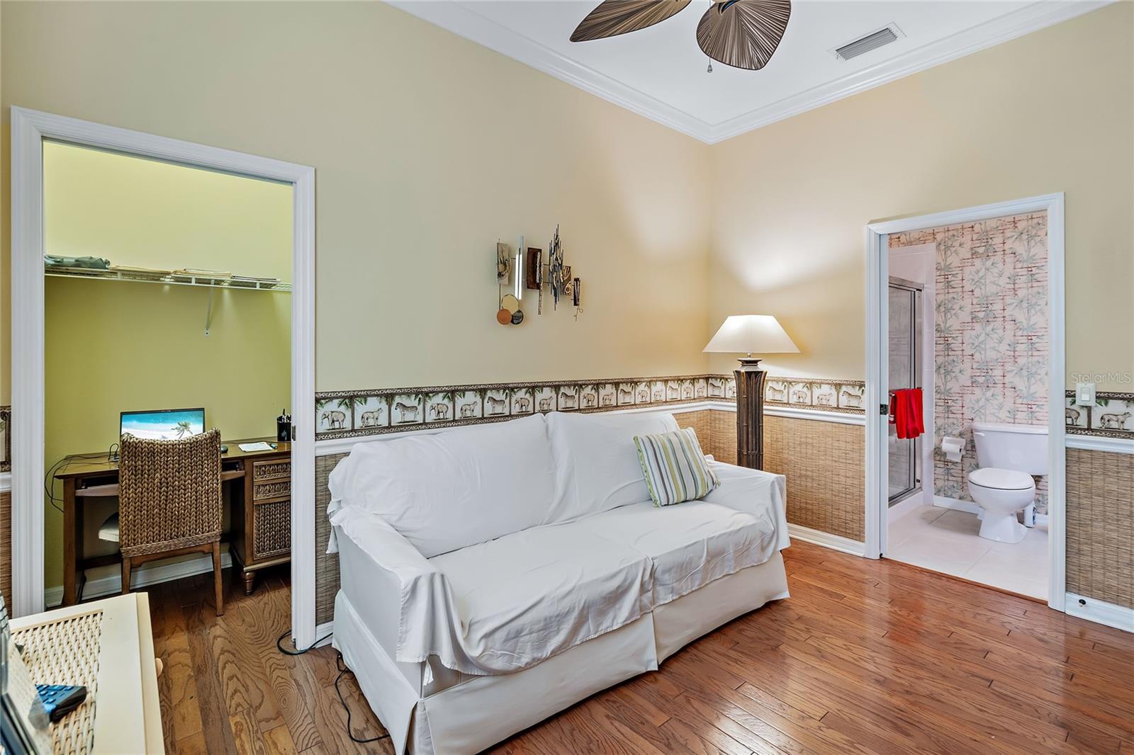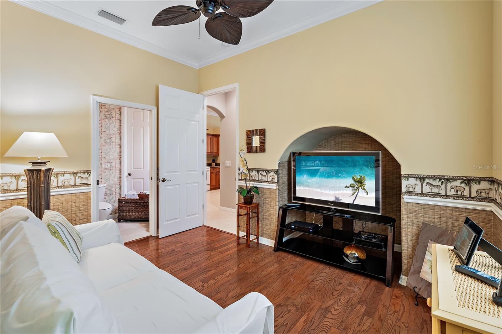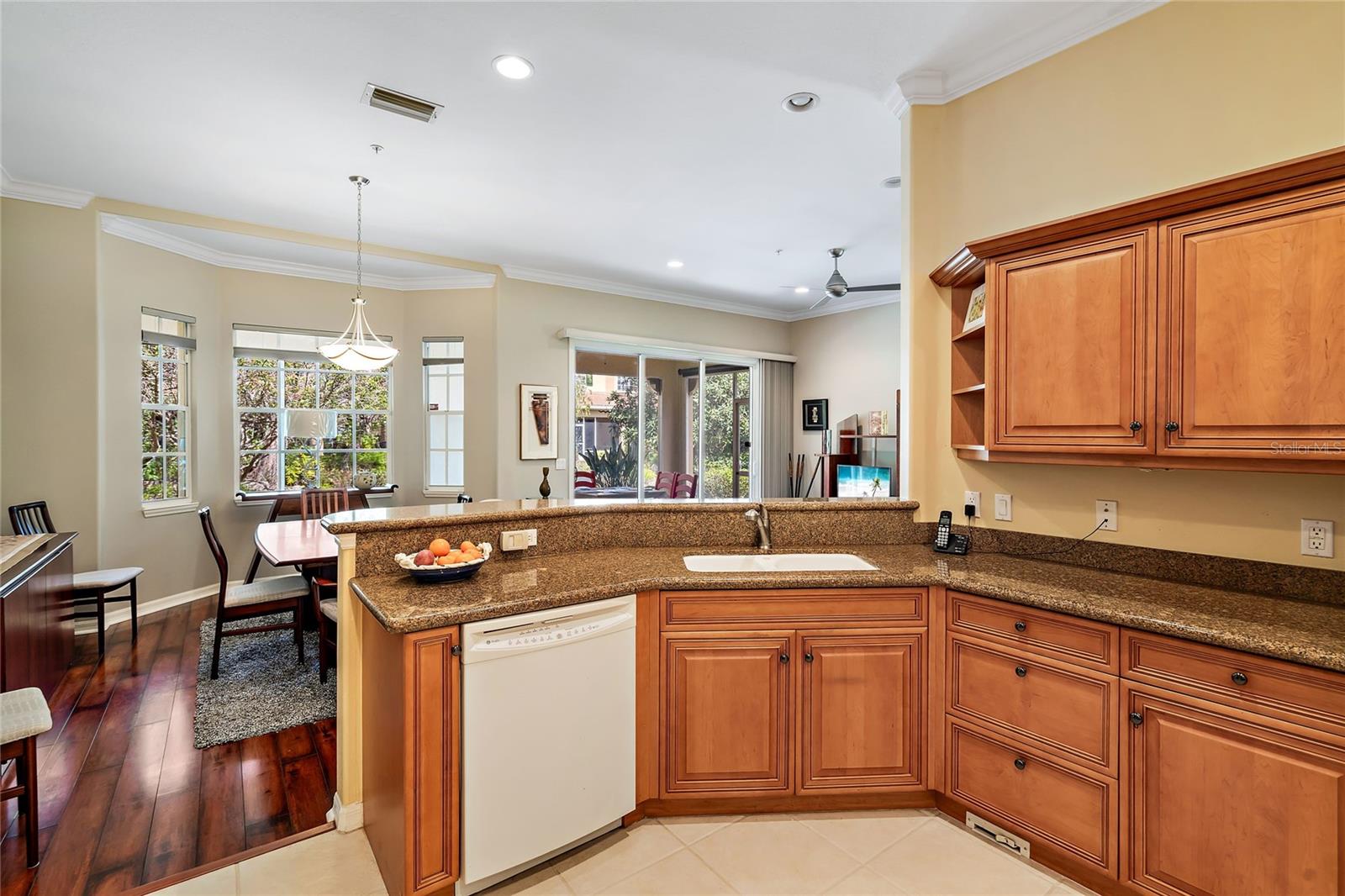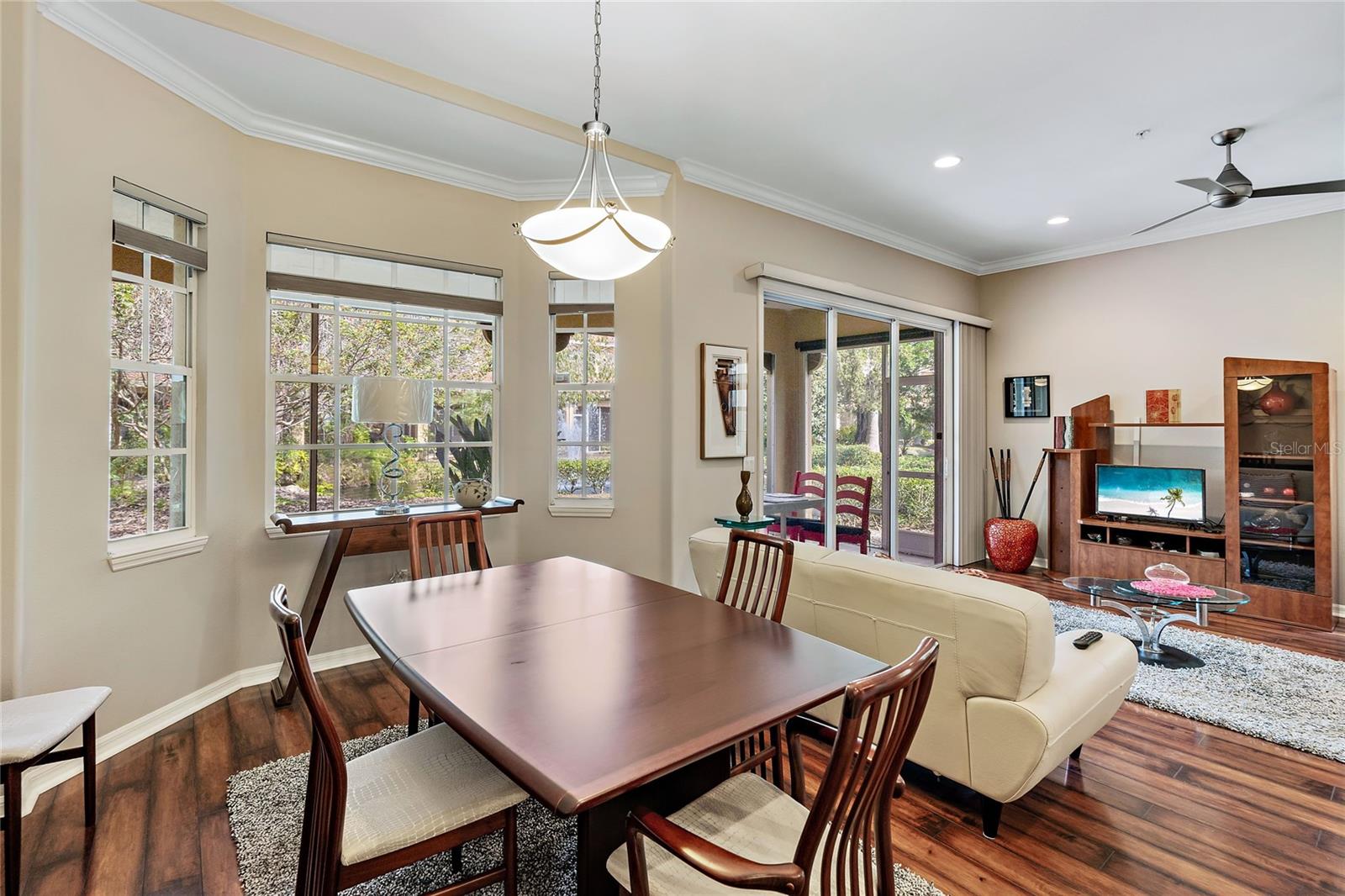 Great opportunity to live in Palmer Square West this turn-key elegantly appointed and nothing missed with a rare 2 car garage townhome. South Sarasota townhome just minutes from the #1 beach in the world! Cathedral and tray ceilings, crown molding with details only this home could display. The large kitchen displays granite countertops and wood cabinets. This is a maintenance free lifestyle featuring brick paver driveway and walkway, newly installed barrel tile roof, community with a beautiful pool and spa both newly resurfaced. This home features two spacious owner suites with ensuite baths and walk in closets. On the 2nd level all new Life-Proof, waterproof Luxury Vinyl Plank flooring, freshly painted and a 2023 new ac system. The third bedroom/den is on the first level which one can use as a home office/den or a 3rd bedroom. The screened lanai overlooks lush landscaping for privacy and beautiful water fountain with peaceful and tranquil water views. Perfect for an afternoon book, morning coffee or relaxing in the evening. Premier location near the Gulf of Mexico, golf, shopping, etc. Walk to Costco, movies, dinner, etc. All windows replaced with PGT 5500. impacted windows EXCEPT dining room window and sliding glass door.
