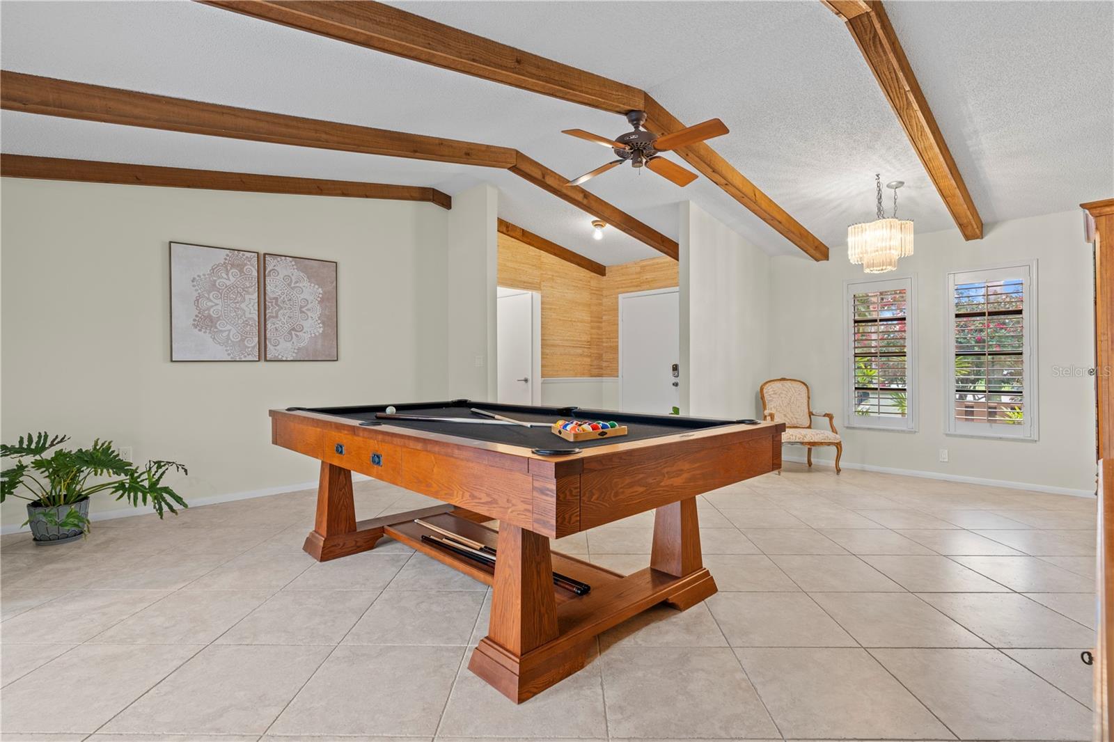 Nestled in the picturesque neighborhood of Beneva Pines, this charming home boasts a superb location in south Sarasota. Spanning a generous 2,128 square feet, it's light and airy design radiates warmth and comfort from the moment you step inside. Upon entering, you'll be welcomed by a delightful great room adorned with wood-beamed vaulted ceilings. The one-level split floor plan ensures functionality, featuring 3 bedrooms and 2 full bathrooms. The primary bedroom offers a tranquil retreat, complete with dual closets, a private lanai entrance, and a renovated bathroom. Across the house, 2 well-sized bedrooms provide privacy and comfort for family members or guests. The kitchen, outfitted with granite countertops, seamlessly merges with the open-concept living room, creating a welcoming space for gatherings. Step outside to explore the beautiful backyard, sprawling across a 0.36-acre lot adorned with mature trees. Additional highlights of this residence include front-loading washer and dryer appliances, Luxury Vinyl Plank flooring, and porcelain tile throughout. Situated in the sought-after Riverview School District and just 5 miles from the pristine shores of Siesta Key Beach, this home epitomizes convenience. With its prime location, desirable features, and undeniable appeal, this property is sure to captivate discerning buyers and won't remain on the market for long. Don't miss out on the opportunity to make this your own slice of paradise!