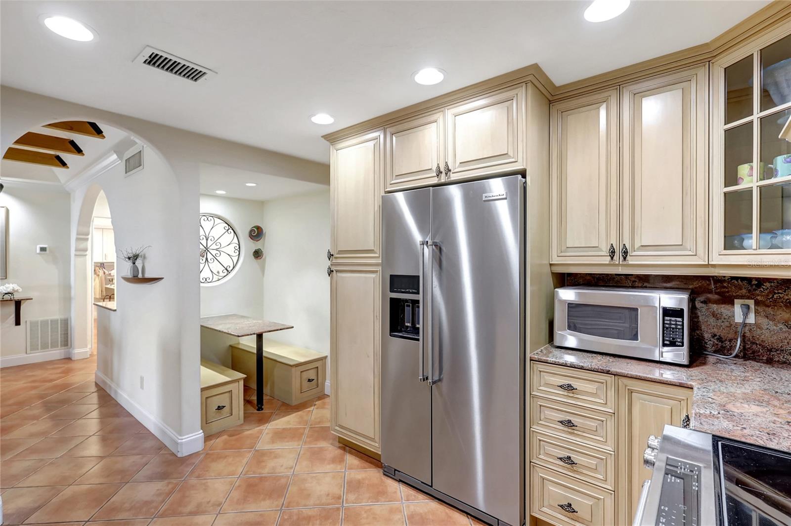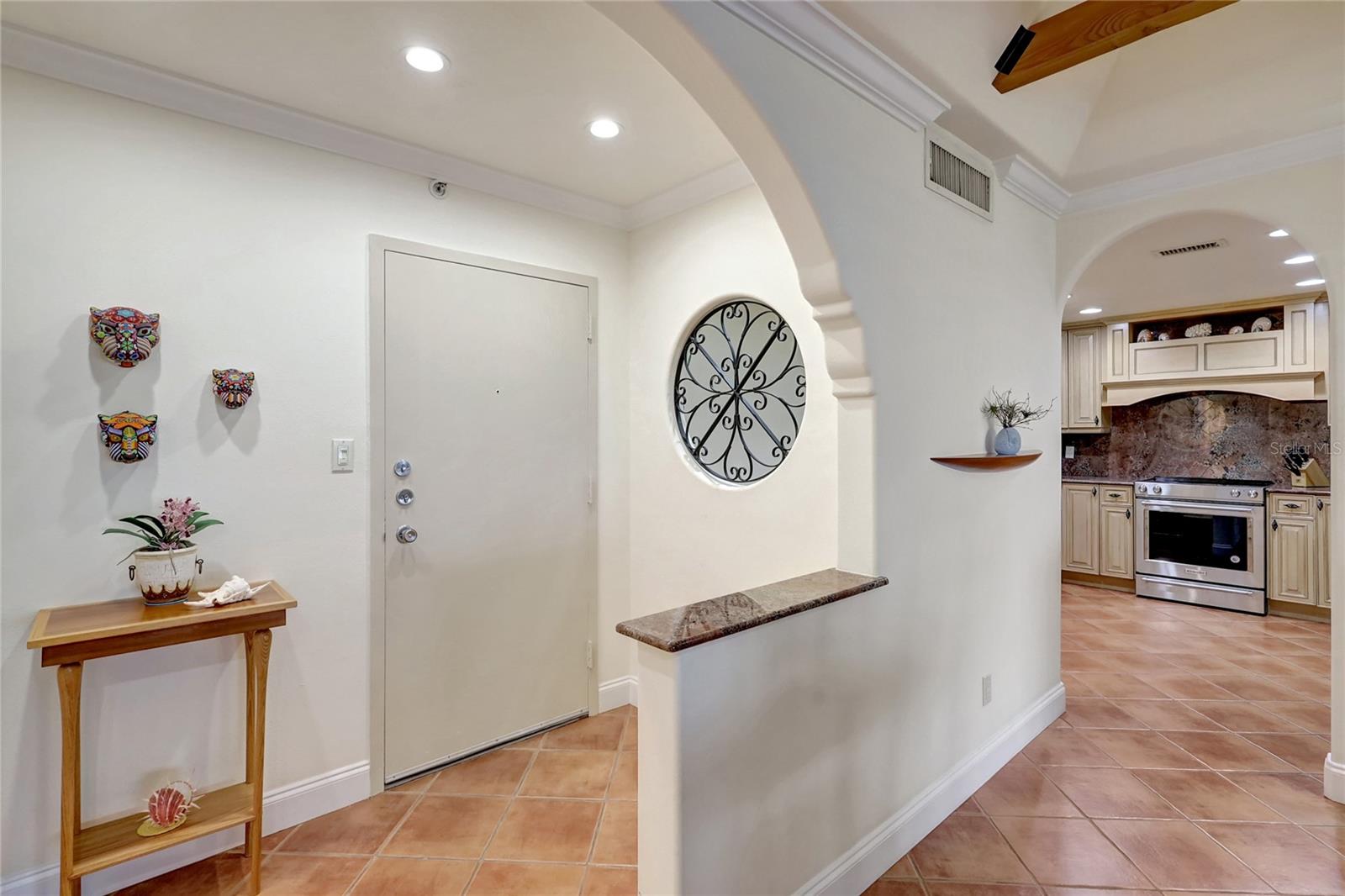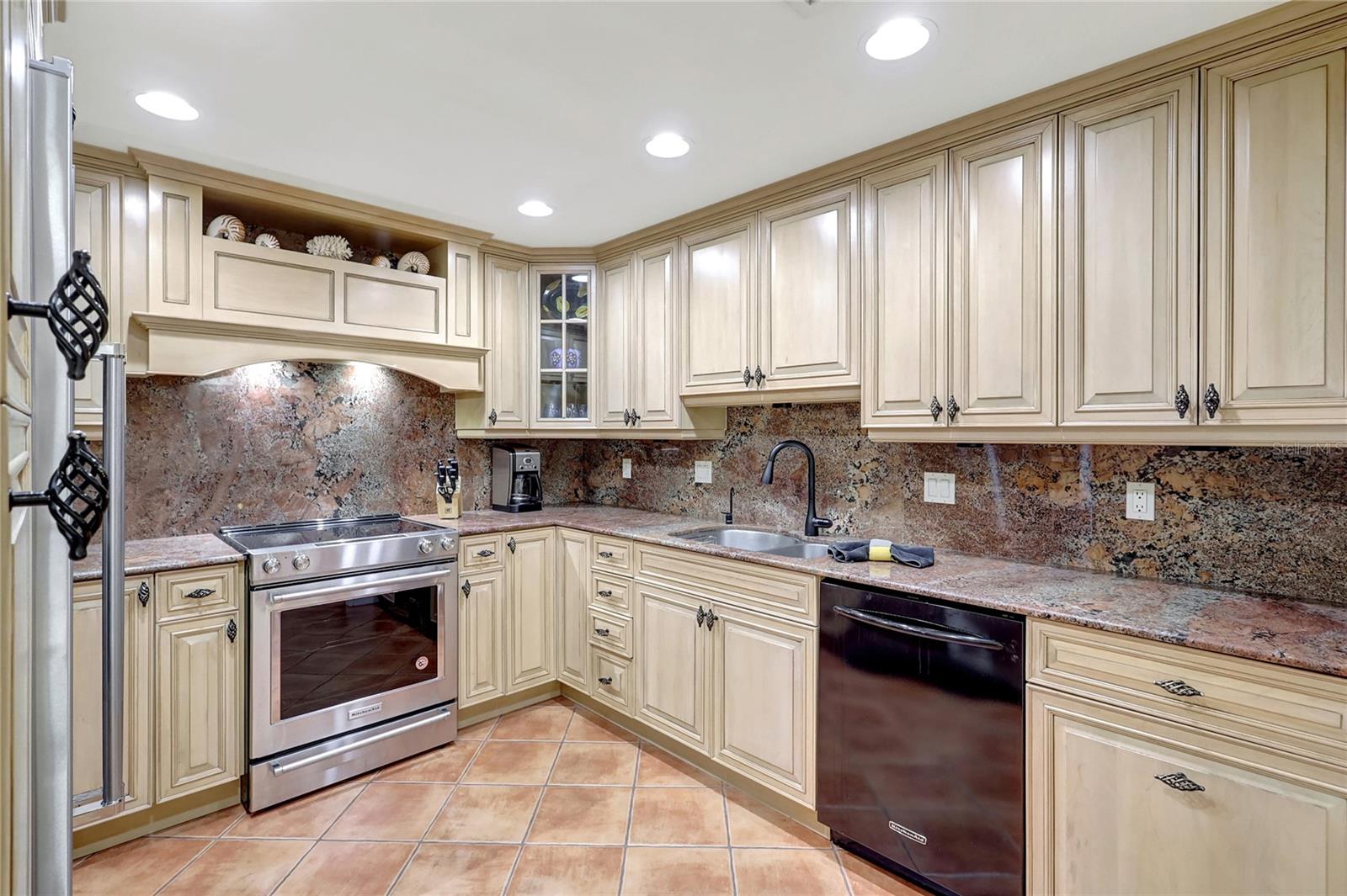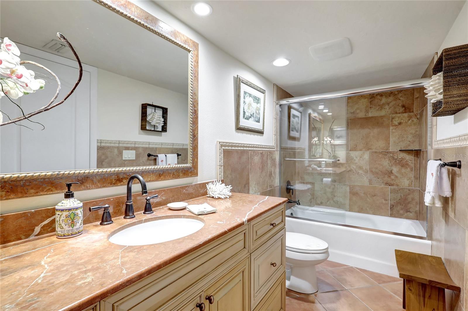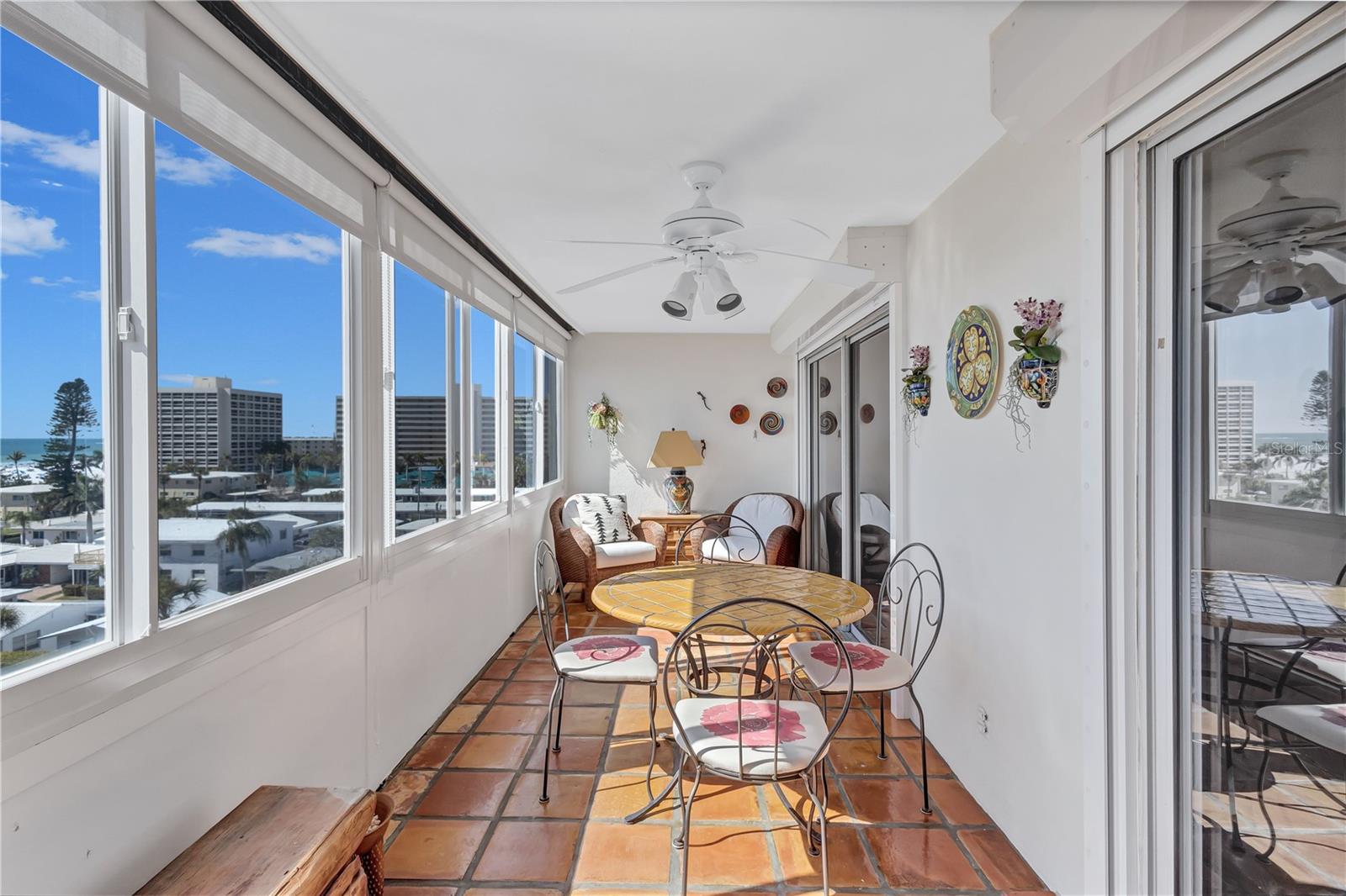 PRICE IMPROVEMENT! Stunning Siesta Key Beach, Pond, Gulf & sunset Views! This distinctive 2-bedroom, 2-bath condo on the 5th floor boasts a Spanish architectual influence with a unique coffered beam ceiling in the living room and arched doorways. Enjoy gulf & beach views from the lanai, primary bedroom, guest bedroom, and living room. The interior includes split bedrooms, a spacious living room, and dining area. The primary bedroom features a walk-in closet, while the en-suite bathroom showcases custom cabinets and granite countertops. The guest bathroom offers a walk-in shower, custom wood cabinets, and a granite countertop. Throughout the condo, you'll find tile flooring and crown molding, impact hurricane-rated windows, a 2019 AC unit, and a 2018 tankless water heater. The kitchen is well-appointed with custom wood cabinets, granite countertops, stainless steel appliances, and a built in dining area with a large table. Accommodate your family and friends with the expansive enclosed lanai, offering extra seating, office space, and sleeping arrangements for guests. Sold fully furnished, the condo includes a large laundry room with ample storage cabinets and a full-sized washer and dryer. Benefit from private covered parking space #506 in the under-building garage, complete with a storage bin for beach chairs and toys. Situated within the 16-acre Peppertree Gulf-to-Bay community, enjoy a wealth of amenities including a private beach with chairs, 2 heated pools, 2 clubhouses, multiple BBQ areas, fitness center, sauna, tennis/pickleball courts, and a fishing pier. This secure midrise condo is conveniently located just 78 steps from the beach. On-site management & rental services are available. Explore the village via trolley for local shopping, dining, and entertainment. This piece of paradise is perfect for creating lasting memories with your loved ones. Immerse yourself in Sarasota's arts and culture with this furnished beachfront condo ready for immediate occupancy. Let the adventures unfold.