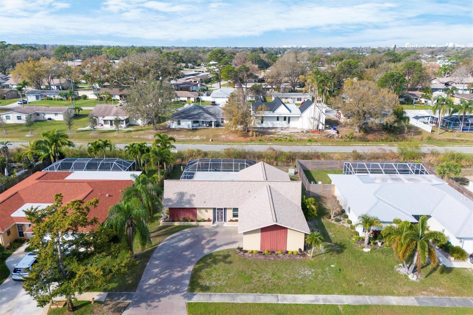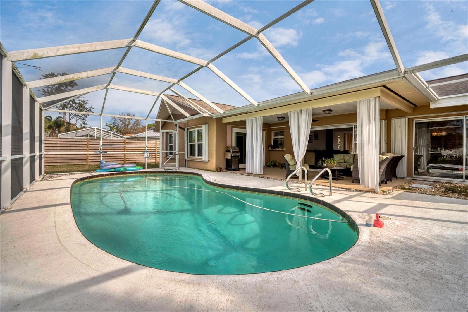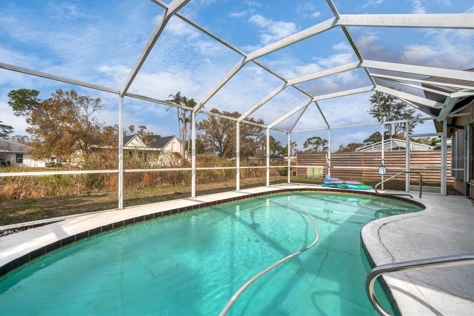 This 4BR split level pool home boasts, a modern flare with neutral colors throughout, upgraded vanity in the master bath, many updated lighting fixtures, ceiling fans, stainless steel appliances with trendy backsplash and a feature wall with an electric fireplace. Great home for entertaining or family gatherings. Embrace the beautiful Florida lifestyle from the large lanai or just spend time relaxing in the pool. If you have pets they will have fun playing in the large lot or basking in the sun. New Roof in 2023, A/C is approximately 6 years old. Tamaron is a well established community of approximately 500 homes, low HOA dues, sidewalks, a preserve, and ponds. Conveniently located to shopping, restaurants, grocery stores and I-75.
