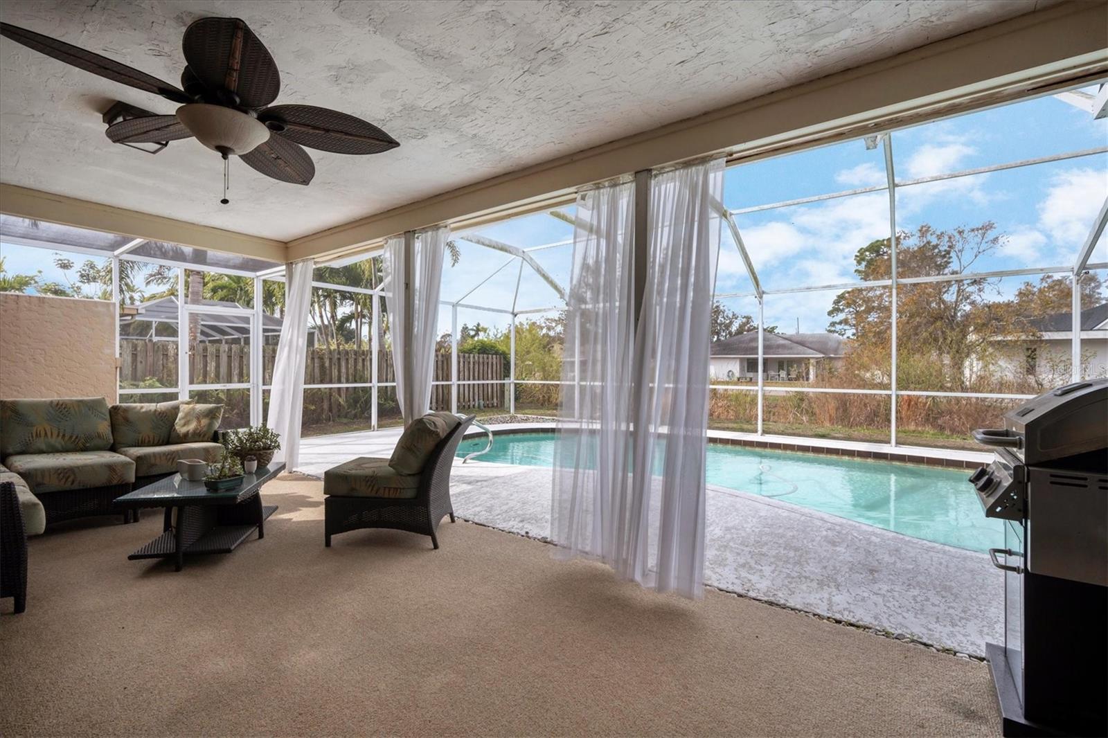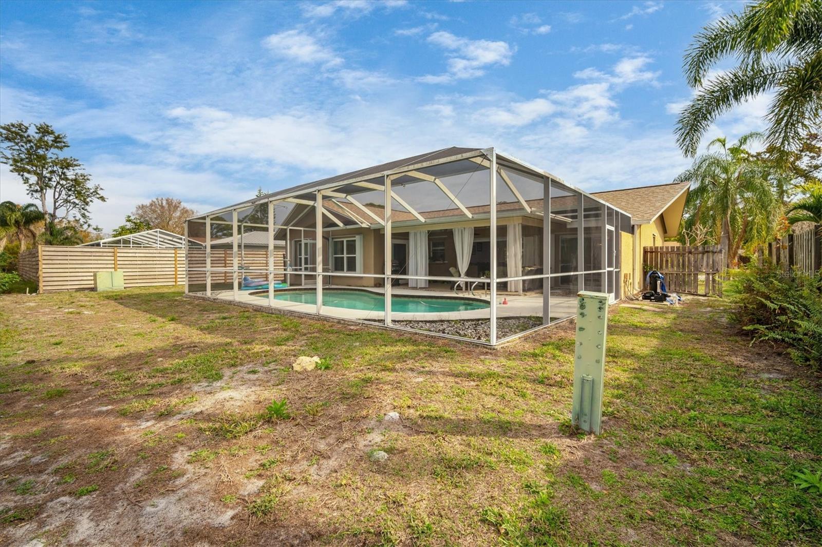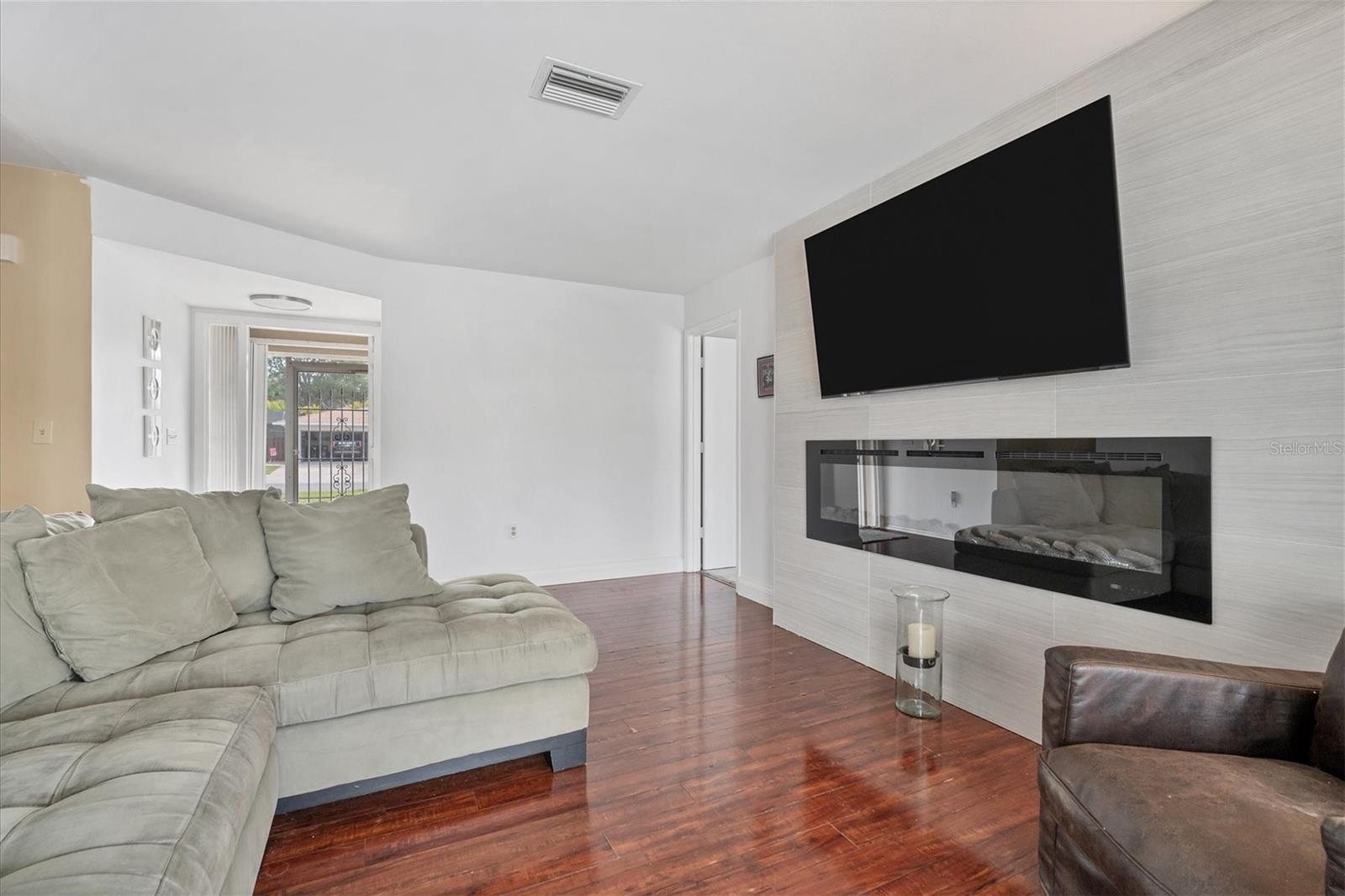 This 4BR split level pool home boasts, a modern flare with neutral colors throughout, upgraded vanity in the master bath, many updated lighting fixtures, ceiling fans, stainless steel appliances with trendy backsplash and a feature wall with an electric fireplace. Great home for entertaining or family gatherings. Embrace the beautiful Florida lifestyle from the large lanai or just spend time relaxing in the pool. If you have pets they will have fun playing in the large lot or basking in the sun. New Roof in 2023, A/C is approximately 6 years old. Tamaron is a well established community of approximately 500 homes, low HOA dues, sidewalks, a preserve, and ponds. Conveniently located to shopping, restaurants, grocery stores and I-75.