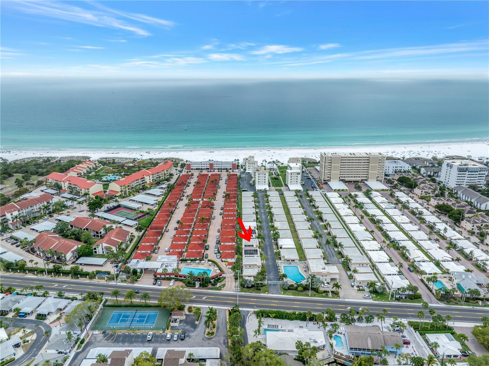 Located within the meticulously maintained complex of Island House, this expansive 2-bedroom, 2-bath villa, spanning approximately 1000 sq. ft. A haven of modernity, it boasts a spacious living area, dining enclave, and fully equipped kitchen, adorned with the latest stainless steel appliances. One bathroom was beautifully renovated as of May 2023. This residence features a lanai that is perfect for basking in the serene surroundings. Beyond the villa's allure, discover covered parking, central air/heat, and an array of continuously updated furnishings. Unveiling itself just steps away from the crystalline waters of the Gulf of Mexico and a refreshing in community pool, this residence is a gateway to breathtaking sunsets. Within the complex, relax with beach cabanas, a large heated swimming pool, game room, shuffleboard, and a captivating beachfront courtyard. With an array of activities like golfing, fishing, boating, and parasailing nearby, coupled with proximity to shops, restaurants, and galleries, this is not just a residence but a gateway to an enchanting coastal lifestyle. Book today for your private showing!