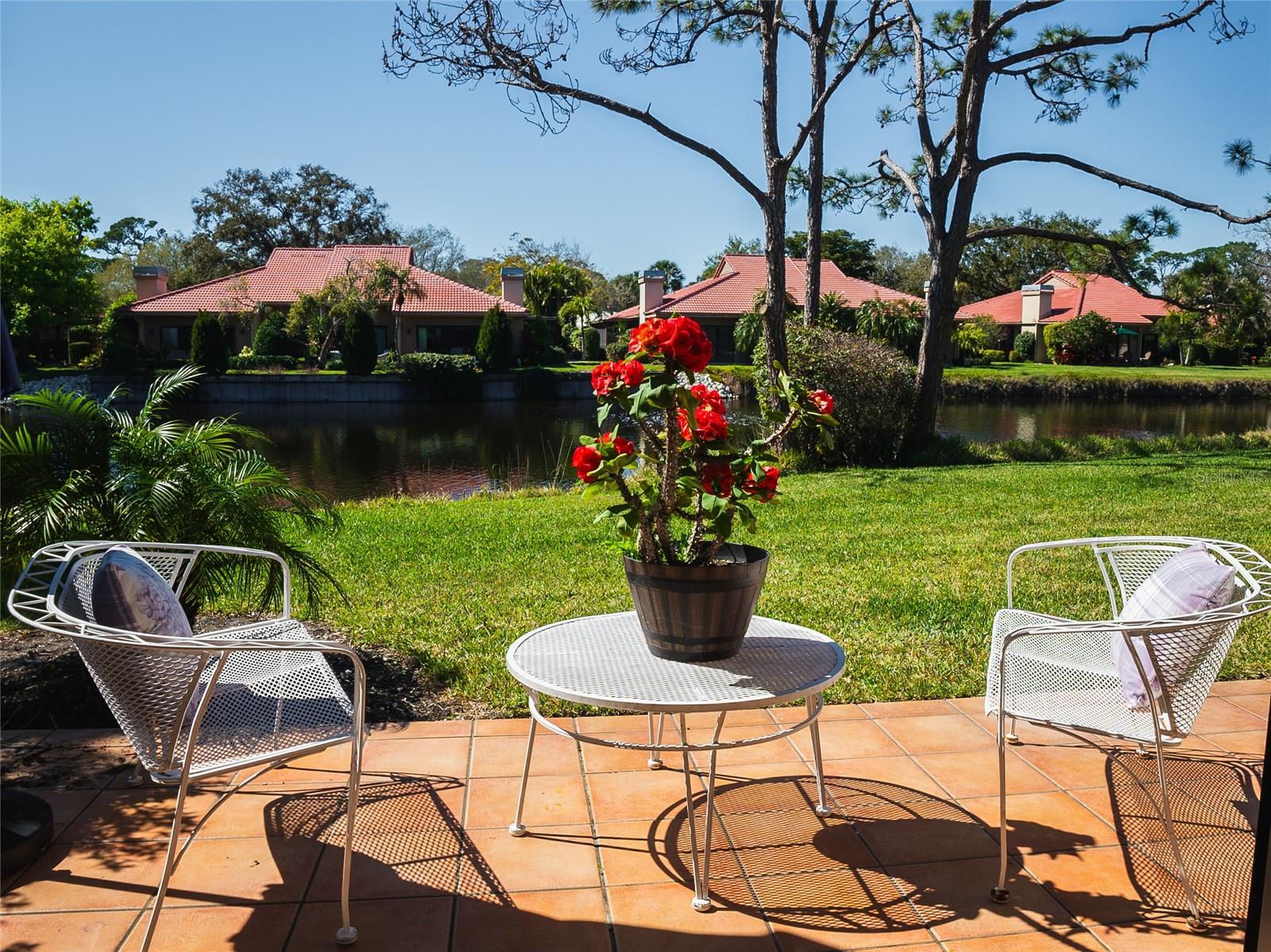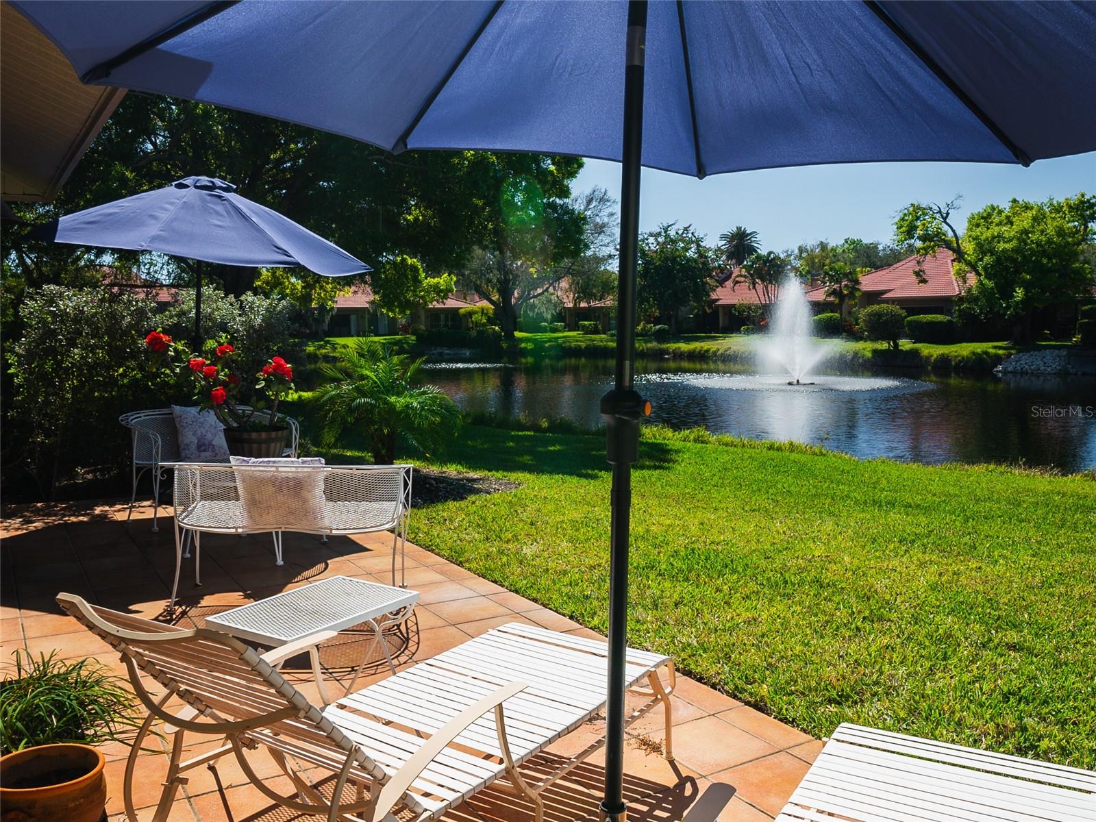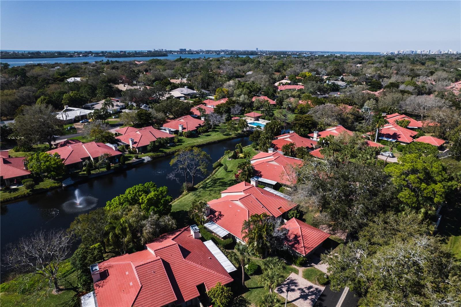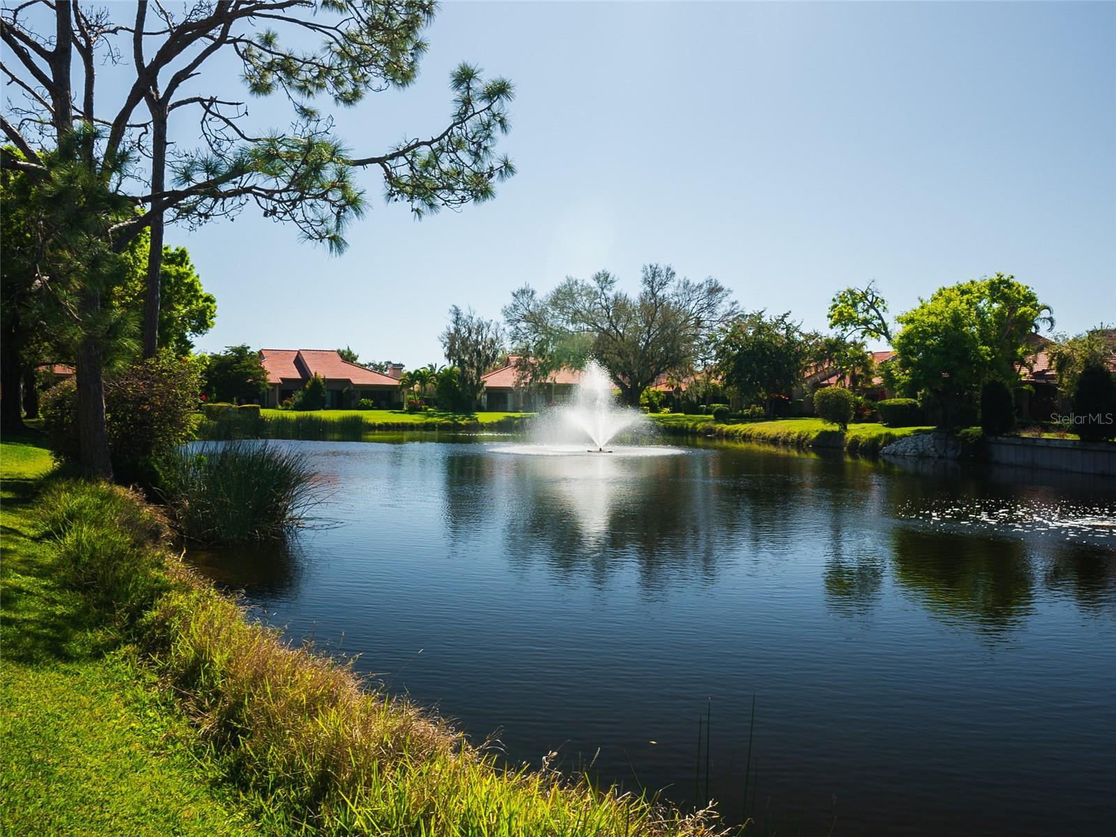 HUGE PRICE REDUCTION!!!! DO NOT MISS OUT ON THIS DEAL!!! This Landings Carriage house villa has a breathtaking water view looking at the wide stretch of the lake and fountain. The unit is nestled among beautiful landscaping and mature trees with a soothing and peaceful setting. A very spacious 2 bedroom, 2 bathroom with high ceilings and crown molding. Large living room with a wood burning fireplace looks onto the patio with the fabulous lake and fountain view. Separate dining area with lovely wood and eat in kitchen that opens onto a private courtyard. Enclosed Florida room give you you more space foe a bonus room. An amazing west of the trail gated community location allows you to indulge in a fantastic Florida lifestyle. Close to Siesta Keys beautiful award winning beaches, minutes from downtown, convenient shopping and restaurants nearby. Enjoy the private community pool, mature tree lined streets, and nature trail leading to dock on the Intracoastal Waterway. Optional Membership to The Landings Racquet Club available which features clay tennis courts, pickle ball, fitness, pool, spa, and social activities. For additional bonuses the roof was replaced in 2023 and the roads where just replaced in 2024!
