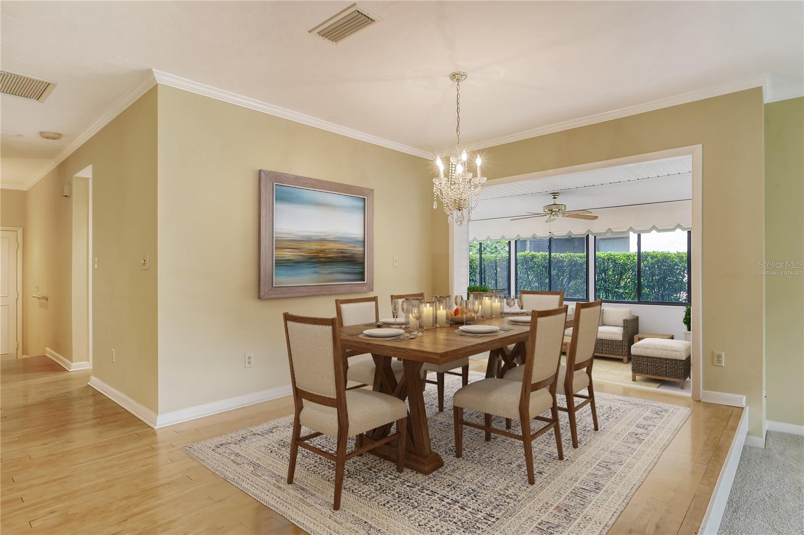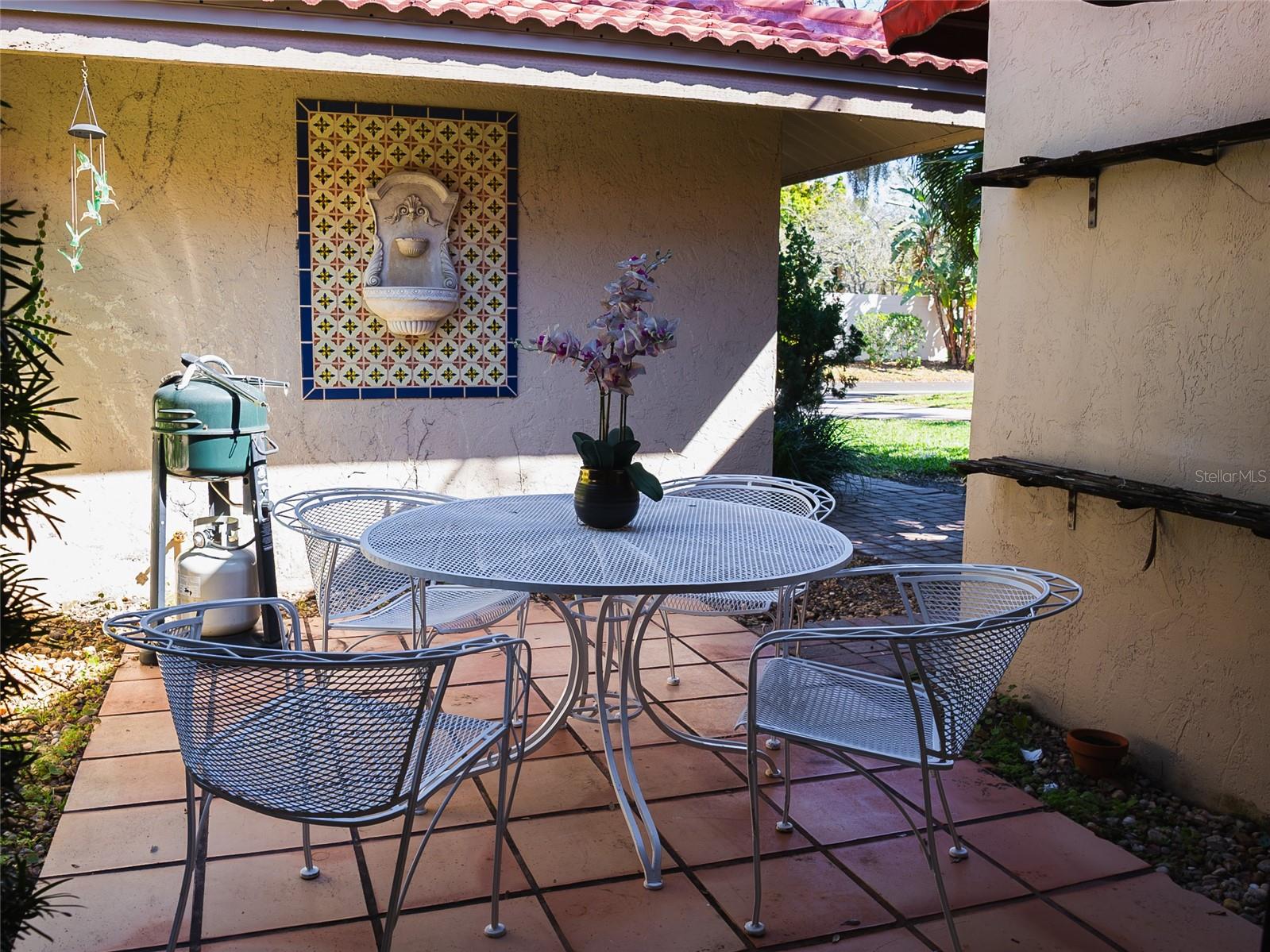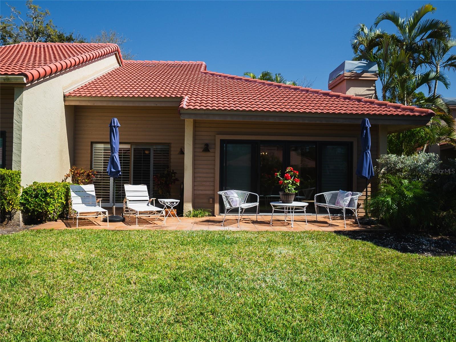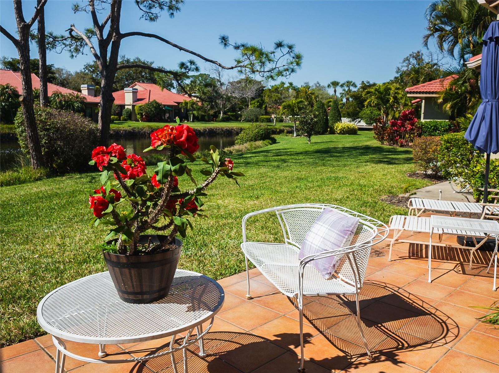 HUGE PRICE REDUCTION!!!! DO NOT MISS OUT ON THIS DEAL!!! This Landings Carriage house villa has a breathtaking water view looking at the wide stretch of the lake and fountain. The unit is nestled among beautiful landscaping and mature trees with a soothing and peaceful setting. A very spacious 2 bedroom, 2 bathroom with high ceilings and crown molding. Large living room with a wood burning fireplace looks onto the patio with the fabulous lake and fountain view. Separate dining area with lovely wood and eat in kitchen that opens onto a private courtyard. Enclosed Florida room give you you more space foe a bonus room. An amazing west of the trail gated community location allows you to indulge in a fantastic Florida lifestyle. Close to Siesta Keys beautiful award winning beaches, minutes from downtown, convenient shopping and restaurants nearby. Enjoy the private community pool, mature tree lined streets, and nature trail leading to dock on the Intracoastal Waterway. Optional Membership to The Landings Racquet Club available which features clay tennis courts, pickle ball, fitness, pool, spa, and social activities. For additional bonuses the roof was replaced in 2023 and the roads where just replaced in 2024!