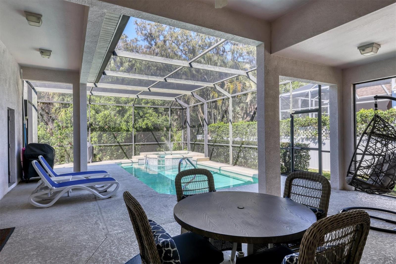 Welcome to the Carlyle Community of The Villages at Palm Aire! This wonderful 4-BEDROOM, PLUS DEN, 3 BATH HOME provides AMPLE SPACE for comfortable living and entertaining. With a few personalized upgrades, this easily becomes your dream home. Step inside the foyer with 13' CEILING to discover an open floor plan, including a large formal dining room, ideal for hosting gatherings and special occasions. The inviting family room features a wood-burning FIREPLACE, adding warmth and charm. The airy kitchen, equipped with NEWER APPLIANCES, offers a full view to the family room and to the pool. Enjoy casual dining at the breakfast nook. Escape to your own private oasis with a large, RESCREENED POOL AND SPA area, ideal for relaxation and recreation. The NEWER POOL HEATER ensures year-round enjoyment! Backing onto a peaceful preserve, your privacy is greatly enhanced. This home boasts a NEW ROOF installed in 2023, offering exceptional wind resistance of up to 160 miles per hour. Other recent upgrades include a newer A/C system (2021), ensuring optimal comfort and efficiency. Residents of Carlyle enjoy access to a range of amenities, including a community pool, pickleball and tennis courts, and a clubhouse. Experience resort-style living right at your doorstep. Conveniently located near the UTC Mall, Lakewood Ranch, and just a short drive away from the pristine shores of Siesta Key Beach, this home offers easy access to shopping, dining, entertainment, and outdoor recreation. Don't miss your chance to own this exceptional home in one of Palm Aire's most desirable neighborhoods.