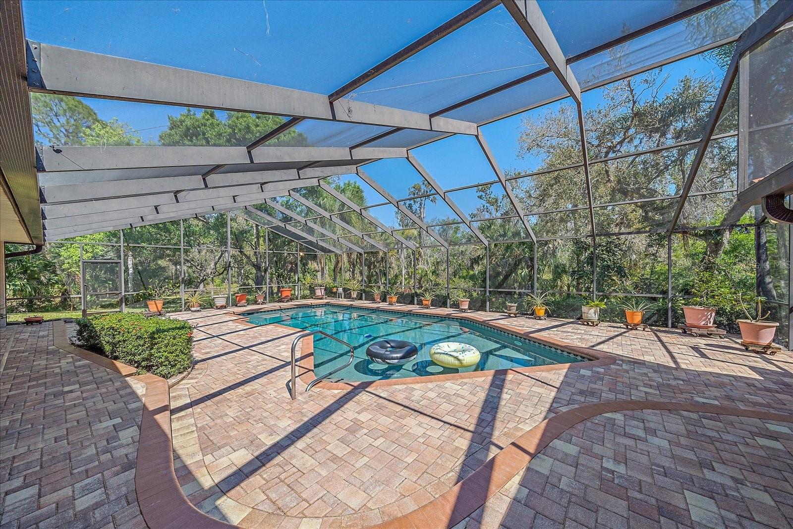 MOTIVATED SELLER! This is your opportunity to own a true estate. From the moment you turn onto the nature-lined private drive that delivers you to the expansive driveway, you'll know you've found a special sanctuary. This home was quality built and lovingly maintained for the last 40 years by the original owners. Over 4000 square feet of living space situated on 10+ tree filled acres. The large master bedroom is downstairs and has 2 walk-in closets with access to a private patio. The master bathroom has both a step in shower and gi-normous spa tub. The guest bedrooms are upstairs and each has a private en suite bathroom and walk in closets. There is a huge terrace off the guest bedrooms which would be perfect for roof top entertainment or private enjoyment. Besides the main kitchen with granite counters, there is an additional kitchen / laundry room with a walk-in pantry. The home is equipped with a Generac 14kw generator that will power all the essential items needed during a power outage. The office and game room are downstairs. The screened-in enclosure allows for year round enjoyment of the self cleaning, Pebble Tec finish, heated swimming pool, paver patio and outdoor kitchen. The garage has room for 2 cars and an airplane or several more cars, boats, toys, whatever your heart desires. Check out the floor plan for dimensions. The center beam of the hanger portion of the garage folds up allowing for 40 feet wide and 10 feet tall unobstructed entry. Hidden River is the only "fly in" community with a paved runway in South West Florida. Not everyone has an airplane as there are so many other wonderful qualities to living here, including social events at the community clubhouse, fishing, horse trails and country hospitality. There isn't enough room to describe all the many features of this home and that's ok because you should come and see it for yourself how amazing it is. Make your appointment today! House is high and dry, no flooding or damage from recent hurricanes.