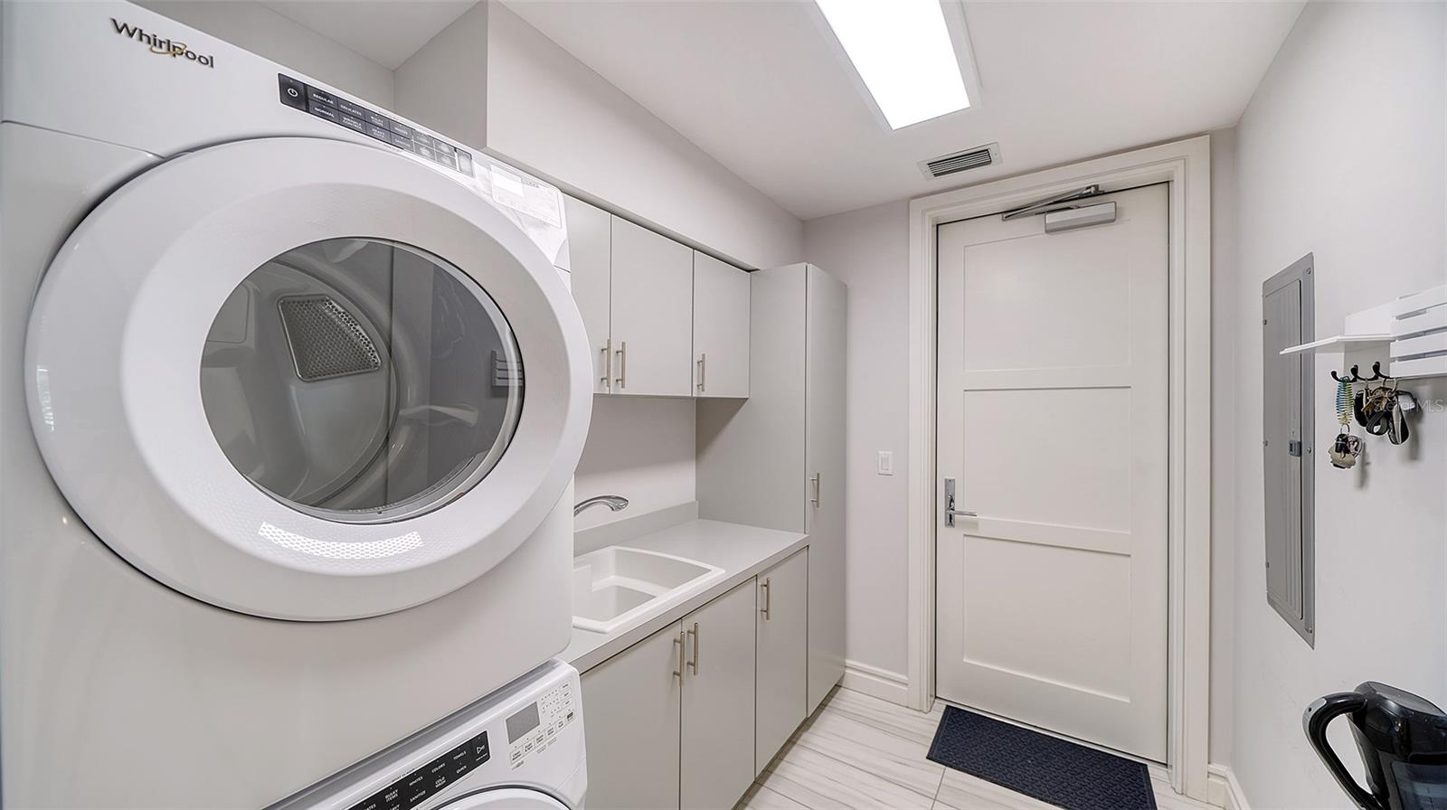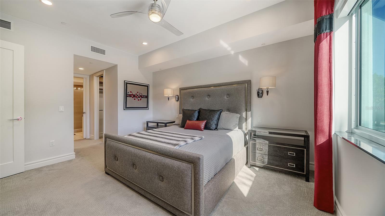 Experience the epitome of contemporary urban living along the coveted Palm Avenue in downtown Sarasota. This meticulously maintained 3-bedroom, 3-bathroom residence is nestled within the recently constructed 7 One One Palm, offering a peaceful retreat while being centrally located. Step inside to an open floor plan adorned with Zebrino Michelangelo Porcelain flooring, 10-foot ceilings, and floor-to-ceiling sliders that fill the space with natural light. The sleek gourmet kitchen features Bosch appliances, including a 5-burner gas range, Cucine Ricci Italian Cabinetry, Insinkerator, reverse osmosis water filter, and large island.Take advantage of the spacious west-facing terrace, the largest in the building, offering a peek-a-boo bay view and an extension of your living space. Unwind in the master suite, complete with a spa-like ensuite boasting double vanities, an oversized walk-in shower, and his and her walk-in closets upgraded with shelving, pull -outs, and jewelry drawers. Additional highlights include a dedicated laundry room with Whirlpool stackable washer & dryer and oversized sink, Hansgrohe plumbing fixtures throughout, "Smart Home" technology to control lighting and shades, secure air-conditioned storage, and two dedicated garage parking spaces. Residents of 7 One One Palm enjoy resort-style amenities, including a private Palm Terrace with an oversized pool, spa, cabanas, firepit and gas grills. With a part-time concierge, fitness facility, and package room, every need is effortlessly catered to. Plus, being pet-friendly ensures that furry companions can share in the downtown Sarasota lifestyle. Conveniently located just steps away to Selby Gardens, Marina Jacks, and an array of dining options, cafes, and parks, this condo offers the perfect blend of urban convenience and tranquility. Situated within a boutique residence of just 16 units, residents can enjoy a sense of privacy and exclusivity. Minutes from Lido Beach and St. Armands Circle, and close to Legacy access points, the best of Sarasota's beaches and outdoor recreation are right at your fingertips. Bedroom Closet Type: Walk-in Closet (Primary Bedroom).