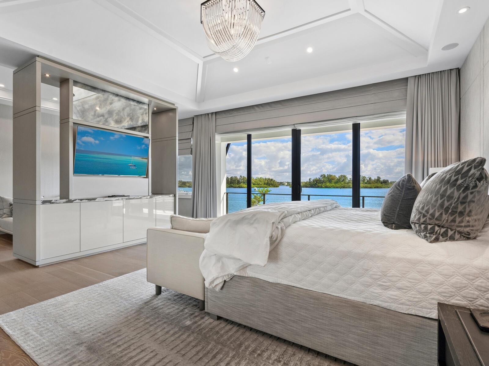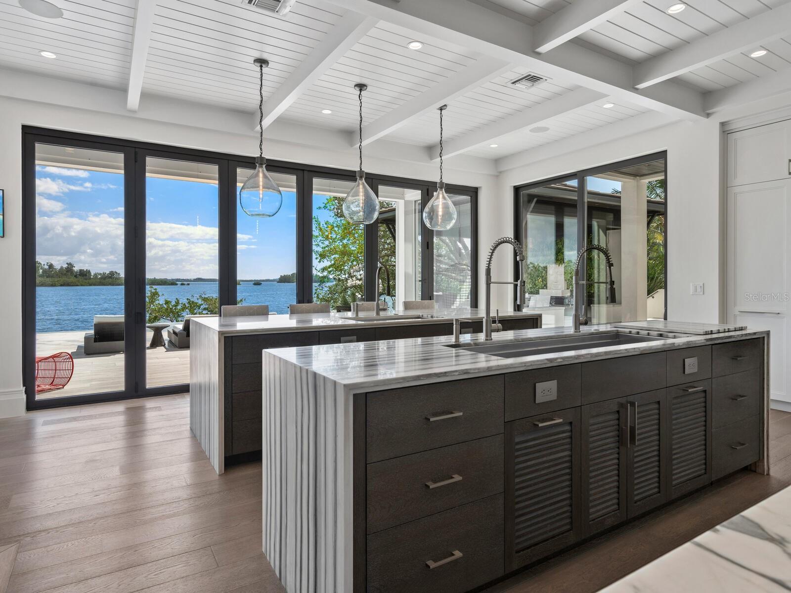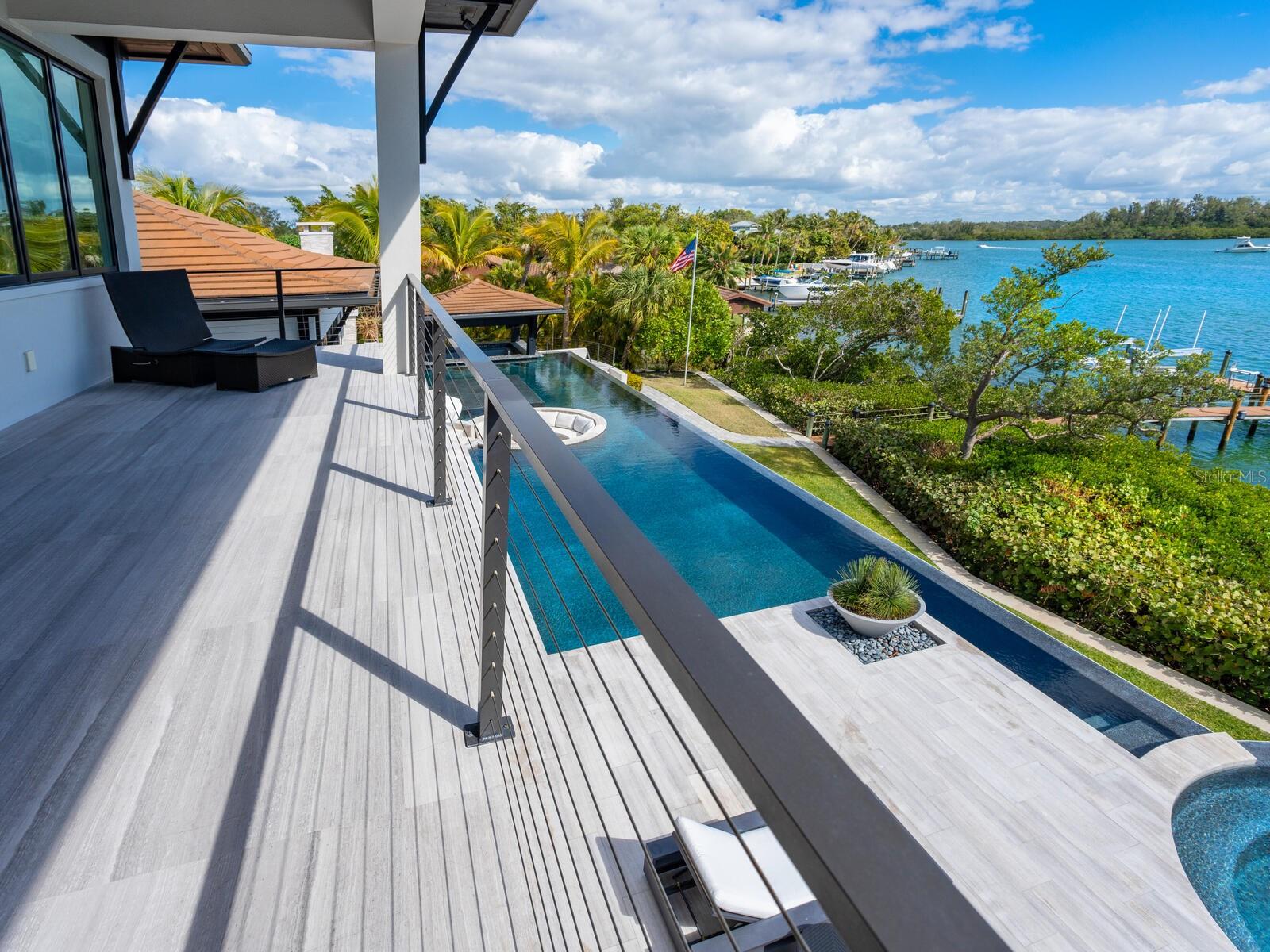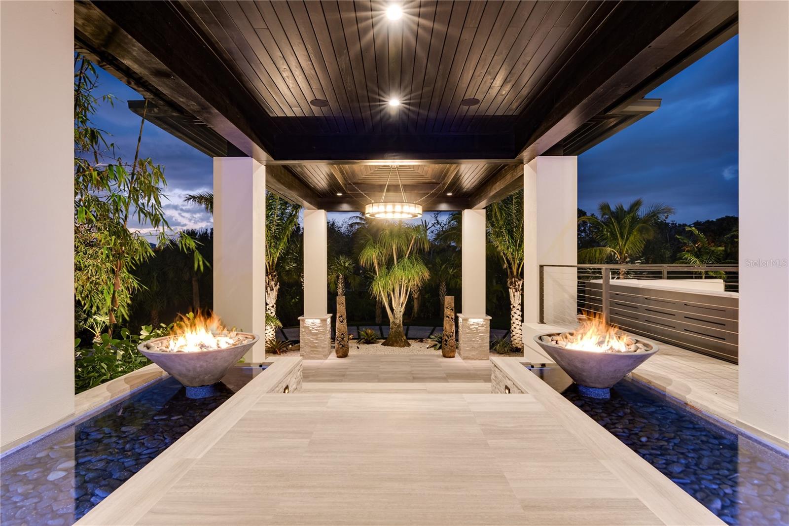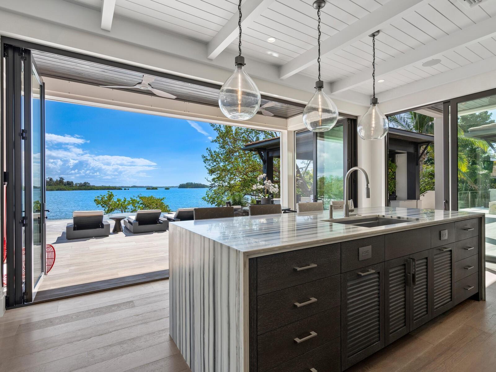 Relax and take in the positive energy of Lotus-style living in this one-of-a-kind Balinese-inspired resort compound on the north end of the world-famous Siesta Key. Nothing is needed to begin your Zen journey as the property comes completely furnished down to dishes, silverware and a Buddha living wall. The true coexistence of indoor and outdoor space blends over 8,000 square feet of indoor space with thousands of square feet of patio and pool area. An outdoor oasis offering an infinity-edge pool with a swim-up bar, a sunken fire pit lounge within the pool, a spa, an outdoor kitchen, a dining pavilion with a living plant wall and an open-air living room with fireplace. A koi pond with stunning built-in footbridges stretches nearly the entire length of the home, enhancing the serene ambiance of the outdoor space. Spanning over an acre with more than 700 feet of waterfront, the property is a masterpiece of luxury, designed for effortless relaxed living or island-style entertaining. A custom-designed driveway welcomes you to a breathtaking entrance, where waterfalls and fire features set the tone for the experience that awaits inside. Expansive walls of glass, seamless indoor-outdoor transitions, and rich wood and stone flooring throughout create a striking, cohesive aesthetic. The thoughtfully designed interior boasts multiple living spaces, including a game room, home theater, fitness room, meditation space, and an impressive 8+ car garage. For the waterfront enthusiast, a well-equipped boat dock, a separate waterfront garage, and a paddleboard/canoe launch provide unparalleled access to the pristine waters. This exceptional residence also features a newer seawall, full-house generator, Crestron home automation, a 3-stop elevator, and a whole-house reverse-osmosis water filtration system, ensuring both convenience and peace of mind. A true island paradise, this estate offers unmatched privacy while remaining just moments from Sarasota’s vibrant shopping, dining, and world-renowned cultural attractions. Don’t miss this rare opportunity to own a move-in-ready masterpiece on Siesta Key – home to the #1 beach in the USA (Tripadvisor).