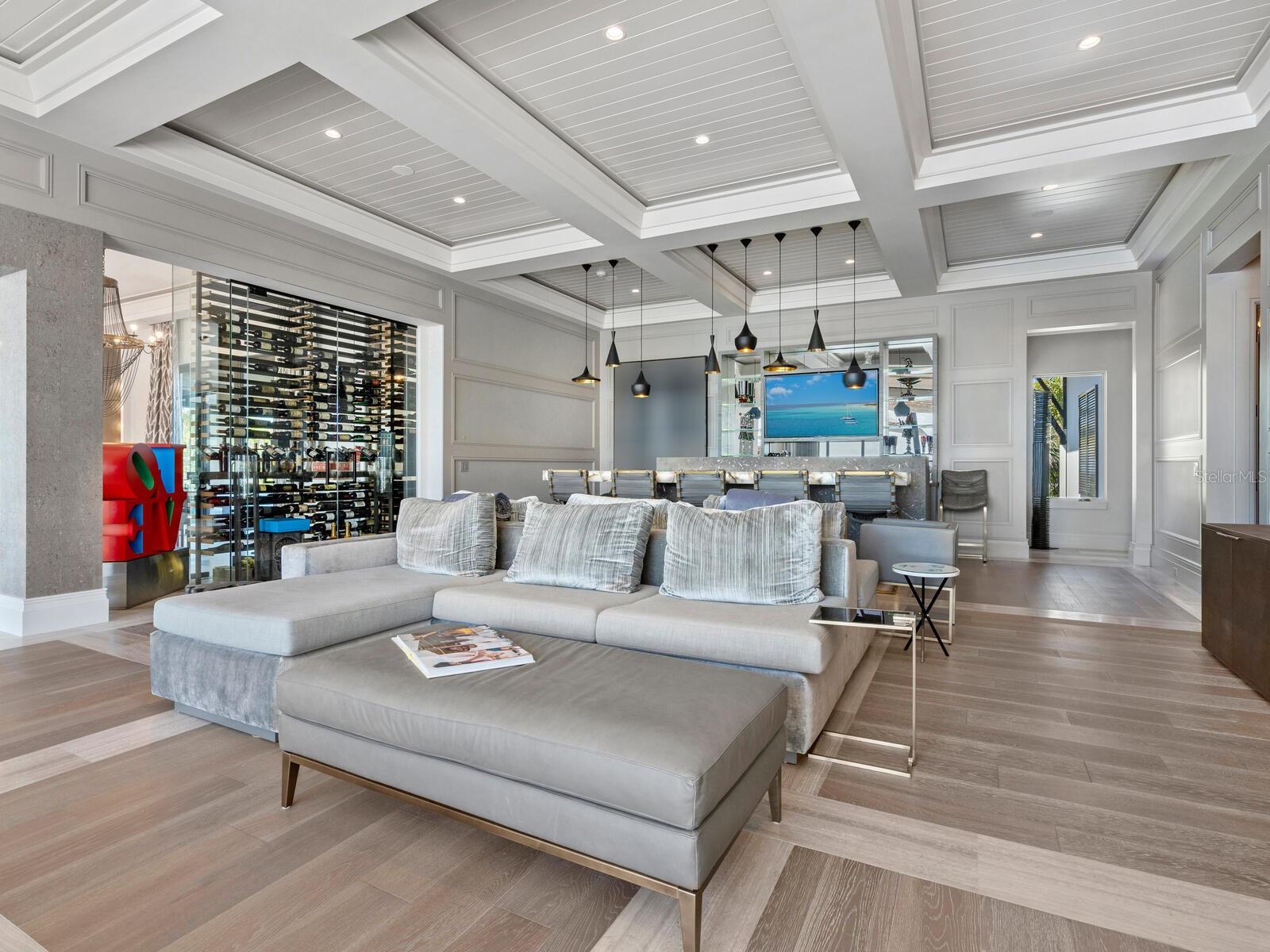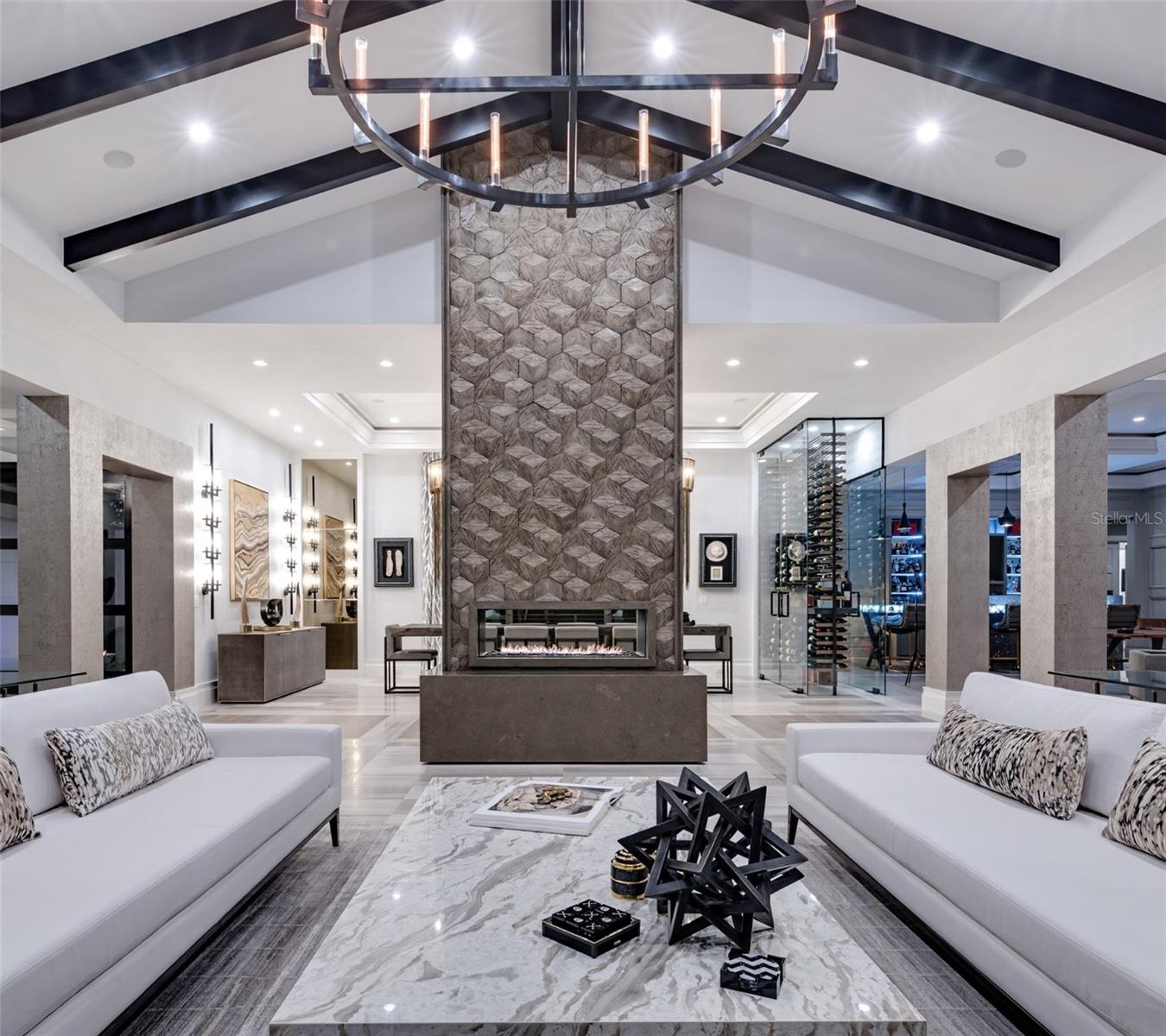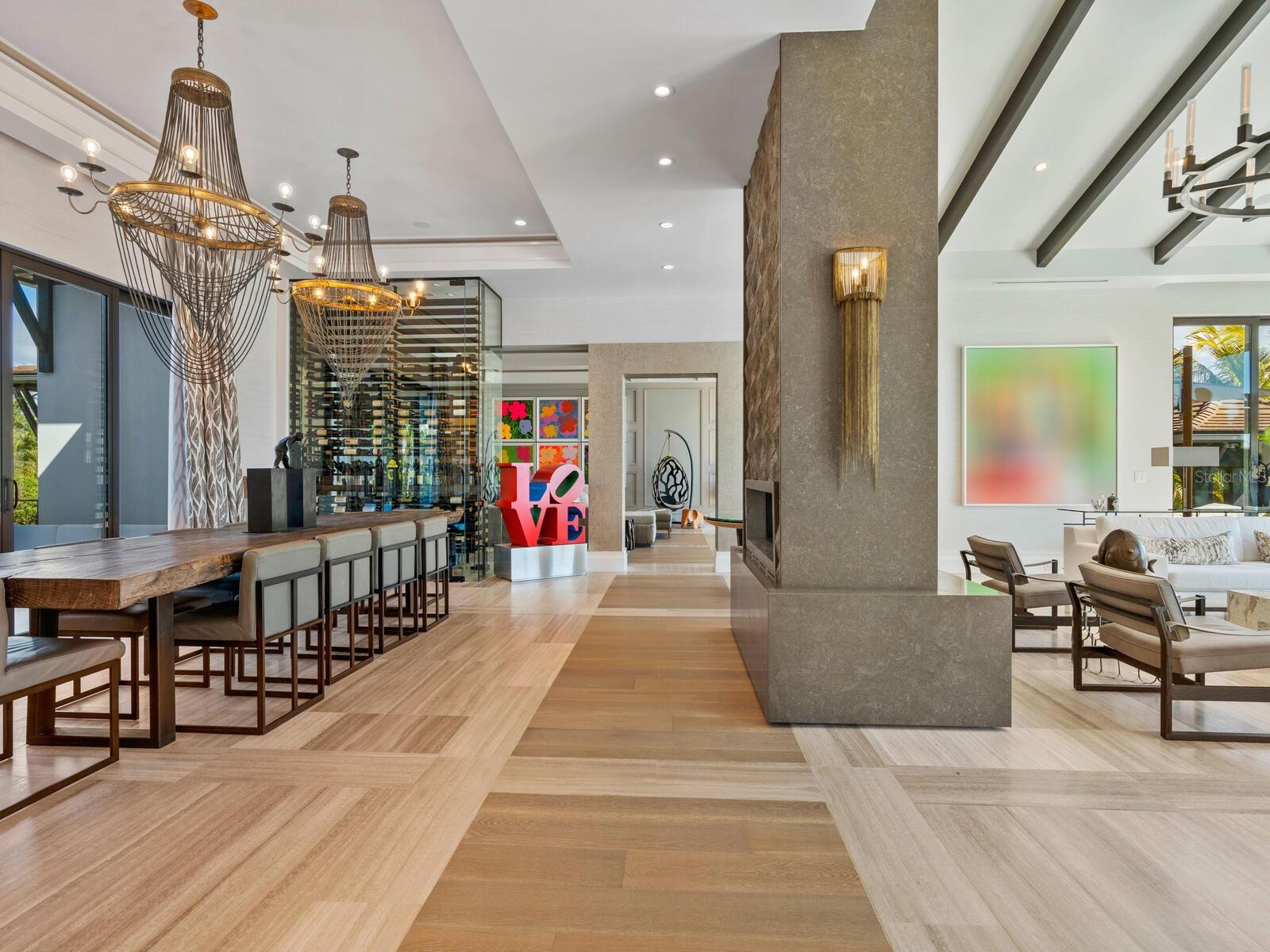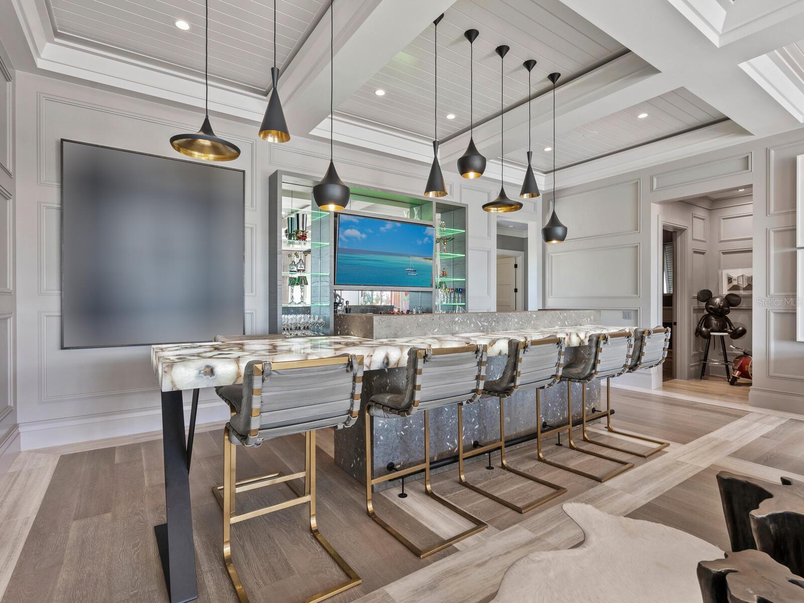 Relax and take in the positive energy of Lotus-style living in this one-of-a-kind Balinese-inspired resort compound on the north end of the world-famous Siesta Key. Nothing is needed to begin your Zen journey as the property comes completely furnished down to dishes, silverware and a Buddha living wall. The true coexistence of indoor and outdoor space blends over 8,000 square feet of indoor space with thousands of square feet of patio and pool area. An outdoor oasis offering an infinity-edge pool with a swim-up bar, a sunken fire pit lounge within the pool, a spa, an outdoor kitchen, a dining pavilion with a living plant wall and an open-air living room with fireplace. A koi pond with stunning built-in footbridges stretches nearly the entire length of the home, enhancing the serene ambiance of the outdoor space. Spanning over an acre with more than 700 feet of waterfront, the property is a masterpiece of luxury, designed for effortless relaxed living or island-style entertaining. A custom-designed driveway welcomes you to a breathtaking entrance, where waterfalls and fire features set the tone for the experience that awaits inside. Expansive walls of glass, seamless indoor-outdoor transitions, and rich wood and stone flooring throughout create a striking, cohesive aesthetic. The thoughtfully designed interior boasts multiple living spaces, including a game room, home theater, fitness room, meditation space, and an impressive 8+ car garage. For the waterfront enthusiast, a well-equipped boat dock, a separate waterfront garage, and a paddleboard/canoe launch provide unparalleled access to the pristine waters. This exceptional residence also features a newer seawall, full-house generator, Crestron home automation, a 3-stop elevator, and a whole-house reverse-osmosis water filtration system, ensuring both convenience and peace of mind. A true island paradise, this estate offers unmatched privacy while remaining just moments from Sarasota’s vibrant shopping, dining, and world-renowned cultural attractions. Don’t miss this rare opportunity to own a move-in-ready masterpiece on Siesta Key – home to the #1 beach in the USA (Tripadvisor).