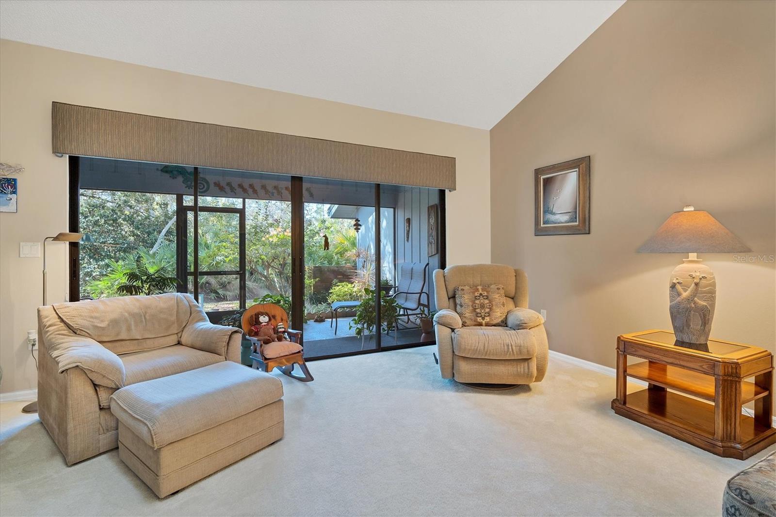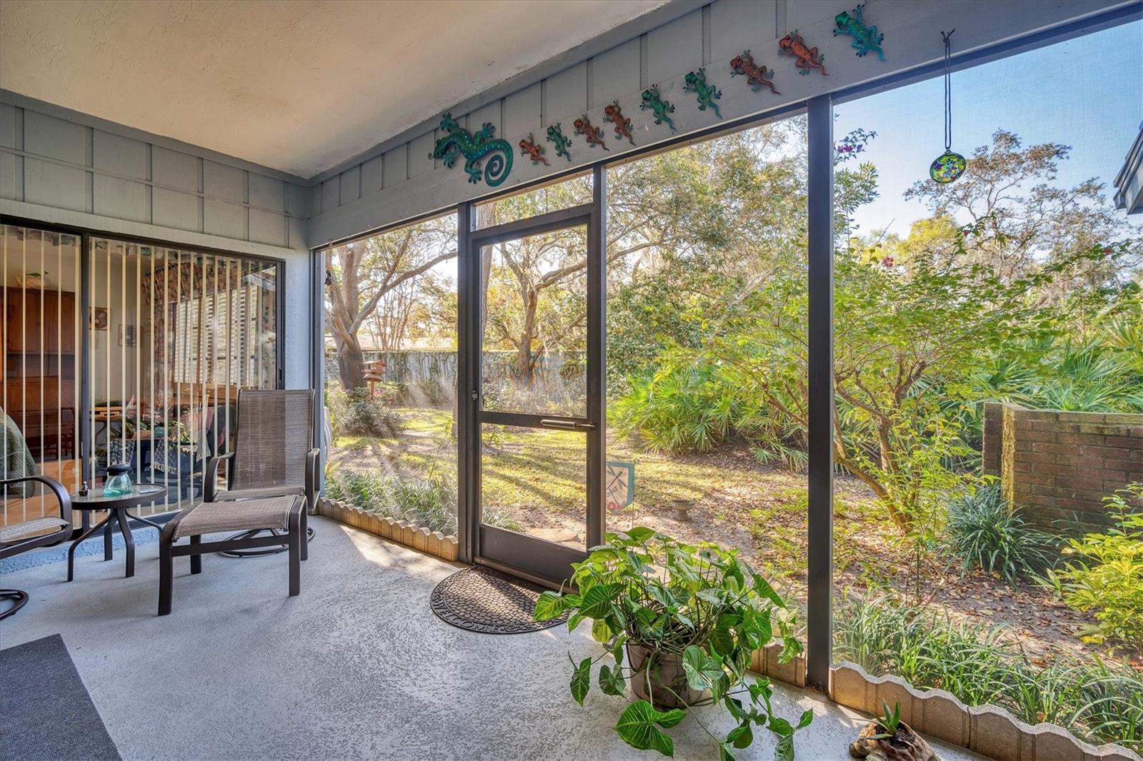 Embrace the serenity & exclusivity of Woodbridge Estates! This coveted, gated, non-age restricted community offers a rare chance to own this single-level 2/2 split plan plus a den. Soaring ceilings, skylights, & expansive windows bath the interior in natural light. It exudes a tranquil ambiance & lives like a single-family home. Boasting generous room sizes & ample storage, this residence promises comfortable living. The large primary retreat has 2 walk-in closets & a large en-suite bath. Enjoy hassle-free maintenance as the association takes care of the roof, exterior maintenance and landscaping. Plus, the community's 13 acres, adorned with mature oak trees & lush vegetation, provides a picturesque setting for just 60 homes. And yes, your furry companions are welcomed here! Here's the bonus: the community's charming Manor/clubhouse, features a large bedroom & a suite with two bedrooms plus bath is available for rent to your guests where they can enjoy full access to its amenities - kitchen, dining area, family & living rooms, heated pool and tennis/pickleball court. Perfectly situated near Siesta Key, Downtown Sarasota, hospitals, shopping, and beaches, this community offers convenience without compromising tranquility. Seize this opportunity to craft your dream living space in this sought after community! Bedroom Closet Type: Walk-in Closet (Primary Bedroom).