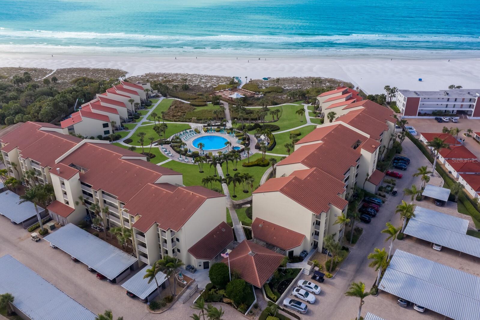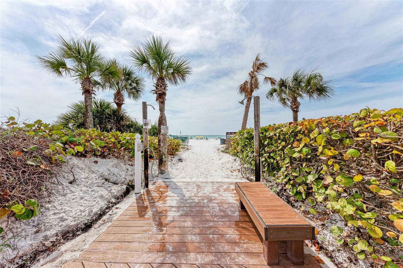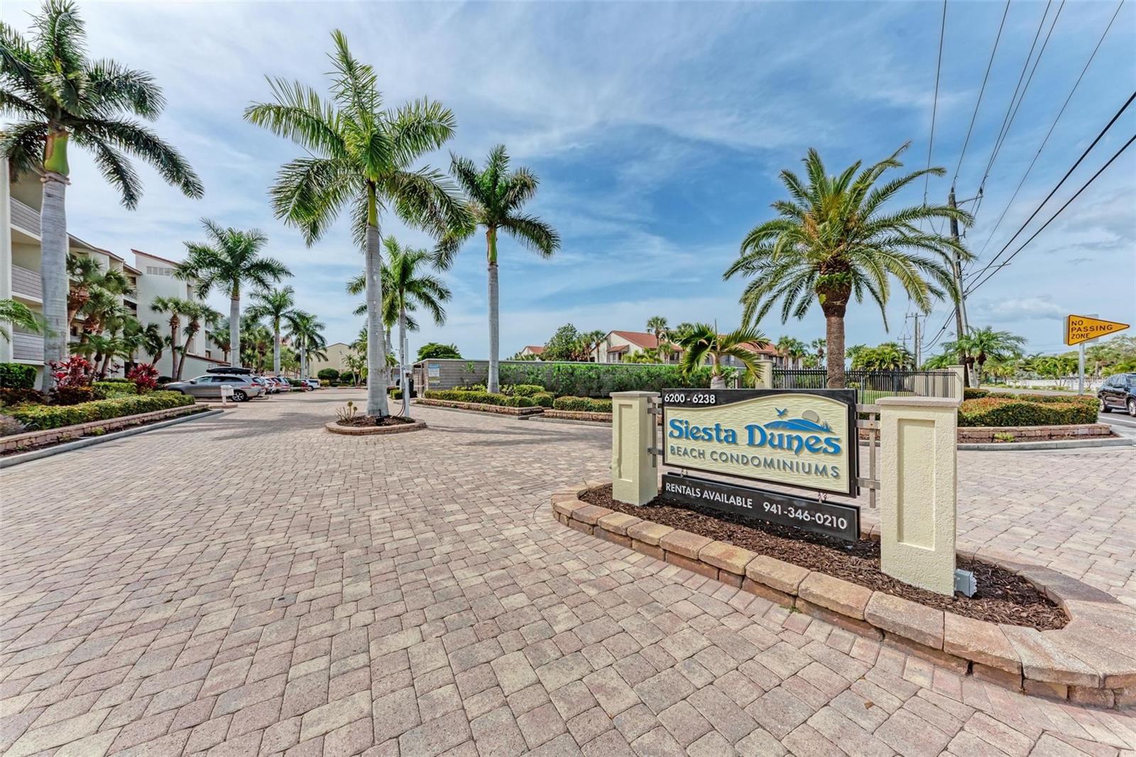 Premier Siesta Key development, Siesta Dunes first-floor end condominium with a garden view and two outdoor patio spaces. As an end residence, you have additional windows allowing for more light and space in the kitchen and living areas. The first floor enjoys a screen-enclosed garden view patio, a luxury enjoyed by those who like to leave their sandy shoes and toys outside when coming in from the beach. It’s a fantastic extension of living space that allows your condominium to live more like a single-family home with a five-minute walk to the beach. There is an additional open-air patio off of the primary suite. This nicely updated, spacious, and light-filled condo offers generous bedrooms and closet space. It's offered turnkey furnished with new quality furnishings selected for comfort and durability in the living area. The kitchen is enhanced by a large window unique to this floor plan and a new washer/dryer. Weekly minimum rentals allow for the most advantageous terms for those balancing dues with income. The owner's covered parking space and storage are steps from your front door. Find out what makes Siesta Dunes so special.