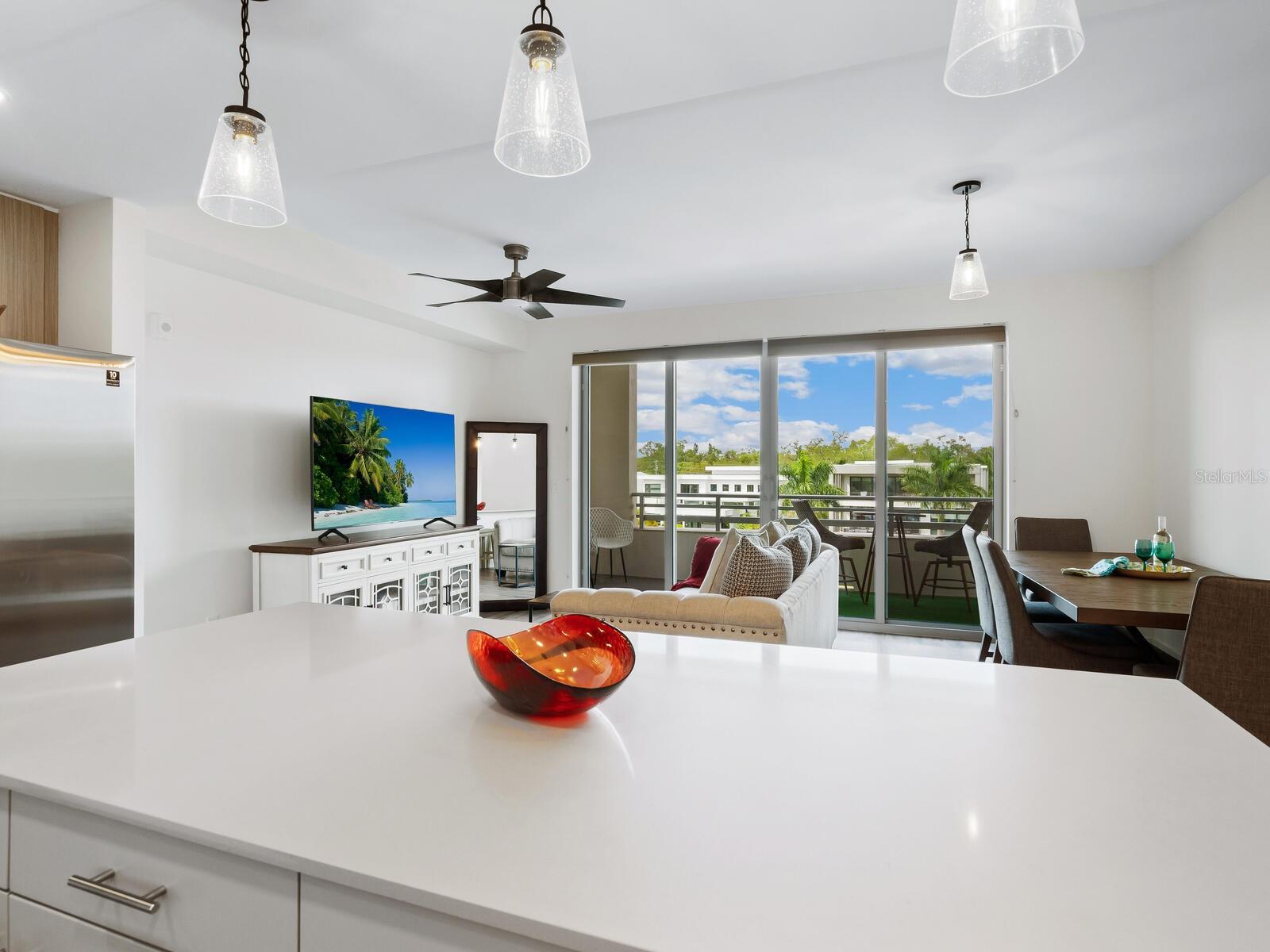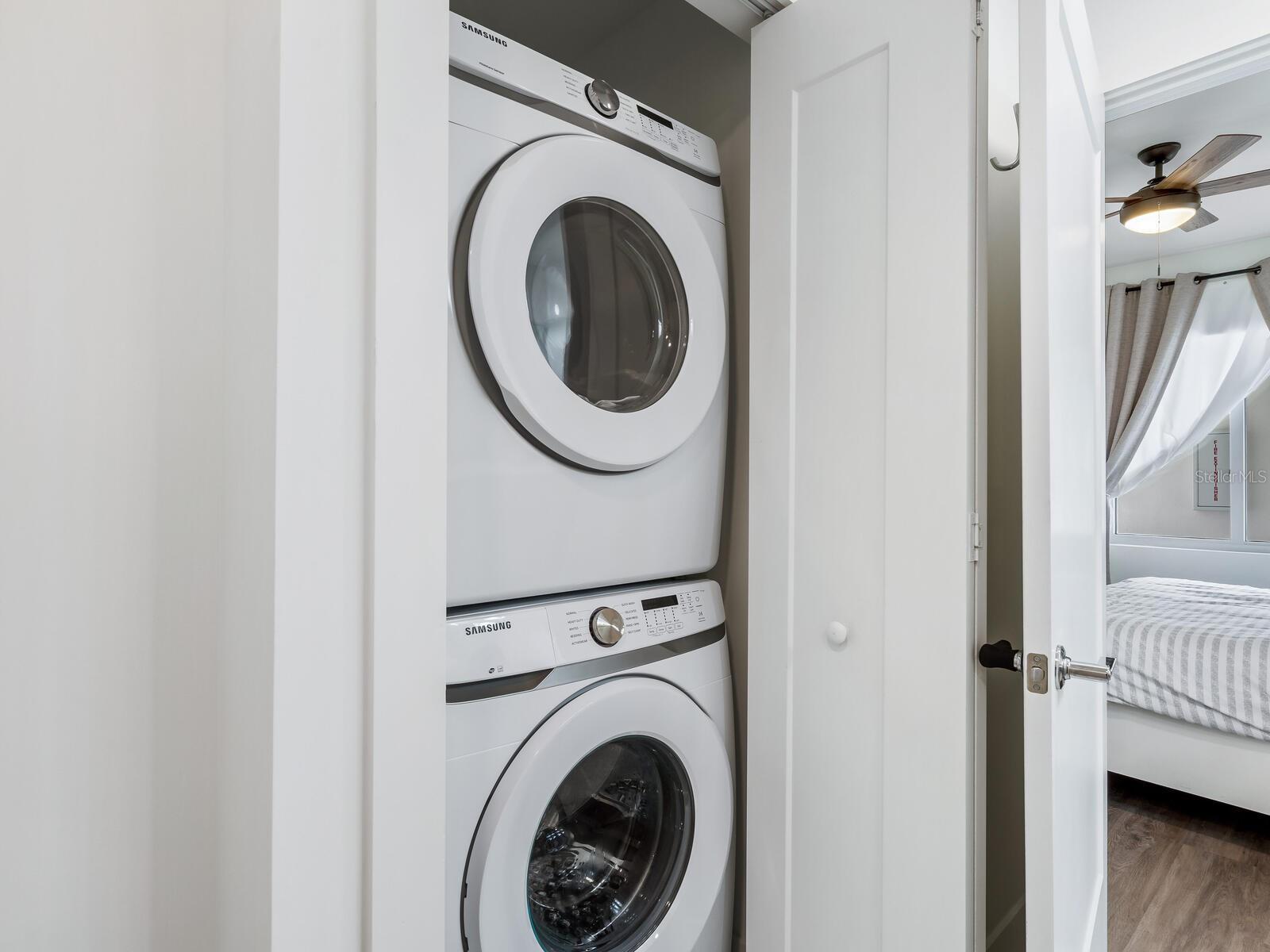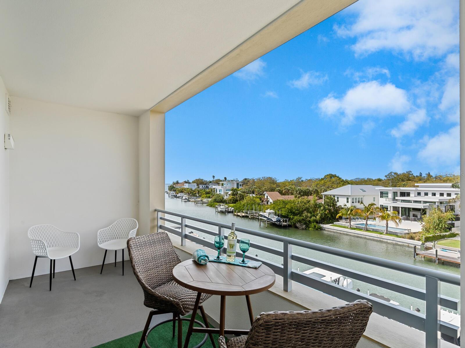 Newer construction, completed in 2022, The Strand is a gated community and comprised of 2 buildings with a total of 152 units and 47 boat slips with resort style amenities. Modern cabinetry and design, there is a large kitchen island, quartz counter tops in kitchen and baths, ceiling fans, neutral kitchen backsplash, in unit washer and dryer and many more upgrades you must see! There is direct access to Sarasota Bay and the Gulf of Mexico. Boat slips are occasionally available to purchase or rent from other owners' time to time. World class amenities include heated pool, spa, a well-equipped fitness center with a view of the pool, boardwalk, a dog park surrounded by bougainvillea (2 large dogs permitted), kayak launch, fire pit, community gas grills, electric car charging stations, private storage unit, a generous rental policy (minimum 1 week rentals permitted) for the investor minded, full time management, 1 deeded garage parking space, and deeded storage cage, extra and plentiful exterior guest parking. Close proximity to Sarasota's bay front, Bay Park, arts, and downtown's rich culture, chic shops and cuisine rich restaurants, St. Armand's Circle, and Sarasota's white sandy beaches! Attractive and modern furniture available (separate bill of sale).