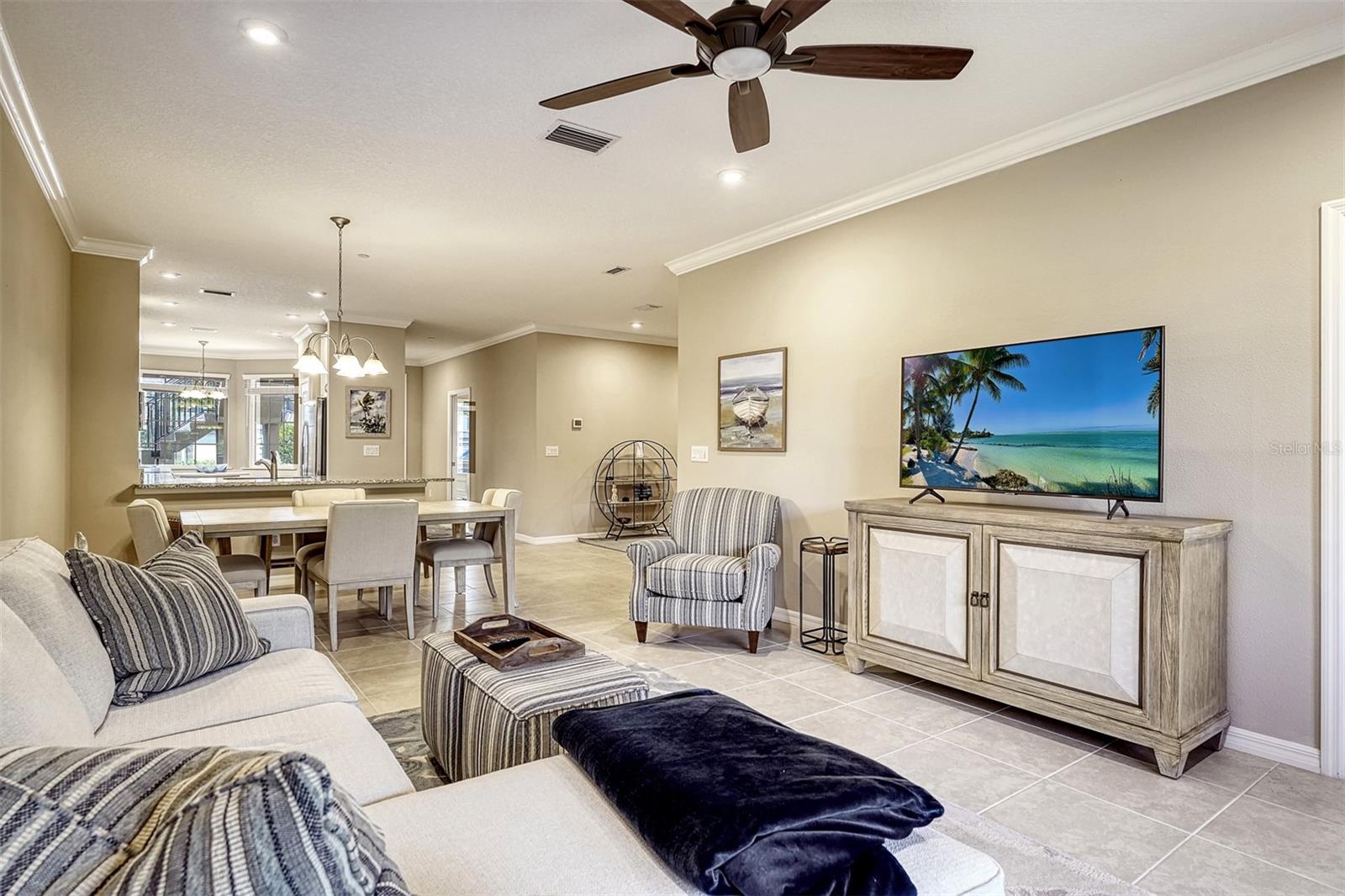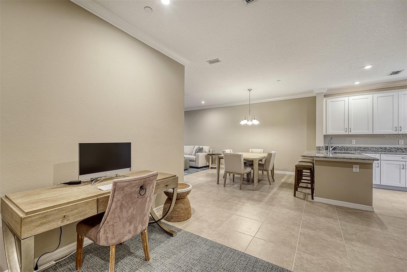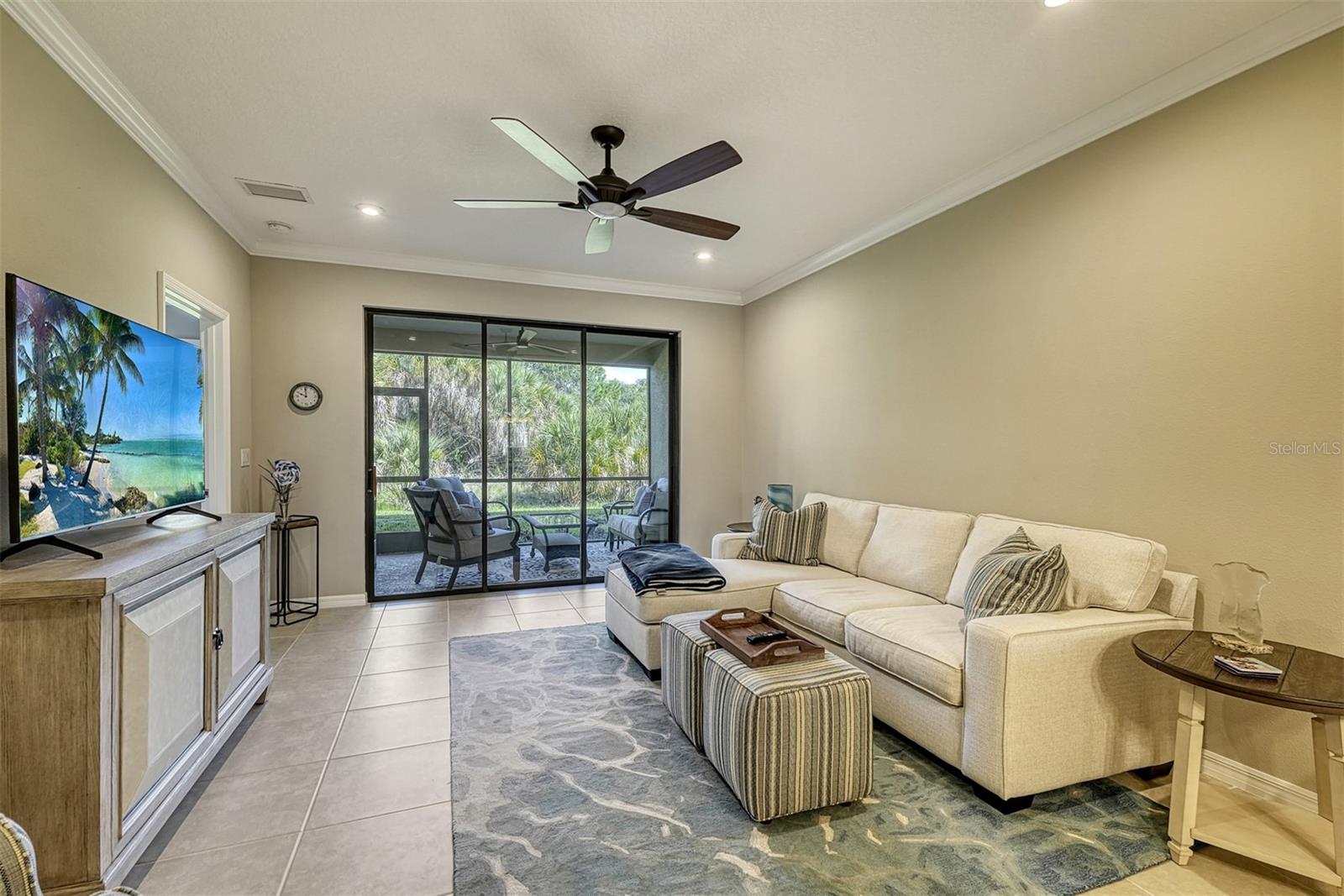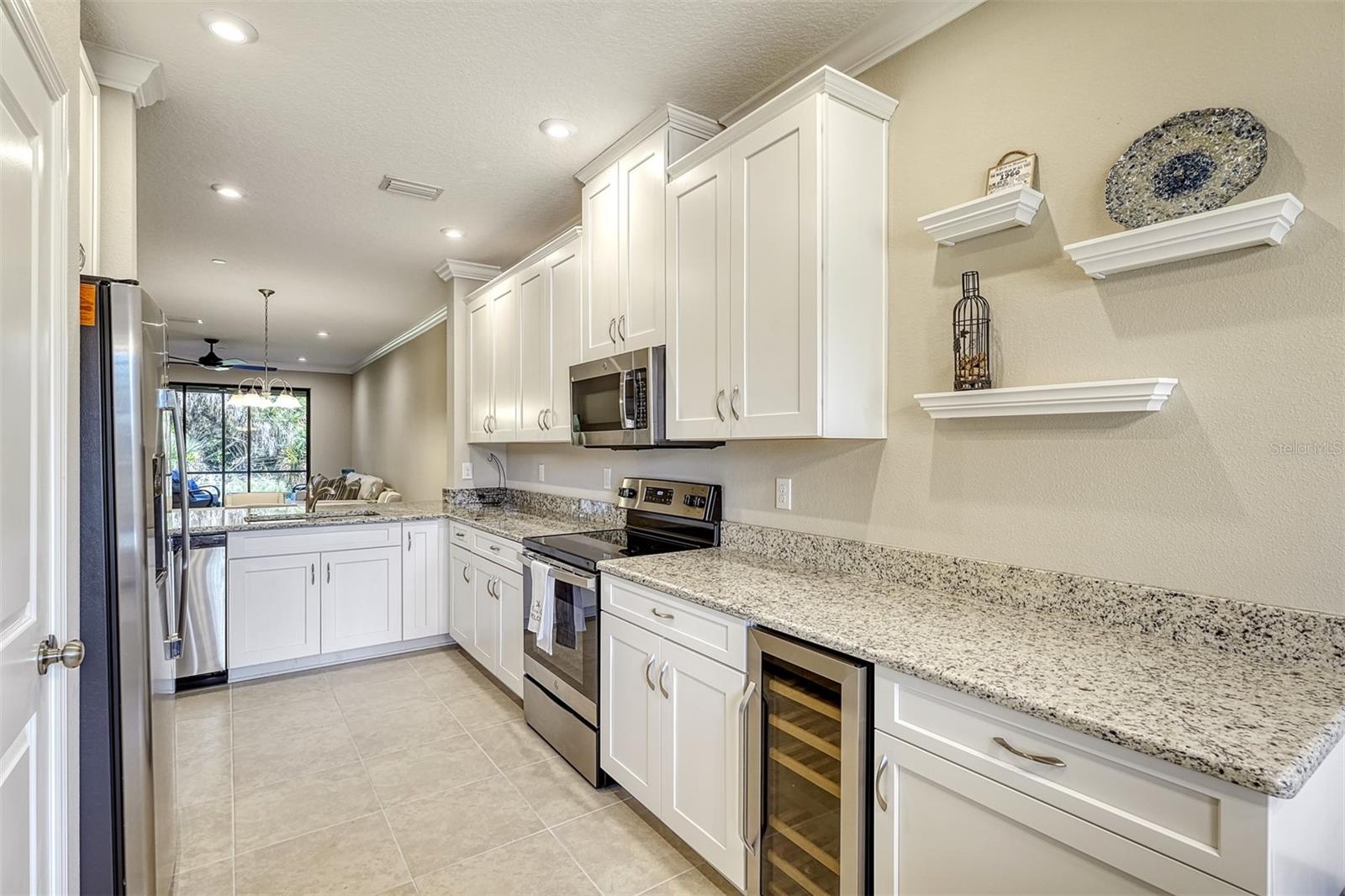 Live the resort lifestyle in the coveted Esplanade on Palmer Ranch. This ground floor 2/2 plus den unit in the Garden Homes is the perfect winter getaway. This tastefully designed condo is comfortable and inviting. Neutral tile floors flow throughout the main living areas, kitchen and den. Bright kitchen with granite counter tops and stainless appliances. Upgrades include a custom designed built-in banquette with storage, extended kitchen counter with wine fridge, extra cabinet, and additional cabinet above the refrigerator. There is a detached one car garage and assigned parking spot. Hurricane panels included for all windows and sliders. The resort-style amenity center is the hub of the community. Extensive activities calendar, Two pools, splash area and playground, fitness center, pickle ball and tennis courts, spa services, The Bahama Bar restaurant and much more. Minutes to the Legacy Trail and a short 8 mile drive to Nokomis Beach and 10 miles to Venice.