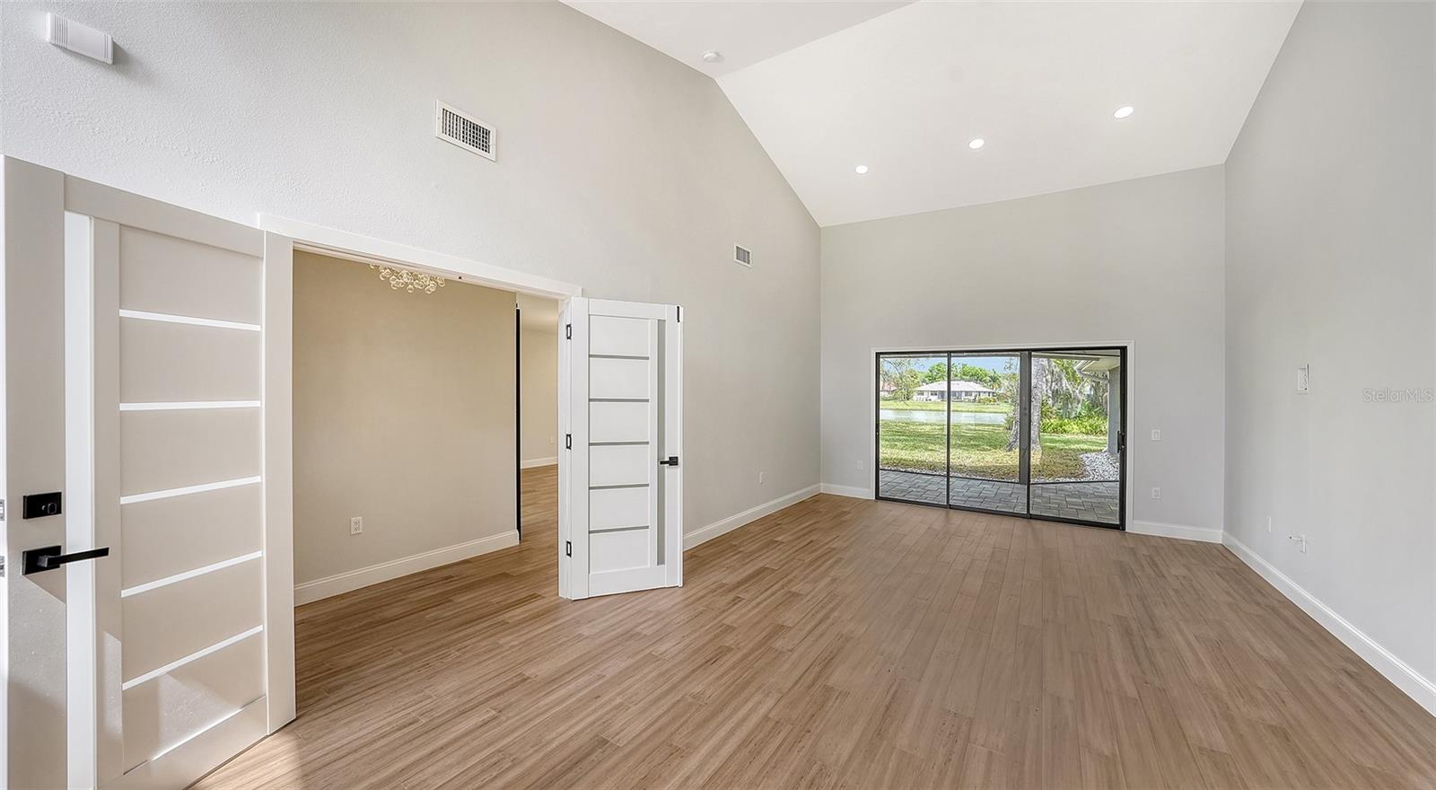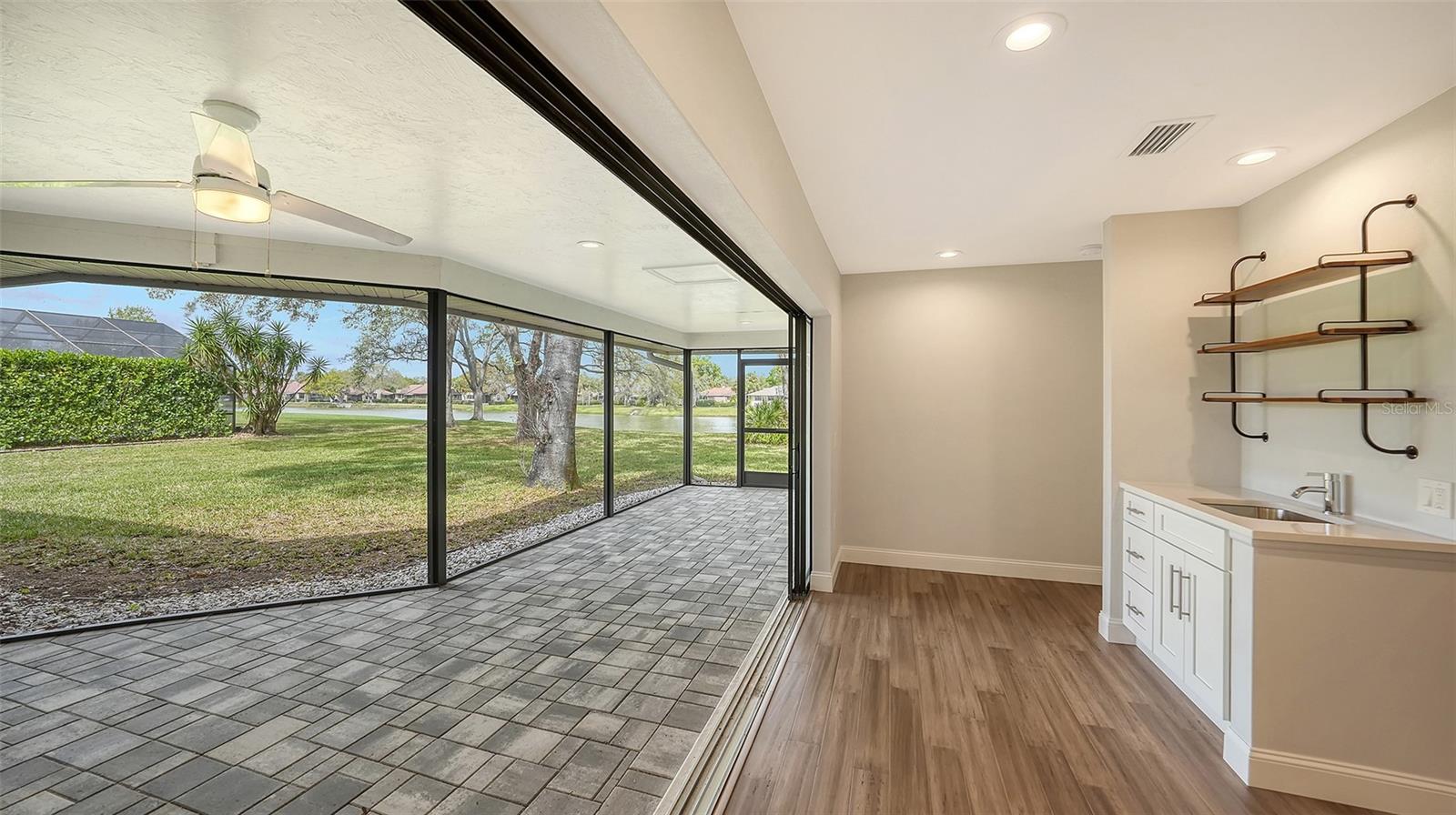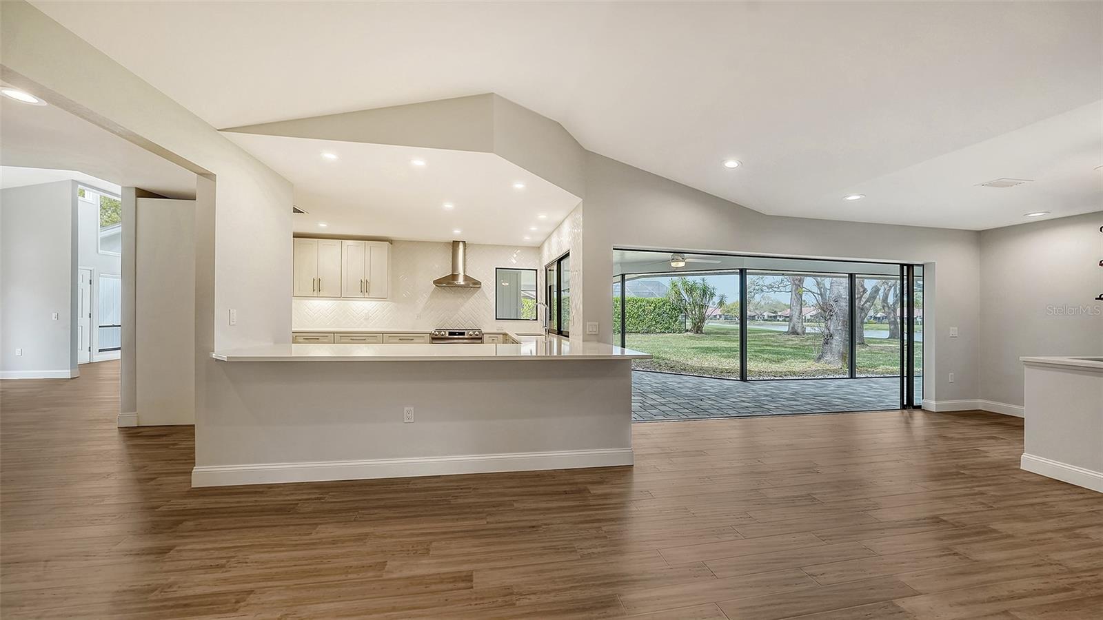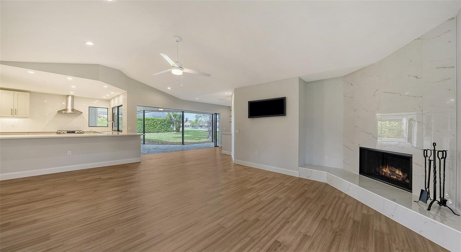 Completely renovated move-in-ready home on one of the largest (30,417 sq. ft.) lots in The Lakes Estates. A beautifully redesigned floor plan with 3 bedrooms plus study, open kitchen to a family room with fireplace plus a combination living and dining area all open to a screened paver brick patio with tranquil views of the lake. Highlights include a newer roof, bamboo floors, white kitchen with quartz countertops and soft close cabinets across from the wet bar perfect for entertaining! The bedrooms are a split plan with a main bedroom that includes white cabinetry, walk-in fitted closet, oversized stone shower and a bright light study with a barn door set for privacy. Separate laundry room conveniently located as you come in from the oversized 2-car garage. High ceilings create a light and airy feeling the minute you enter through the double door entry. Plenty of room for a pool. The Lakes is one of Sarasota’s premier established neighborhoods offering two pools, spa, tennis courts, playground and fitness center for only $1,800 annually. Outstanding location with quick access to I-75, downtown Sarasota, UTC and world-class beaches. Ready for immediate occupancy.