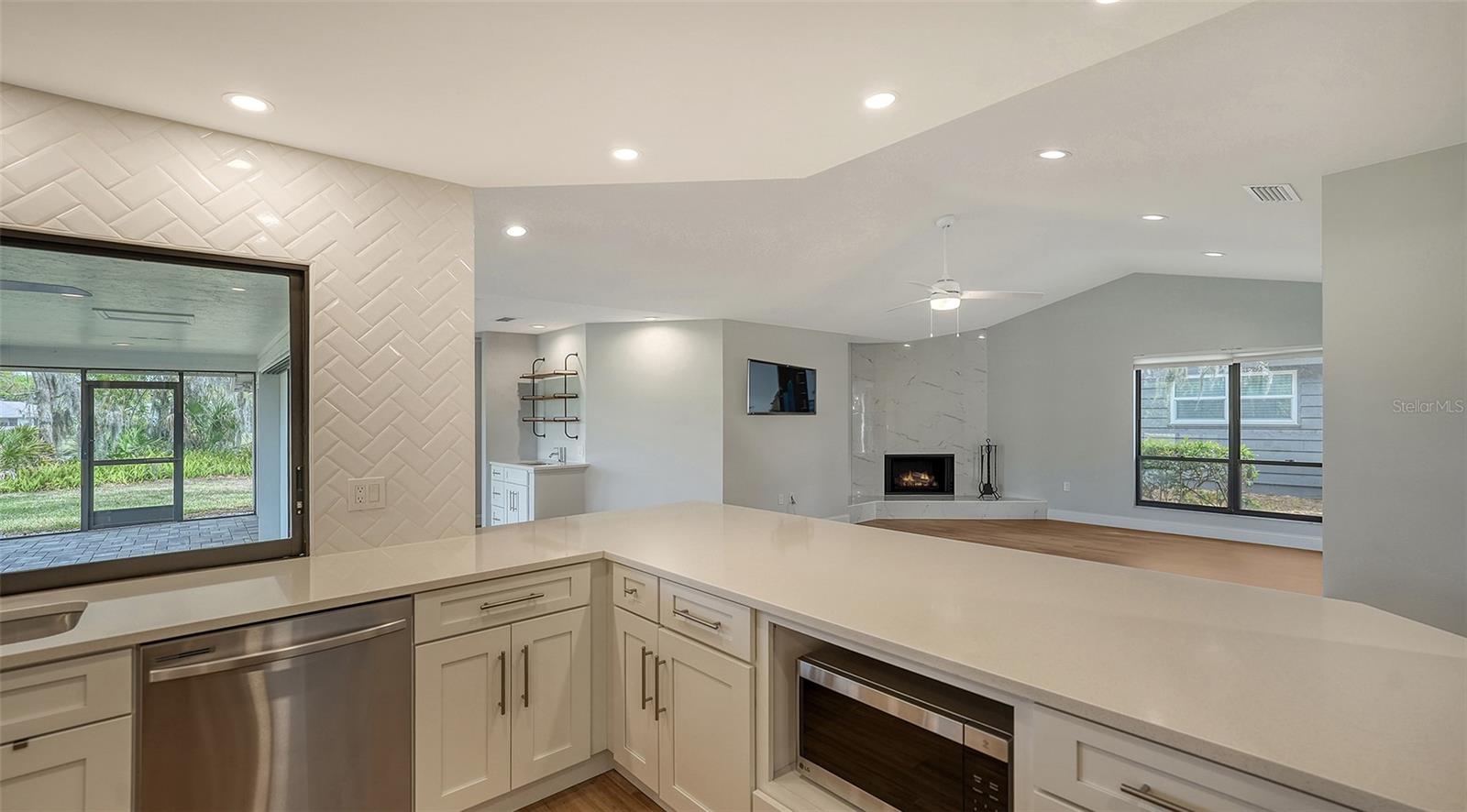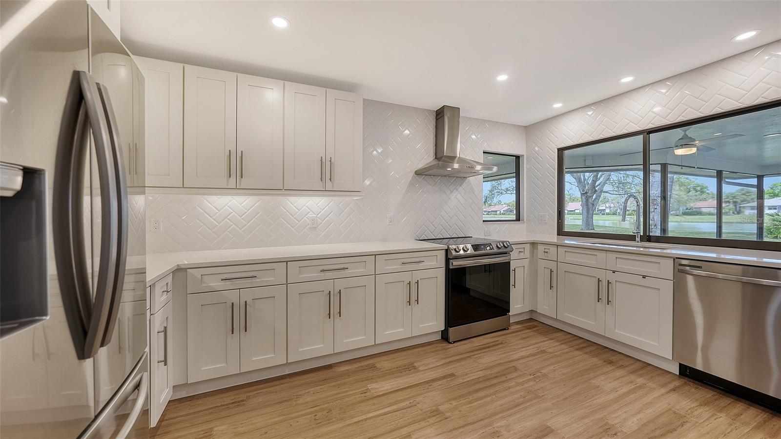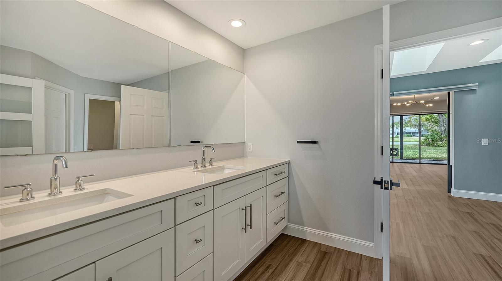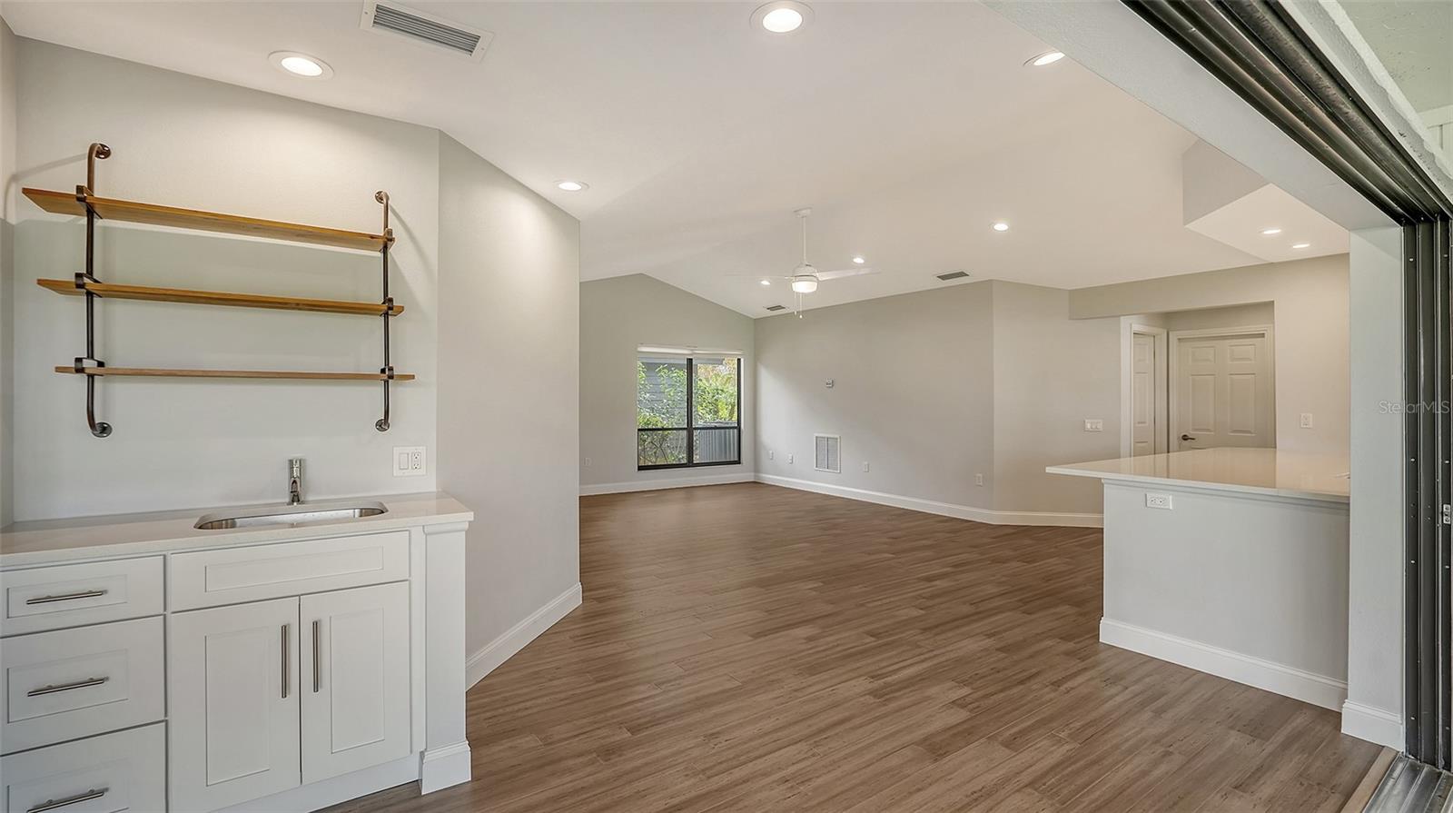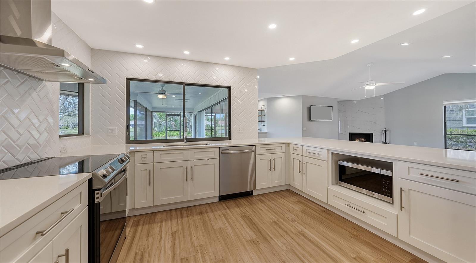 Completely renovated move-in-ready home on one of the largest (30,417 sq. ft.) lots in The Lakes Estates. A beautifully redesigned floor plan with 3 bedrooms plus study, open kitchen to a family room with fireplace plus a combination living and dining area all open to a screened paver brick patio with tranquil views of the lake. Highlights include a newer roof, bamboo floors, white kitchen with quartz countertops and soft close cabinets across from the wet bar perfect for entertaining! The bedrooms are a split plan with a main bedroom that includes white cabinetry, walk-in fitted closet, oversized stone shower and a bright light study with a barn door set for privacy. Separate laundry room conveniently located as you come in from the oversized 2-car garage. High ceilings create a light and airy feeling the minute you enter through the double door entry. Plenty of room for a pool. The Lakes is one of Sarasota’s premier established neighborhoods offering two pools, spa, tennis courts, playground and fitness center for only $1,800 annually. Outstanding location with quick access to I-75, downtown Sarasota, UTC and world-class beaches. Ready for immediate occupancy.